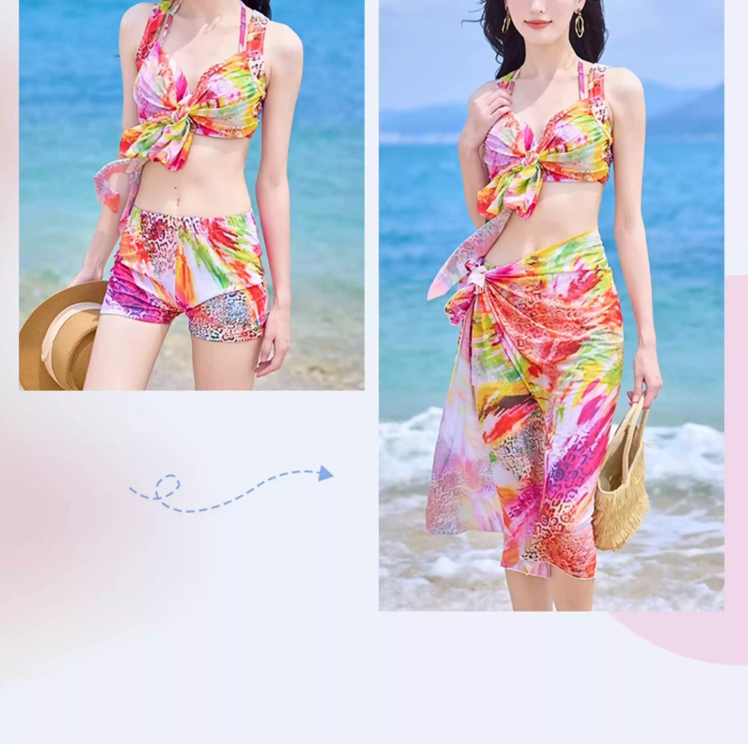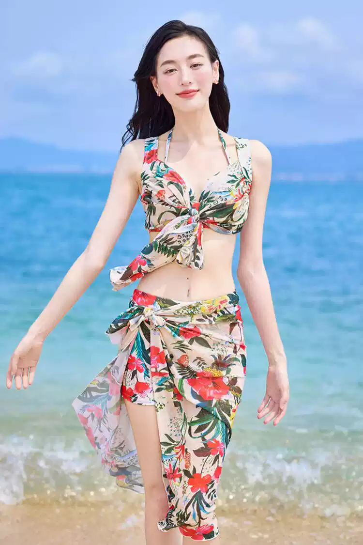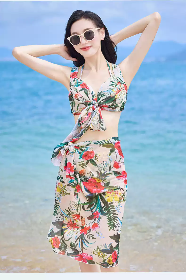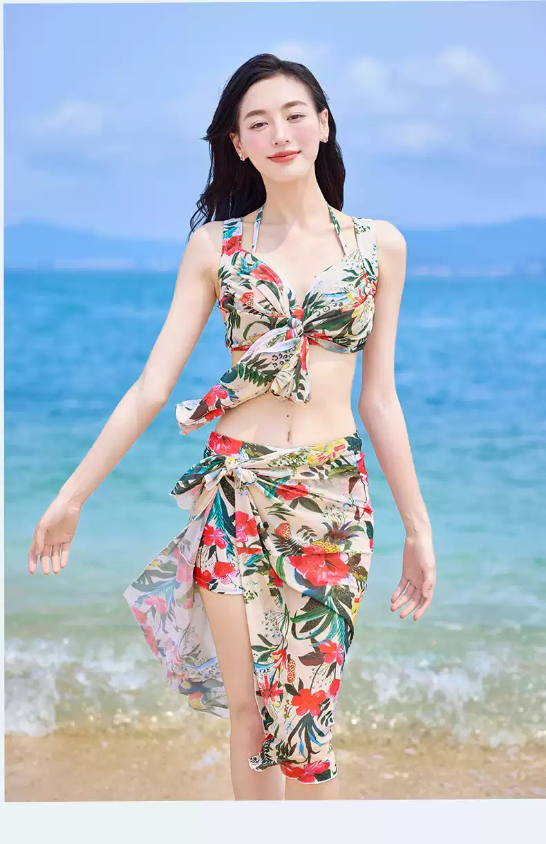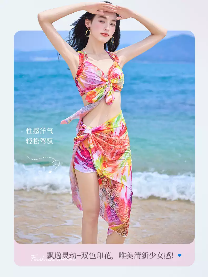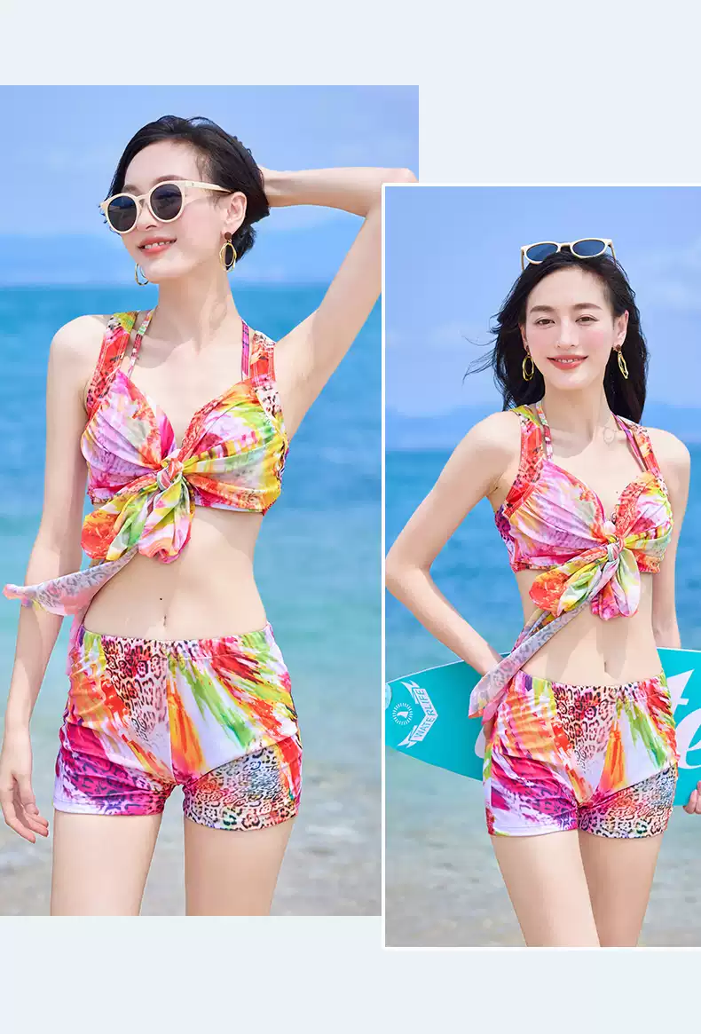 Bikini swimsuit for women 2025 new three-piece set, sexy hot spring, hot steel ring, small breasts, gathered seaside vacation style, pink-8944 two-piece three-piece set L recommended 105-120 Jin Jin equals 0.5 kg