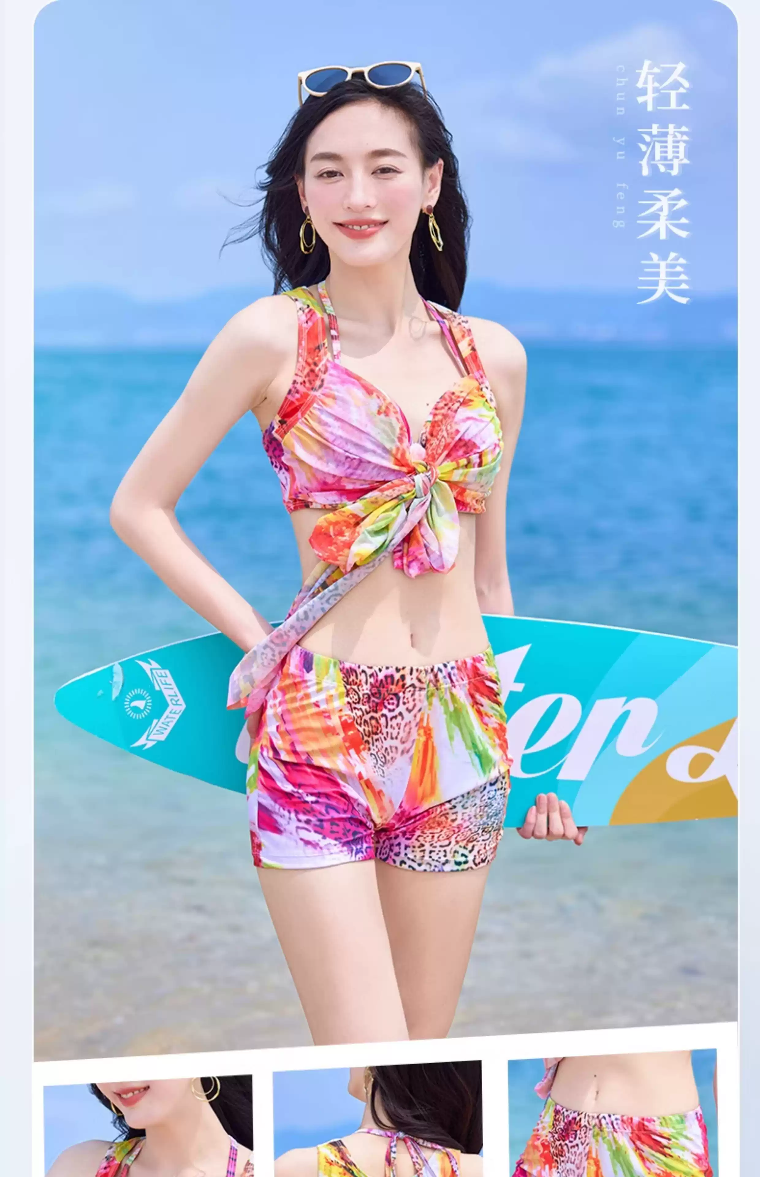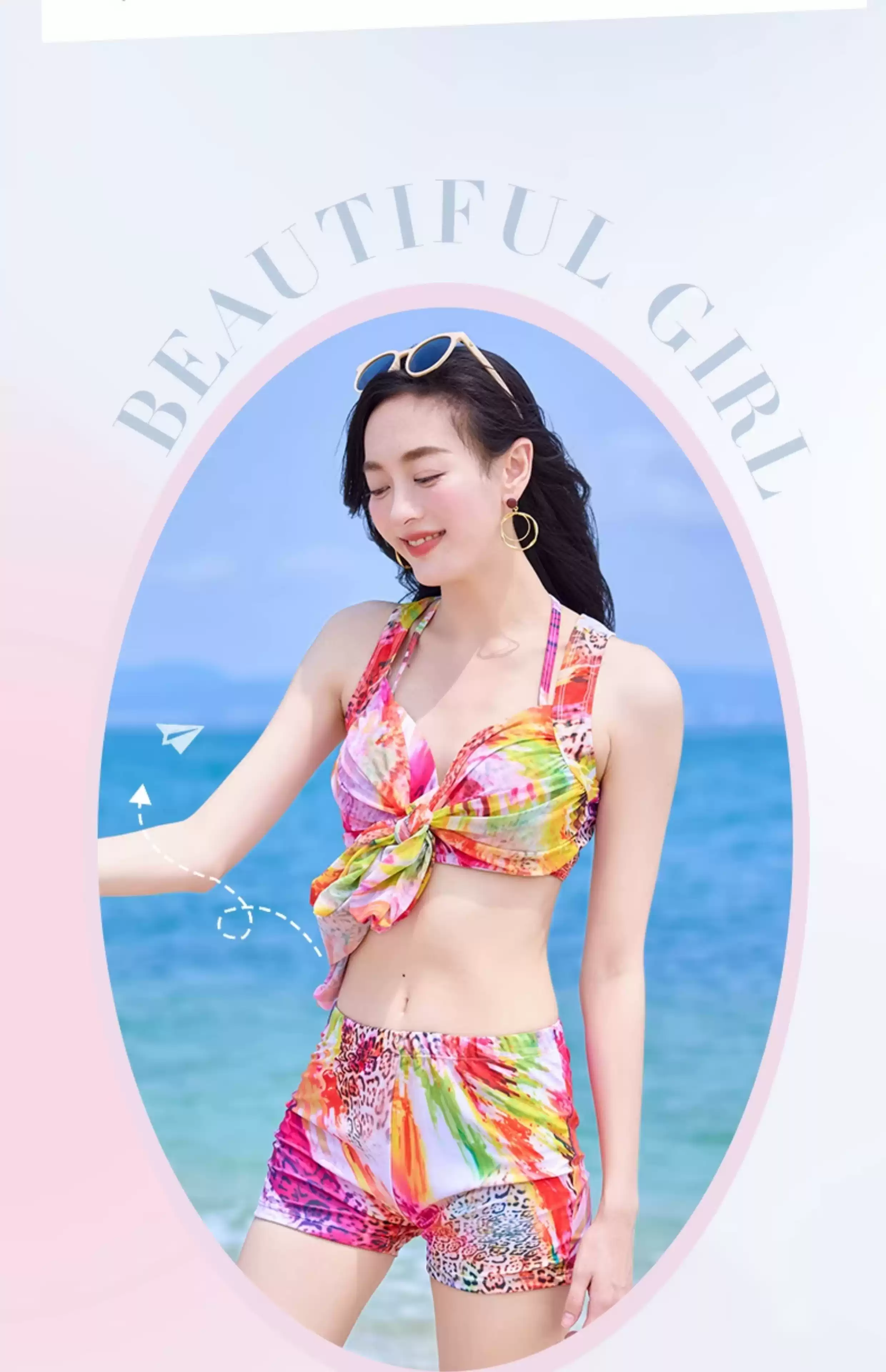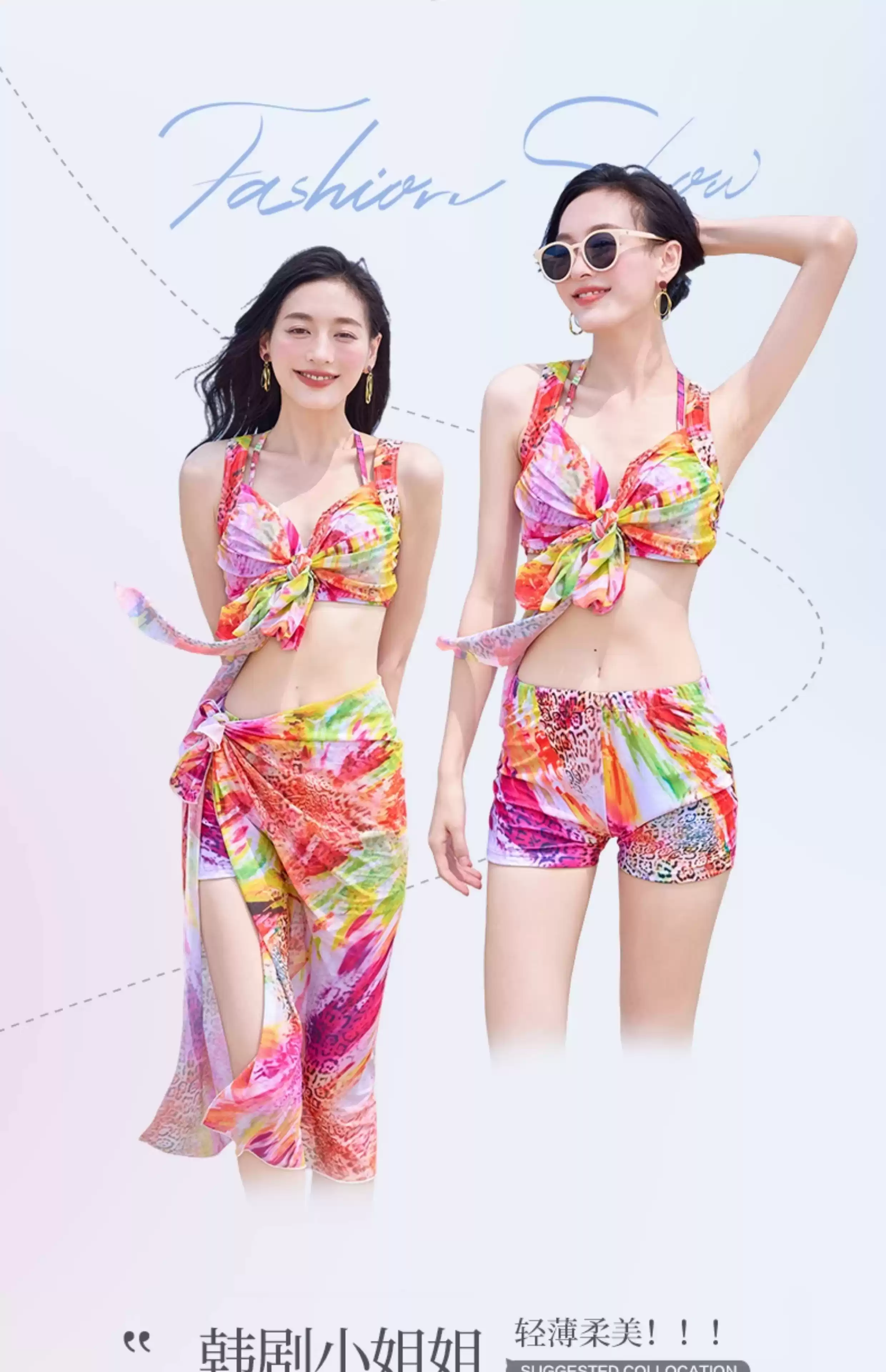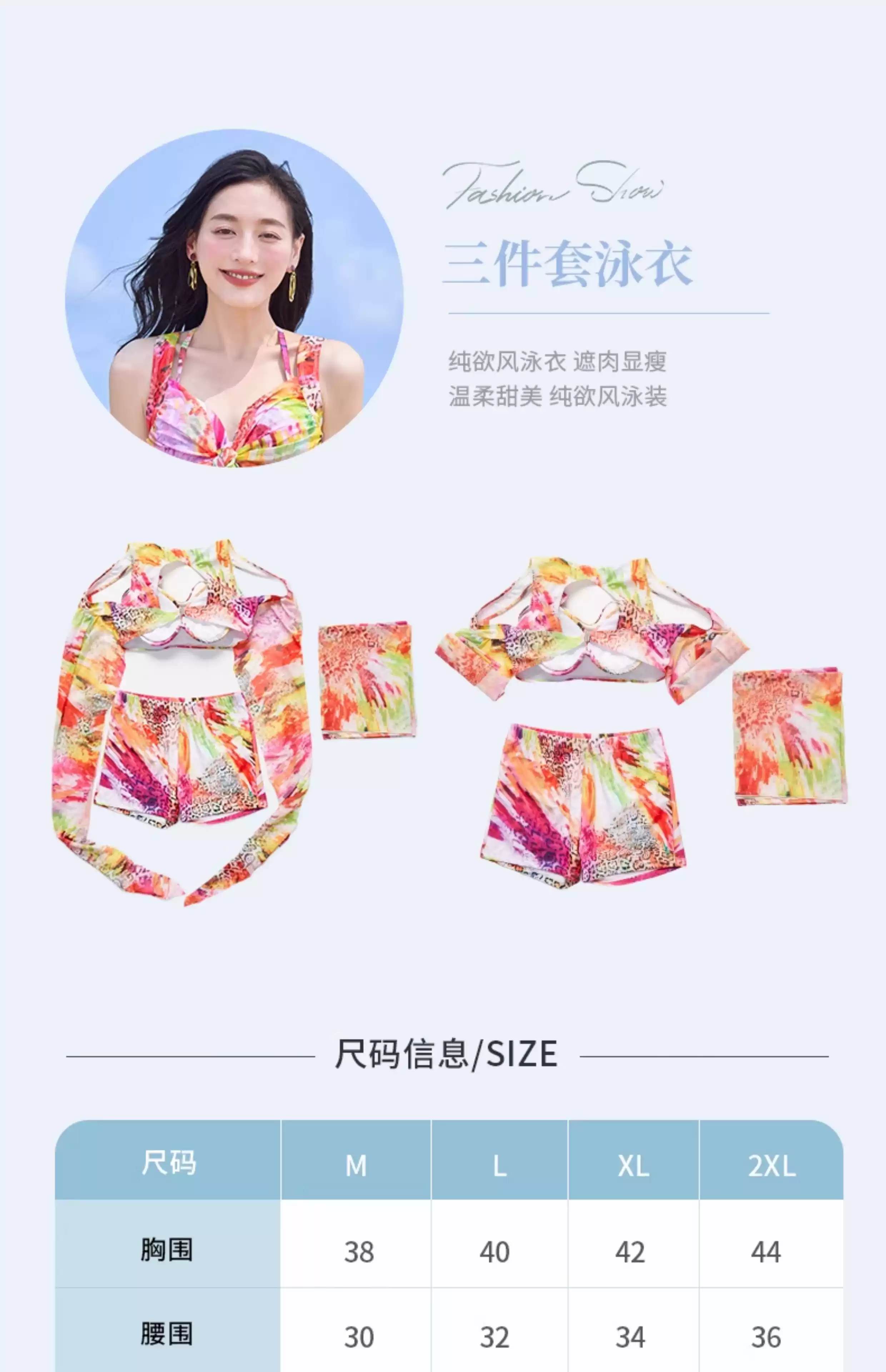 Bikini swimsuit for women 2025 new three-piece set, sexy hot spring, hot steel ring, small breasts, gathered seaside vacation style, pink-8944 two-piece three-piece set L recommended 105-120 Jin Jin equals 0.5 kg