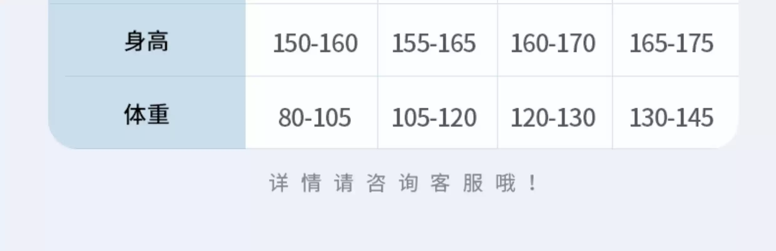China (cm) 160-165/84-86 165-170 / 88-90 167-172 / 92-96 168-173 / 98-102 170-176 / 106-110