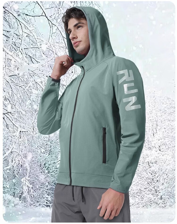 Bimax winter running windproof jacket men's velvet warm sports windbreaker autumn and winter cycling clothing quick-drying training top jacket green - velvet warm windproof M (100-120Jin Jin equals 0.5 kg)