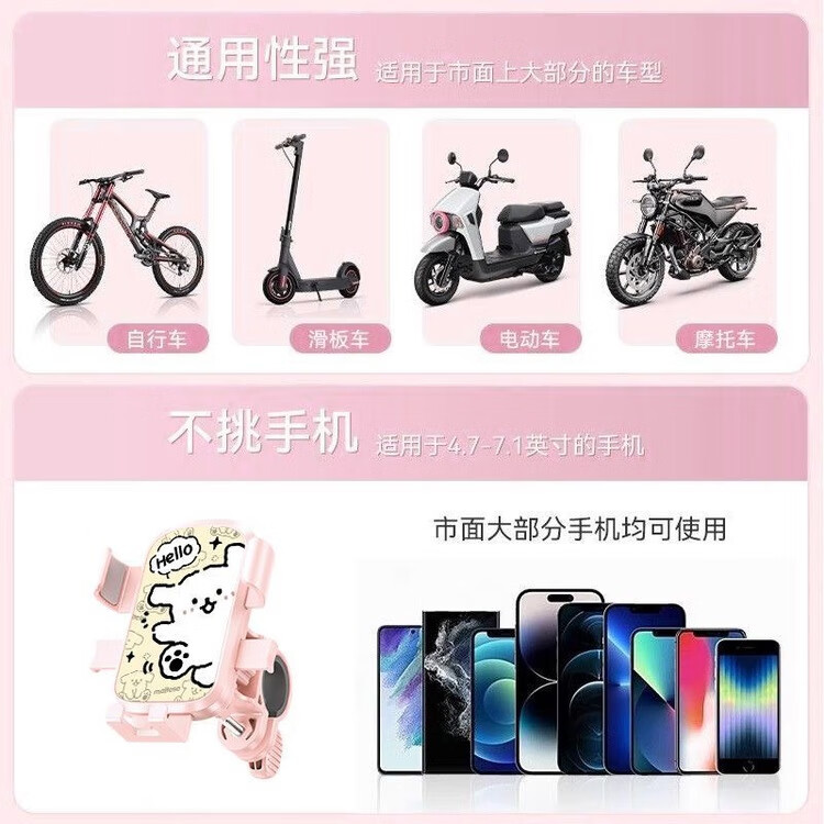 Guangyin Line Puppy Electric Car Mobile Phone Holder Anti-shock and Anti-shake Battery Car Motorcycle Bicycle Takeout Navigation Cake Puppy Pink Handlebar Model with Hook