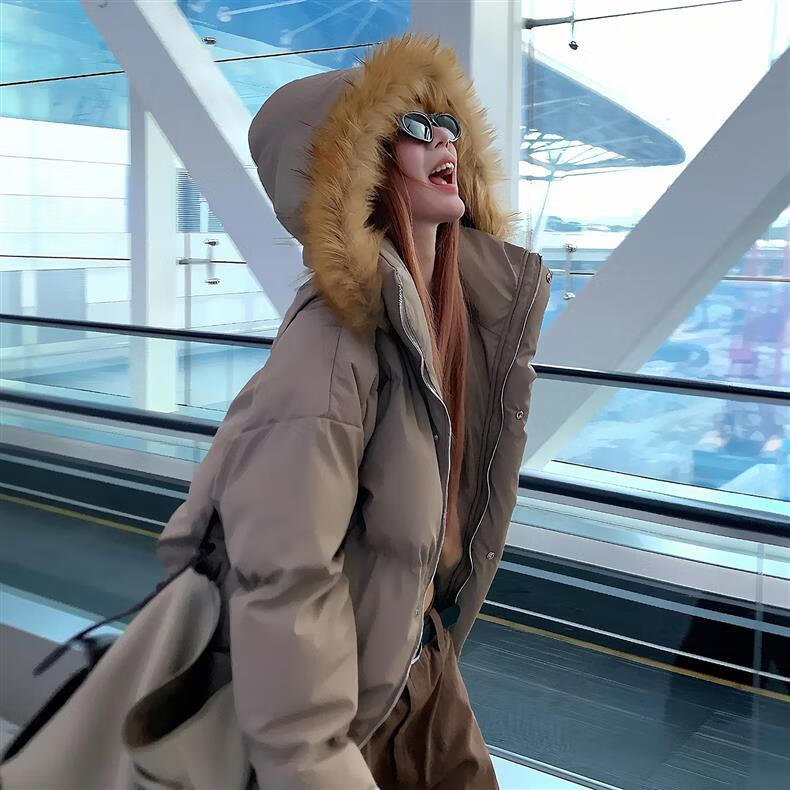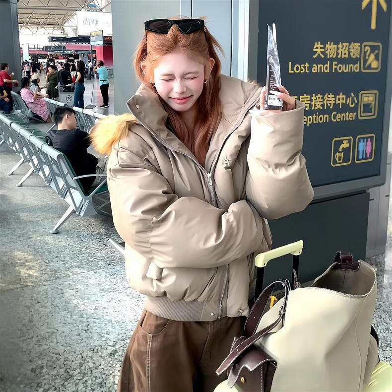 Lifting Removable Hat Fur Collar PU Leather Down Jacket Men's Autumn and Winter Thickened Short Bread Jacket American Style Hooded Jacket Brown S (Recommended 85-100 Jin Jin equals 0.5 kg)