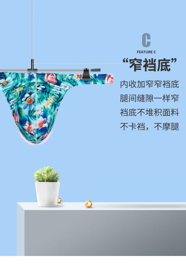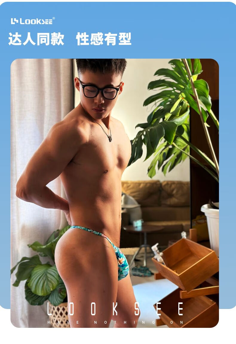 Single thong, ice silk, ultra-low-waisted, small-edge thong, men's printed underwear, U-shaped sexy T-pants, trendy narrow-edge singlet N2103-037 M