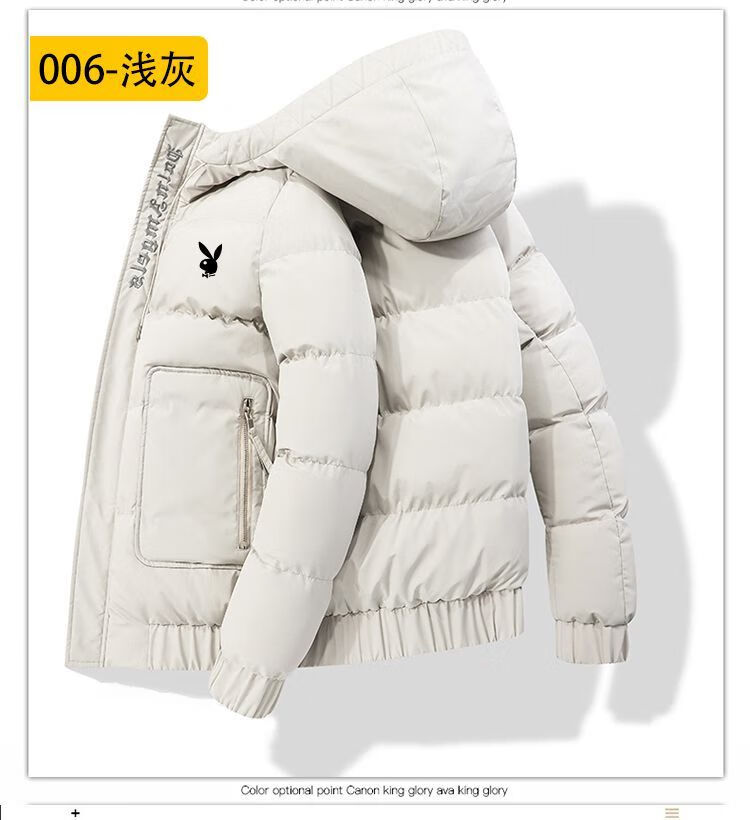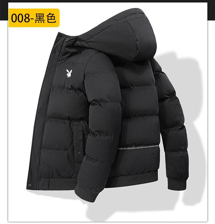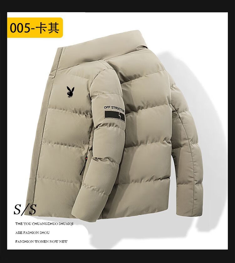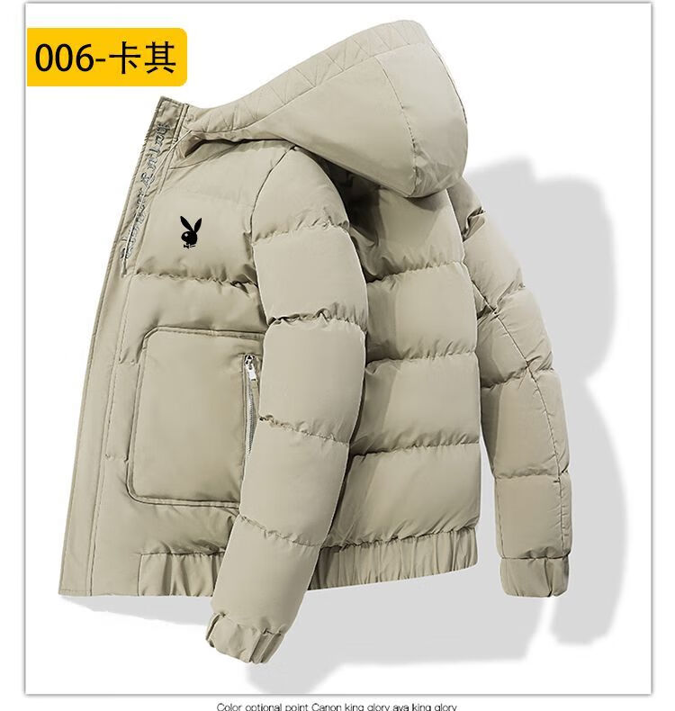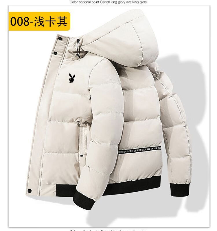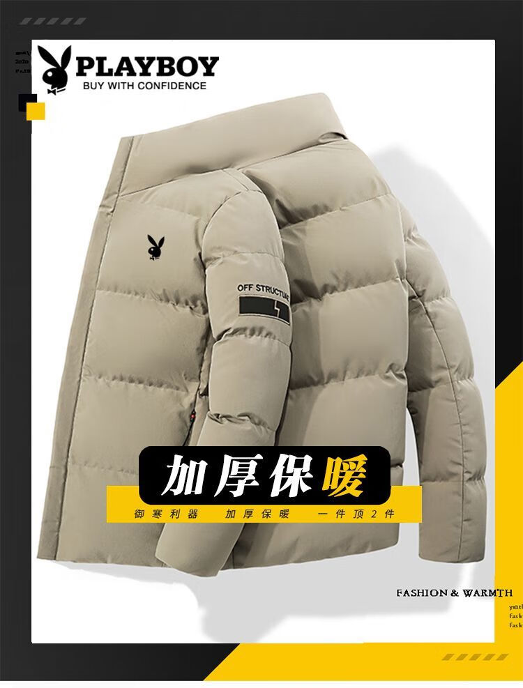 Playboy cotton coat for men winter 2025 new style coat cotton coat thickened to keep warm and cold-proof casual loose youth men's cotton padded jacket 005-khaki (scarf included) L 100-115Jin Jin equals 0.5 kg