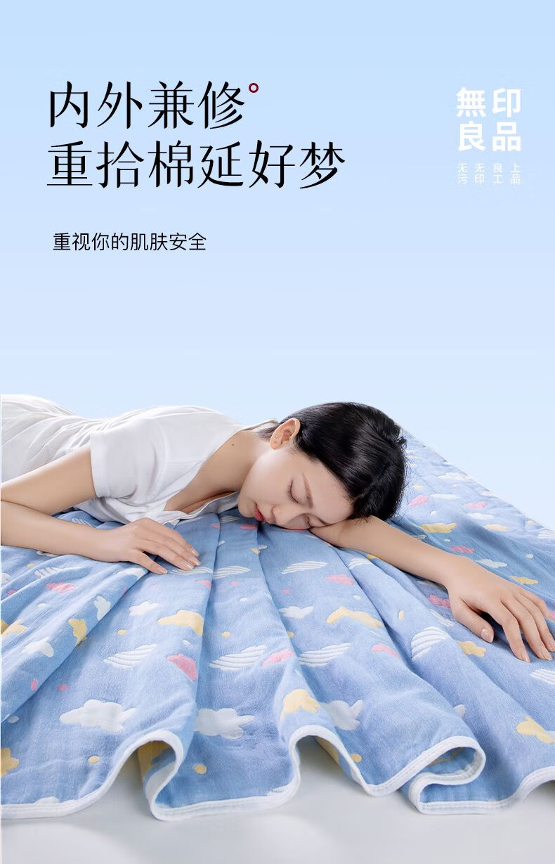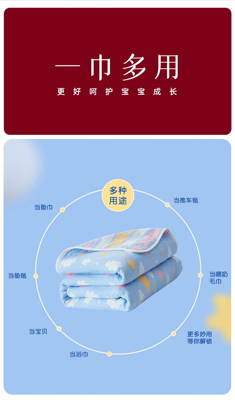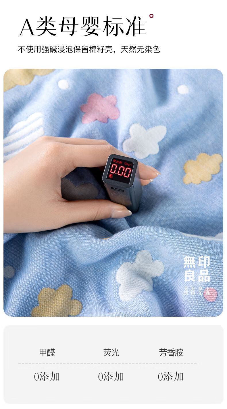 Six-layer gauze towel quilt summer thin summer cool blanket pure cotton children's baby nap blanket Caiyun Blue A baby grade baby safe use 150*200cm single blanket pure cotton fabric