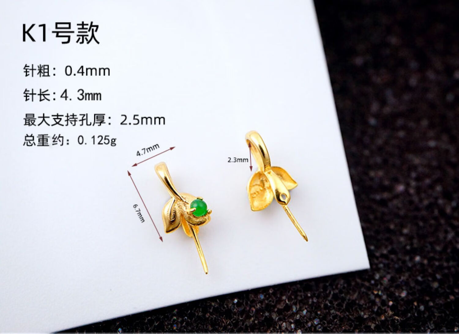 Engraved pure 18k gold buckle jade top bead pendant clip buckle does not fade bean leaves universal au750 bag installation K4-K yellow (regular)