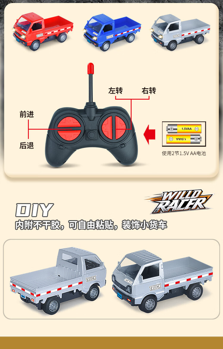 Wuling closed three-wheel motorcycle Hongguang remote control car creative simulation children's toy pickup truck model 5 with 1 set of rechargeable battery + charger