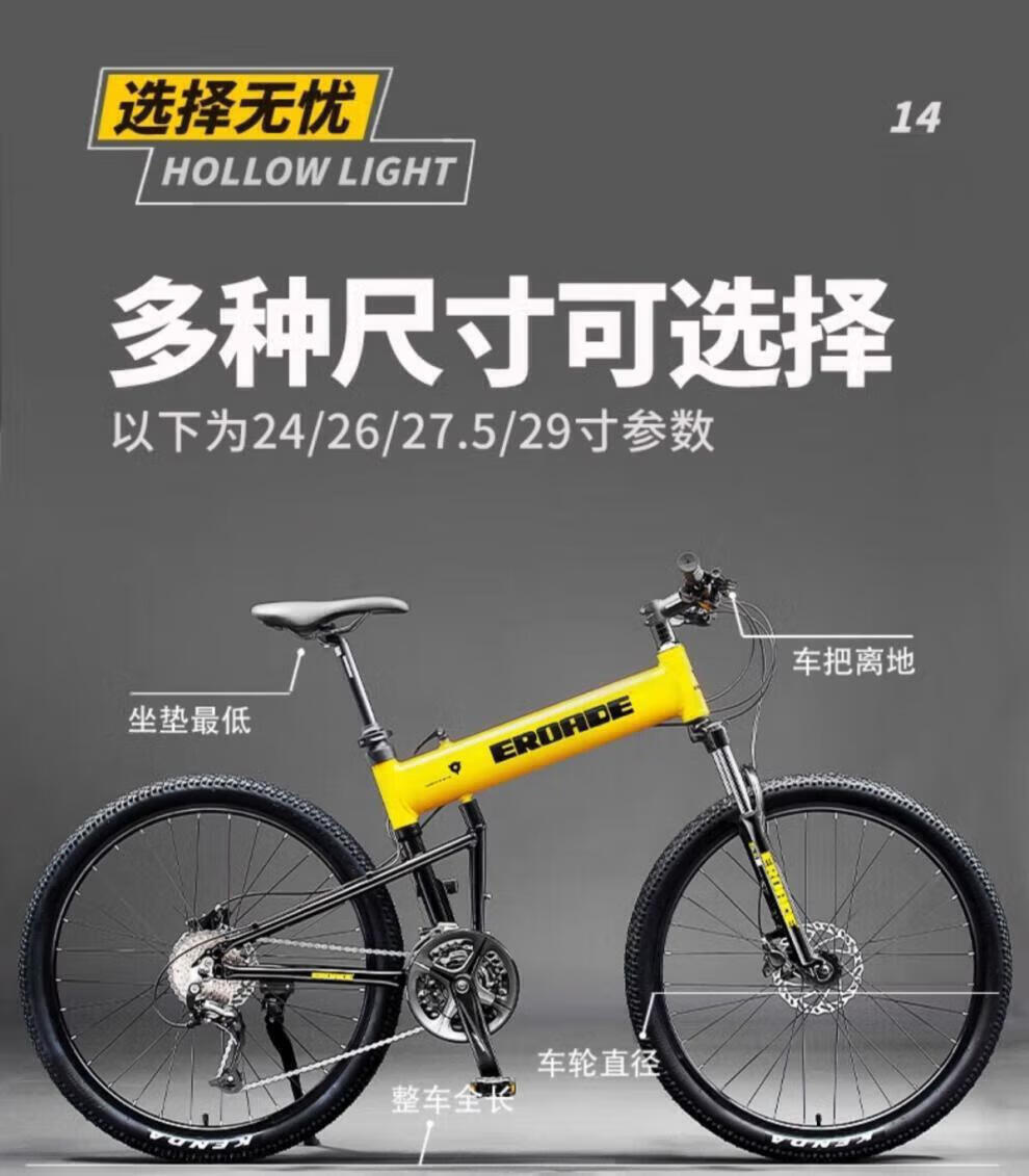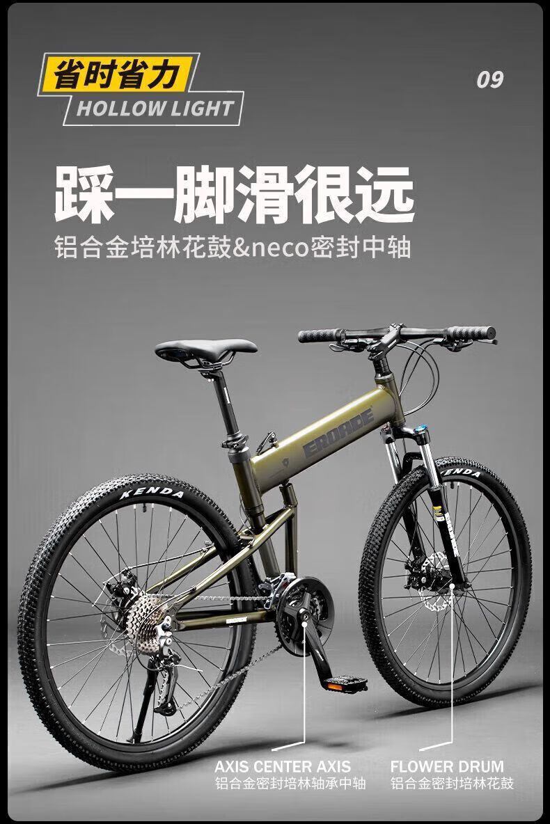 EROADE German Mountain Bike Folding Bicycle Men's Adult Female Teenager Ultra-Light Aluminum Alloy Portable Transmission Black Zeuma X4 Shimano Double Oil Disc 27.5 Inch 24 Speed-170-185cm