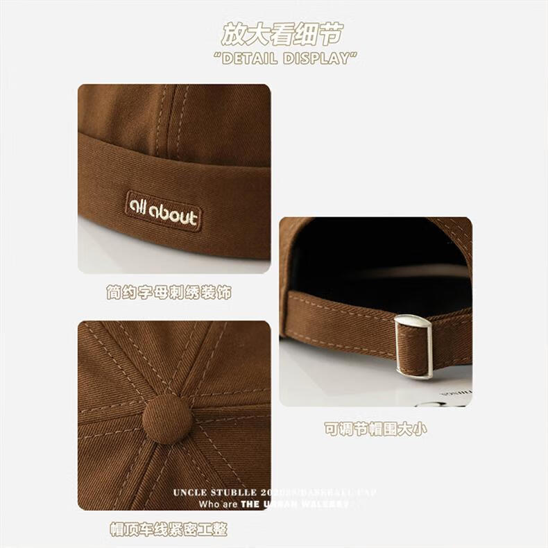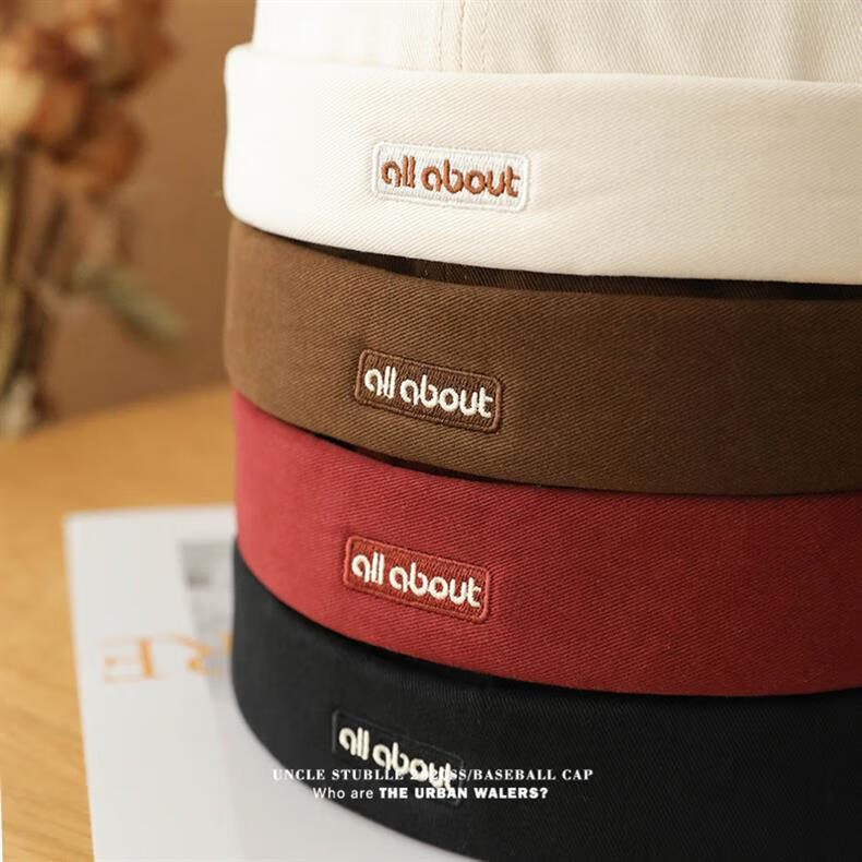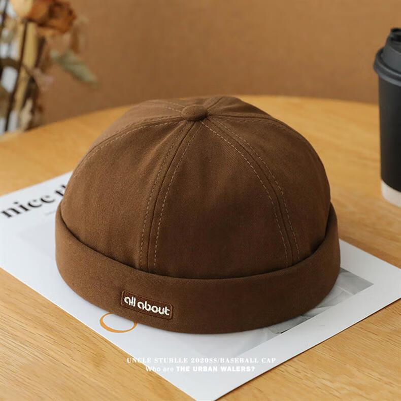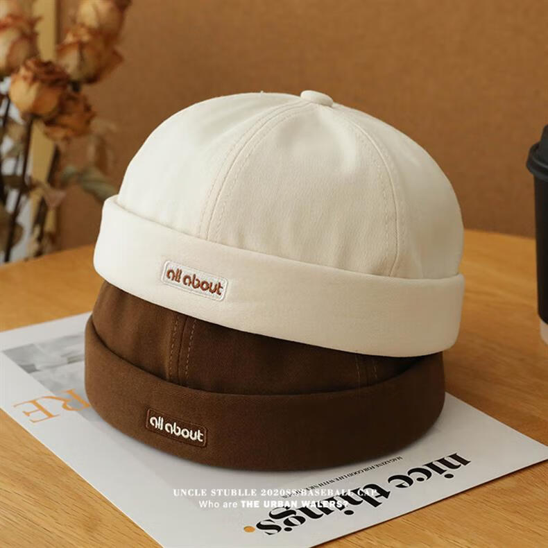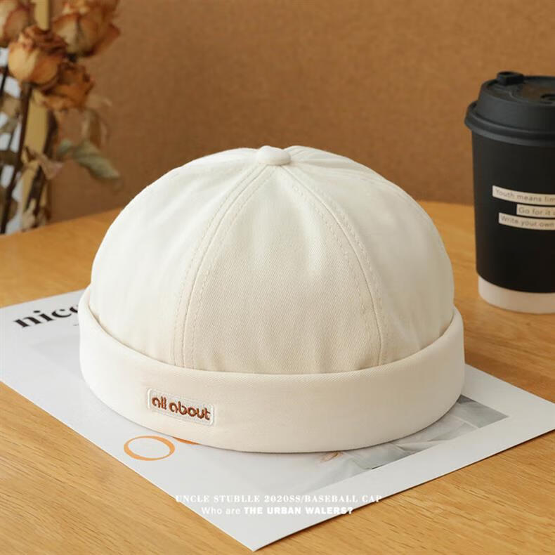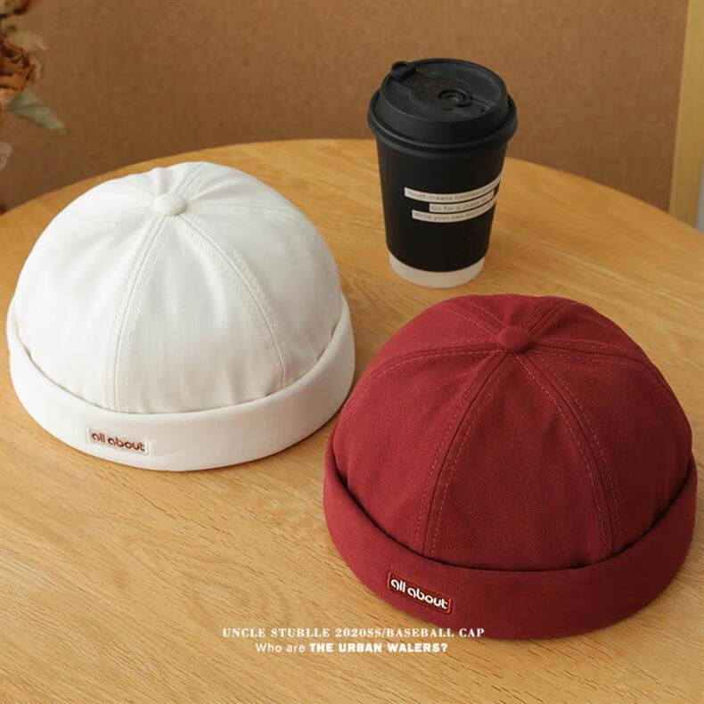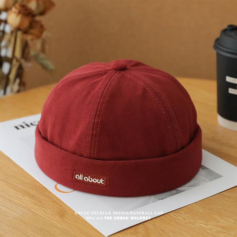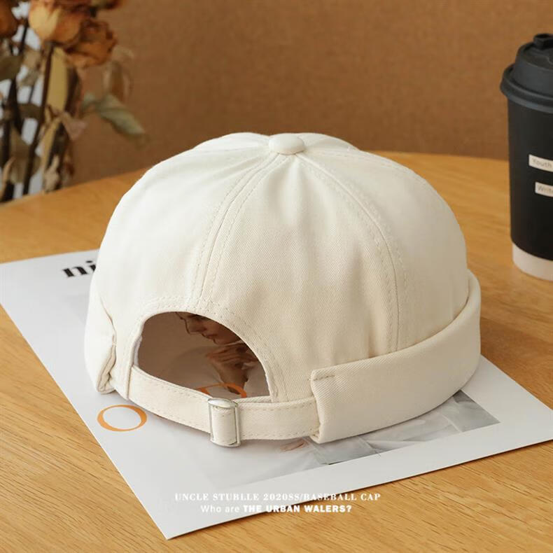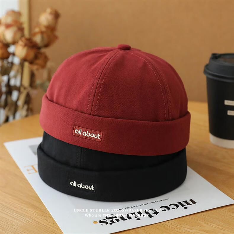 Trendy brand hats, yuppie street short-cut men's and women's hats, men's landlord's brimless hippie hats, Japanese hats, retro black, one size fits all (55-61cm) adjustable