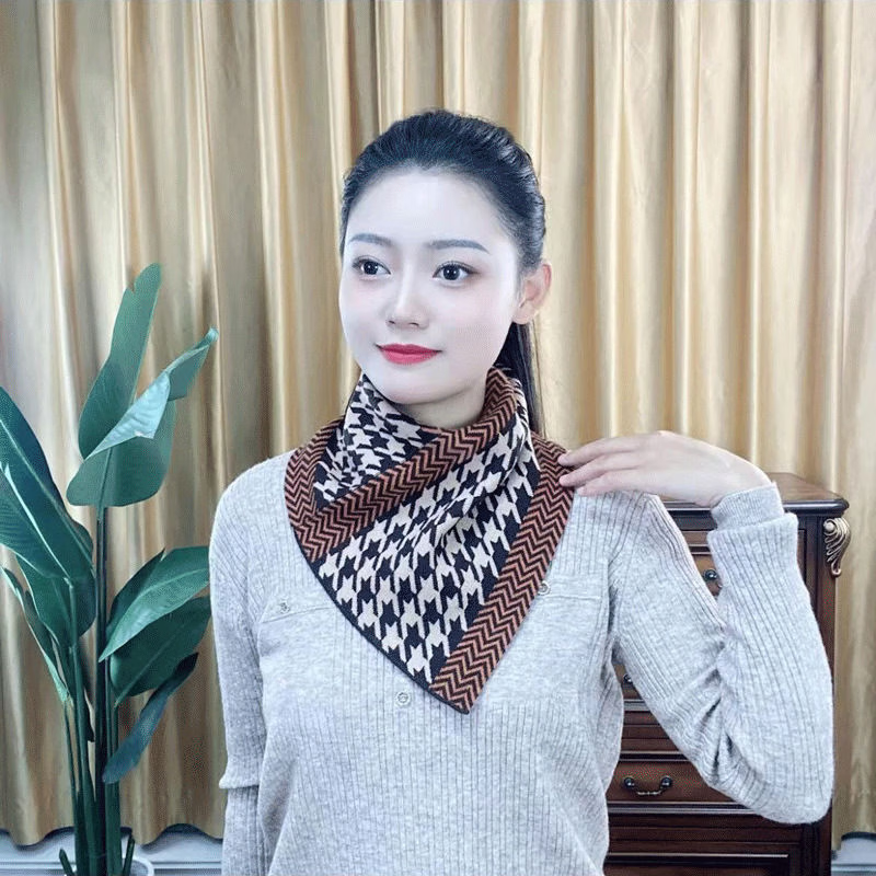 Double 11 Big Sale New Autumn and Winter Neck Warmer for Cold Protection Versatile Houndstooth Neck Cover Temperament Triangular Scarf PW11 Hot Selling Momentum Buy One for Two 2 Packs - Great Wall Black + Black Houndstooth