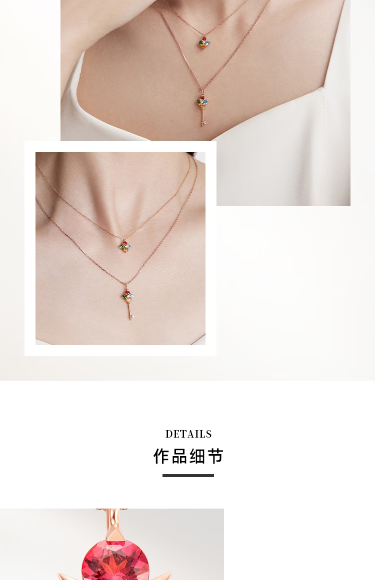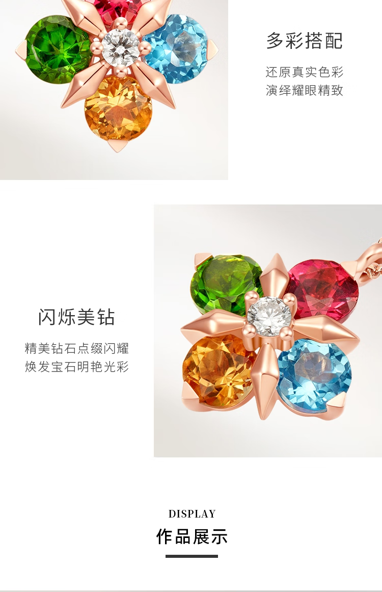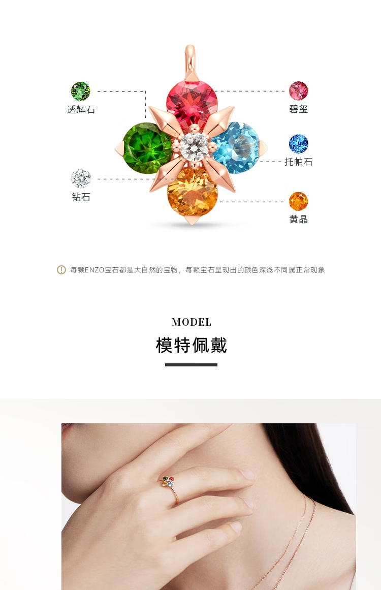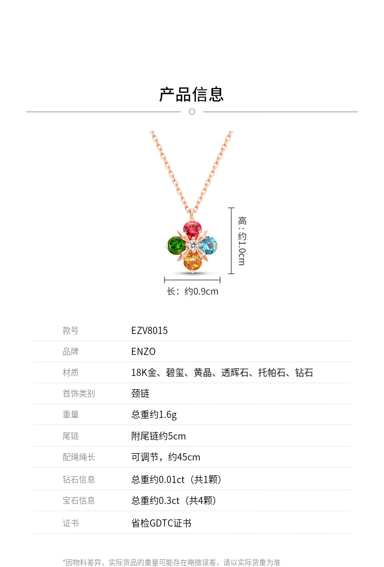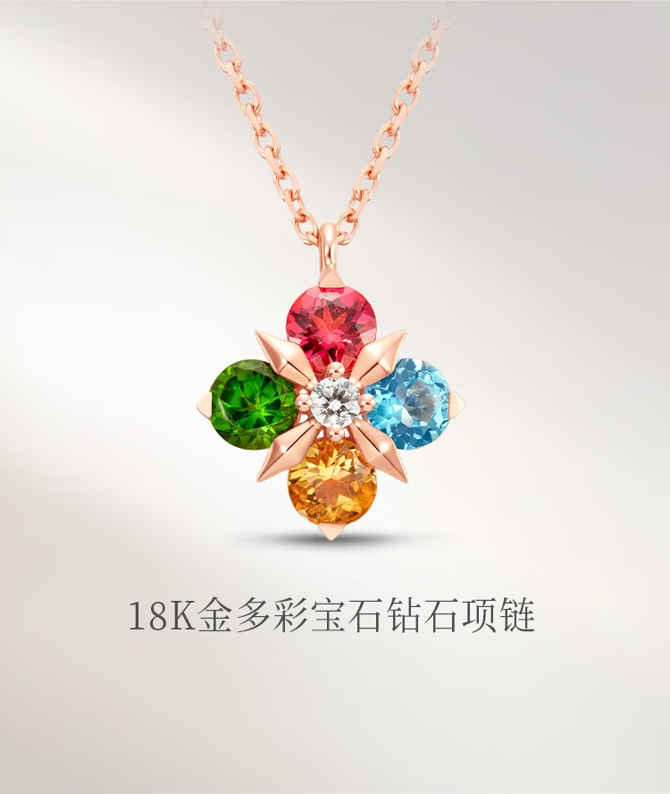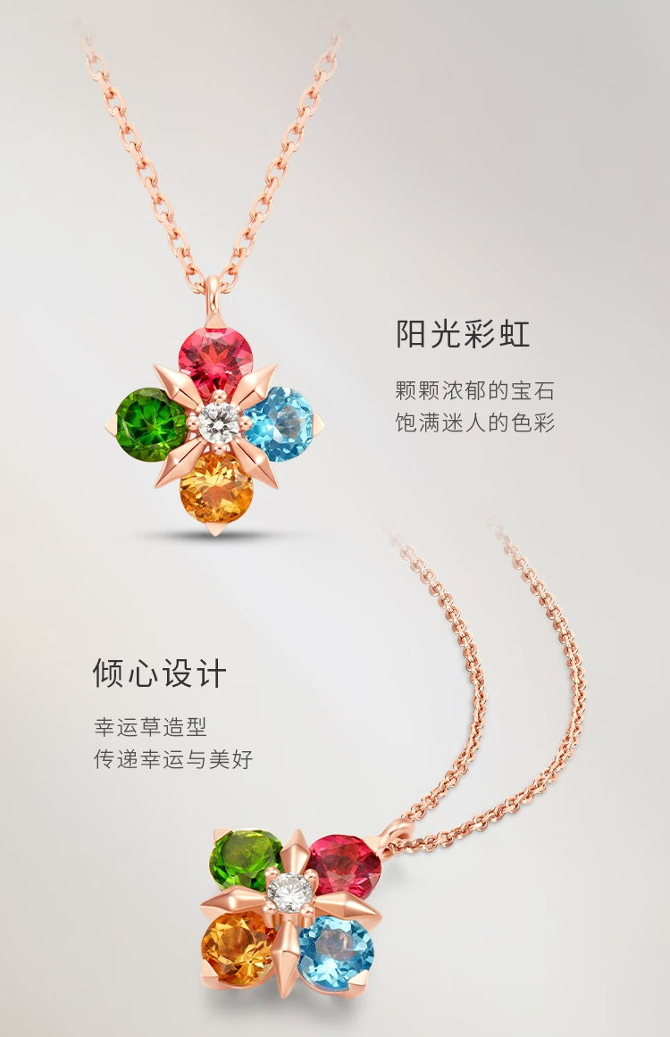 Chow Tai Fook ENZO four-leaf clover 18K gold colorful gemstone diamond necklace for women EZV8015 gift for girlfriend EZV8015