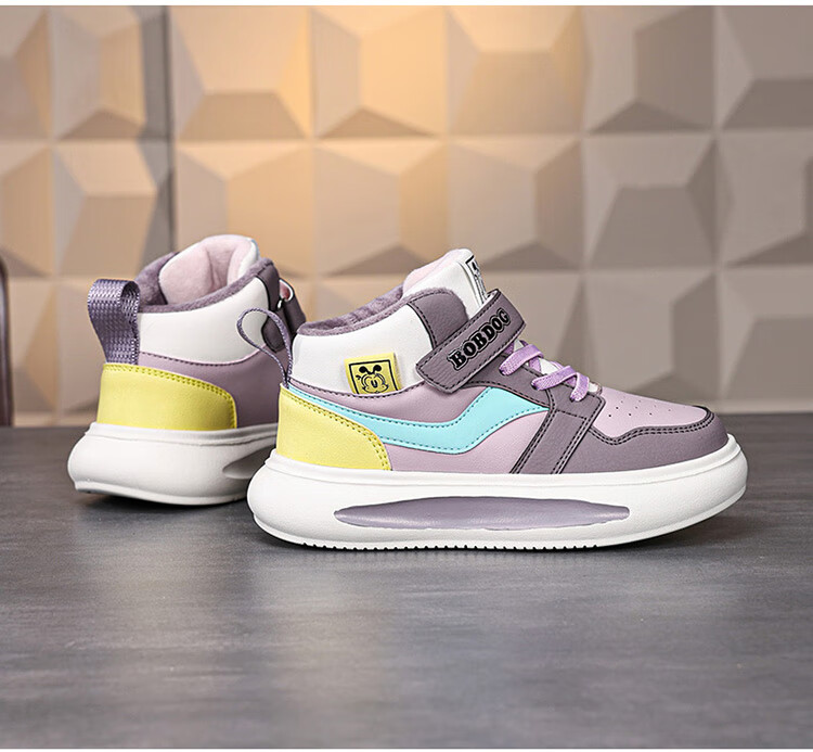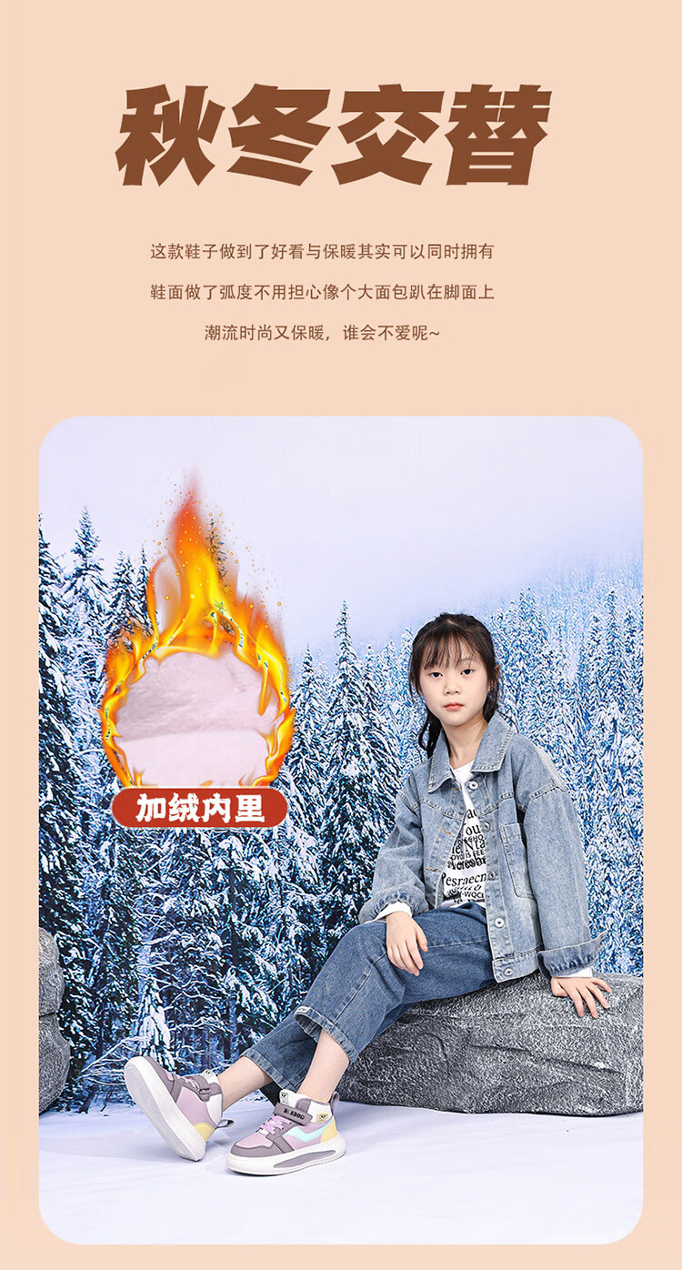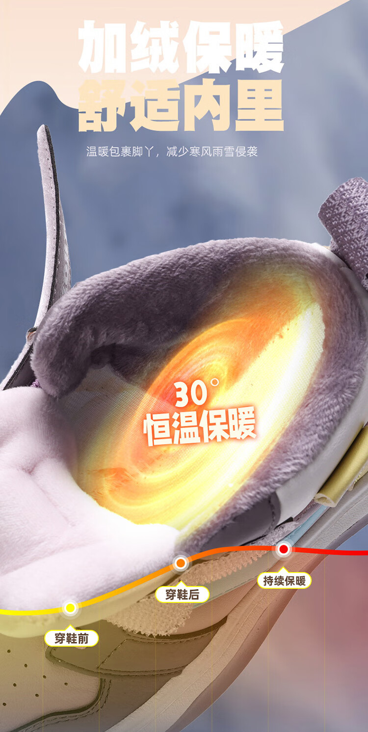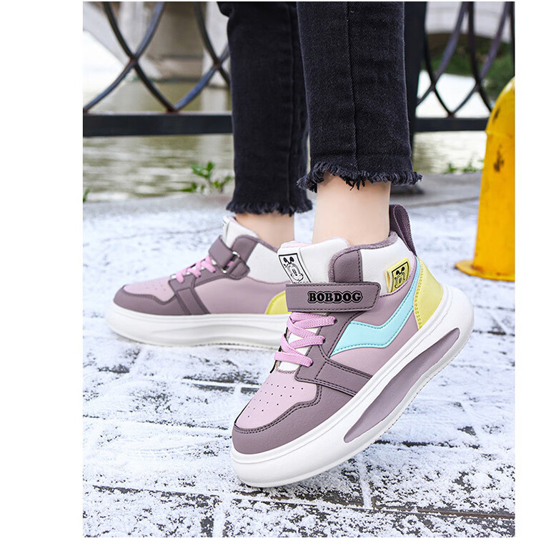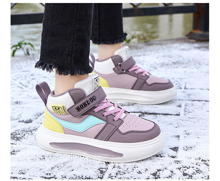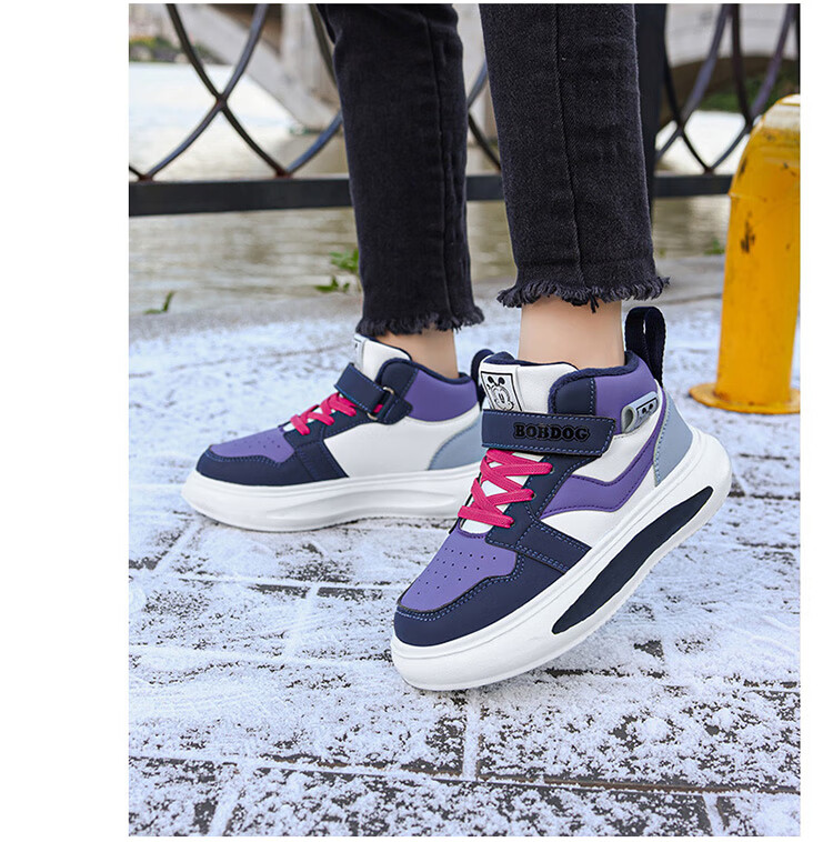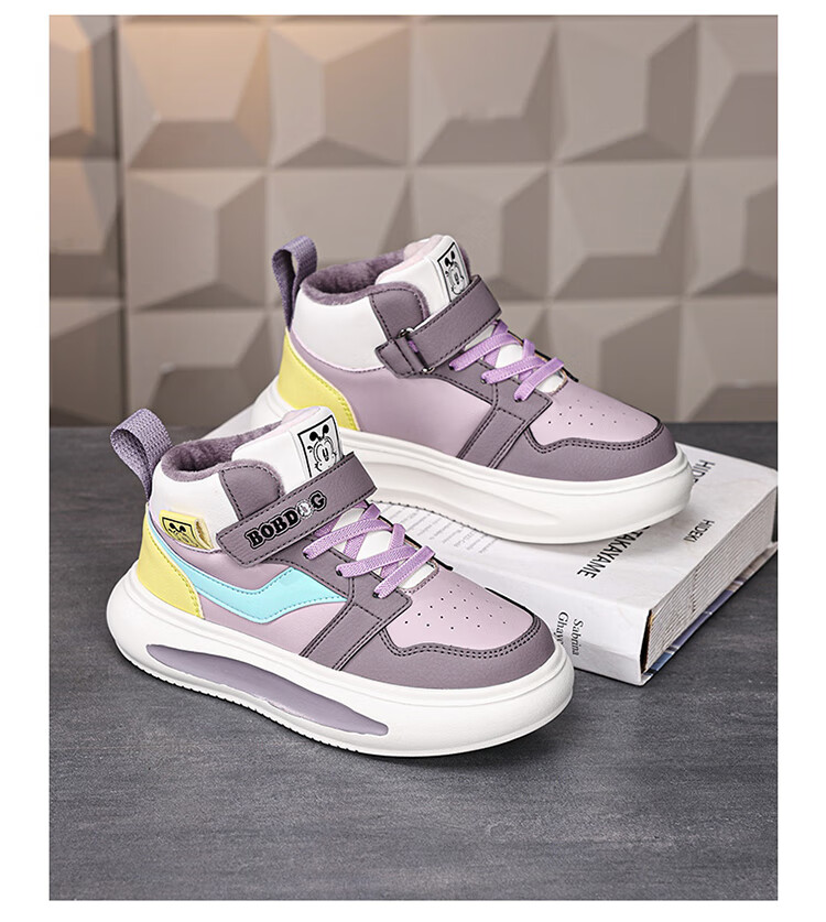 Babudou Girls' Shoes Winter Velvet Warm Children's Cotton Shoes Leather Waterproof Medium and Large Children's Sports Shoes High-top Cotton Boots White Velvet Cotton Shoes 38 (Inner Length 24.0cm)