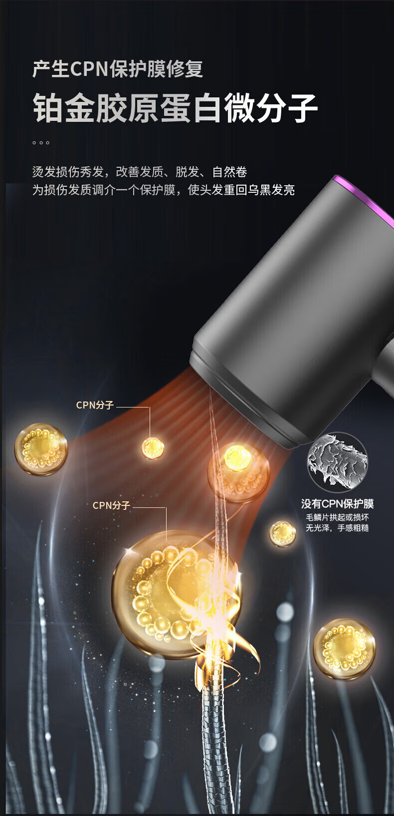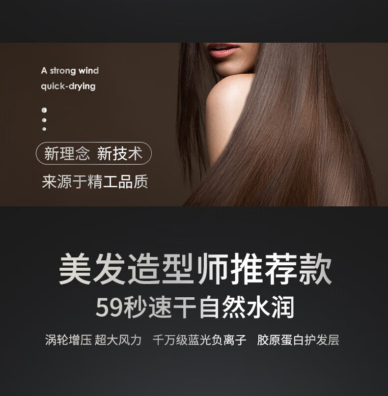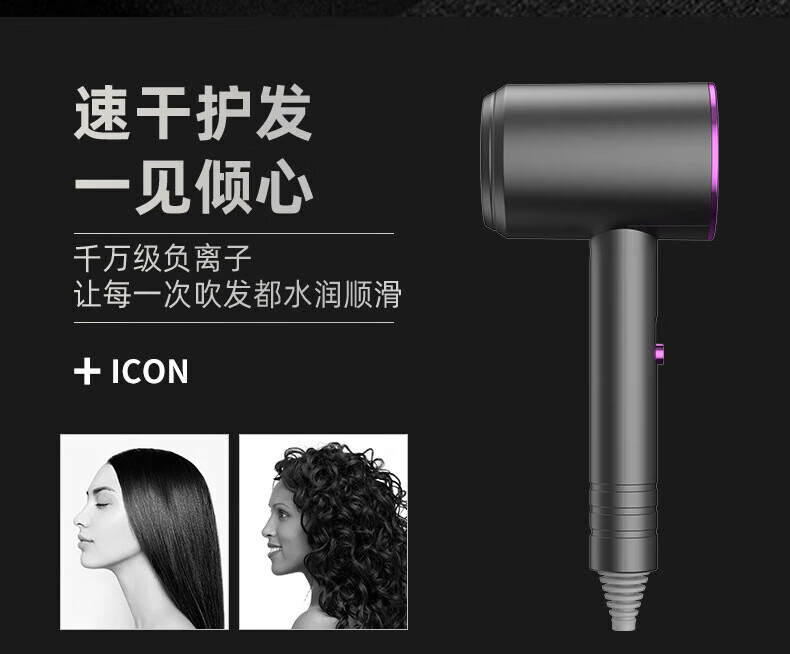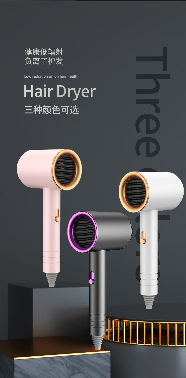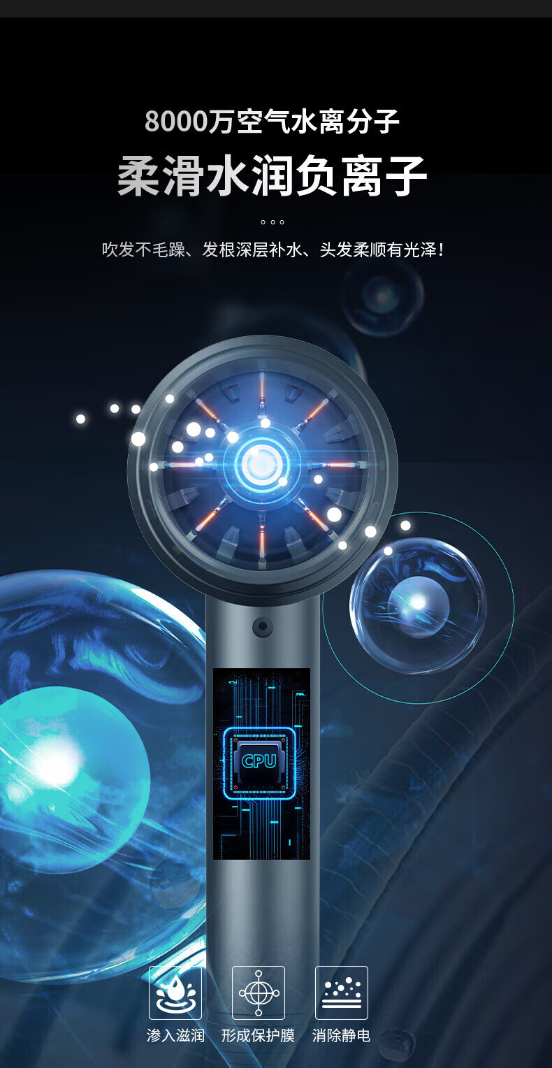 Xiaomi ecological chain series hair dryer, high power, non-damaging, hair salon hair dryer, negative ion hammer hair dryer, student home hair dryer, hot and cold wind hair dryer, space gray 1300w three-speed adjustment + blue light negative ion