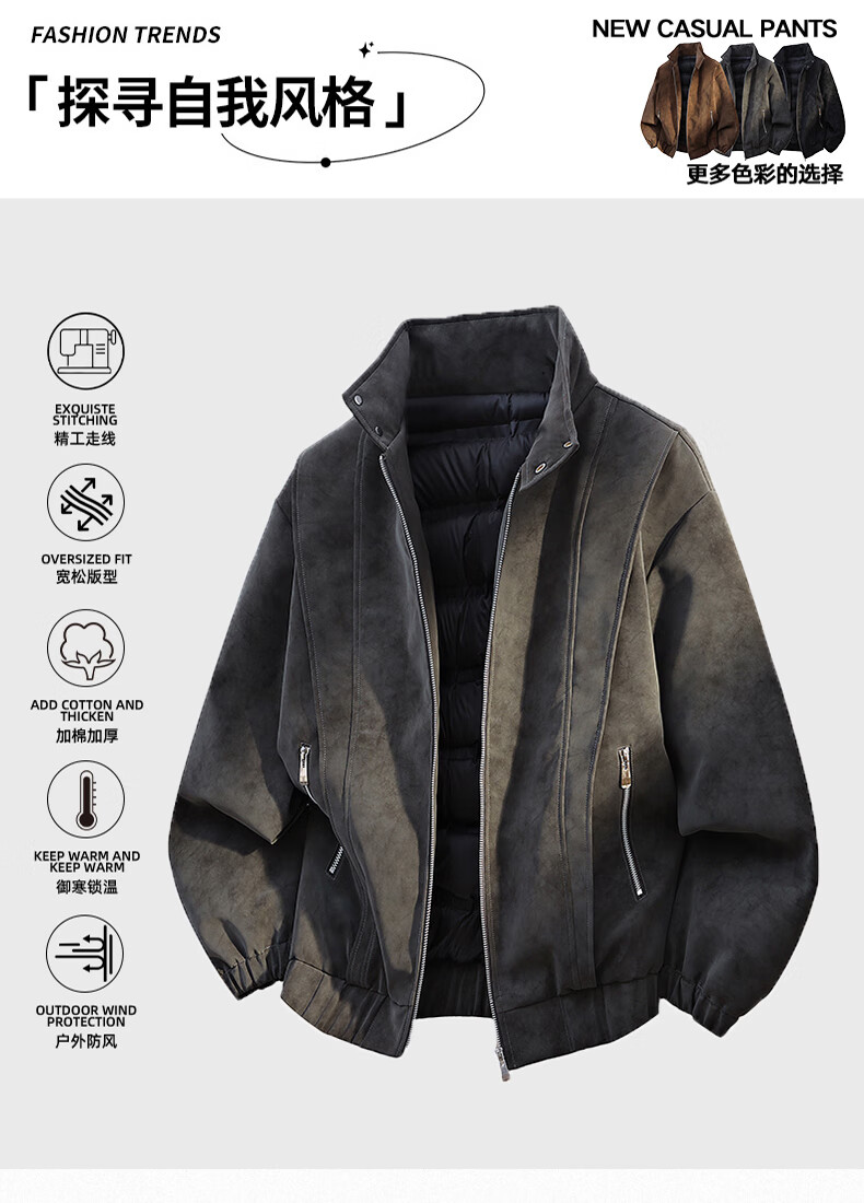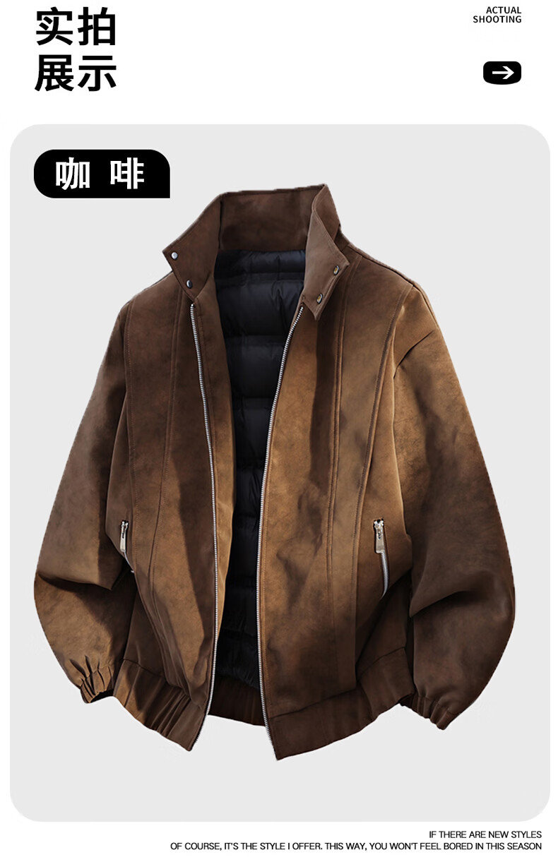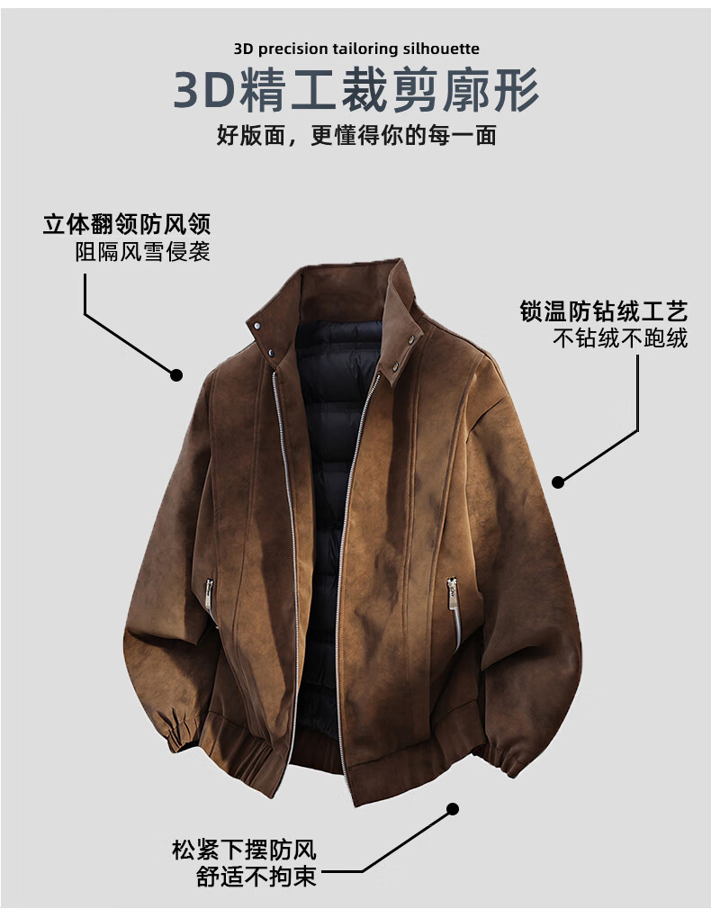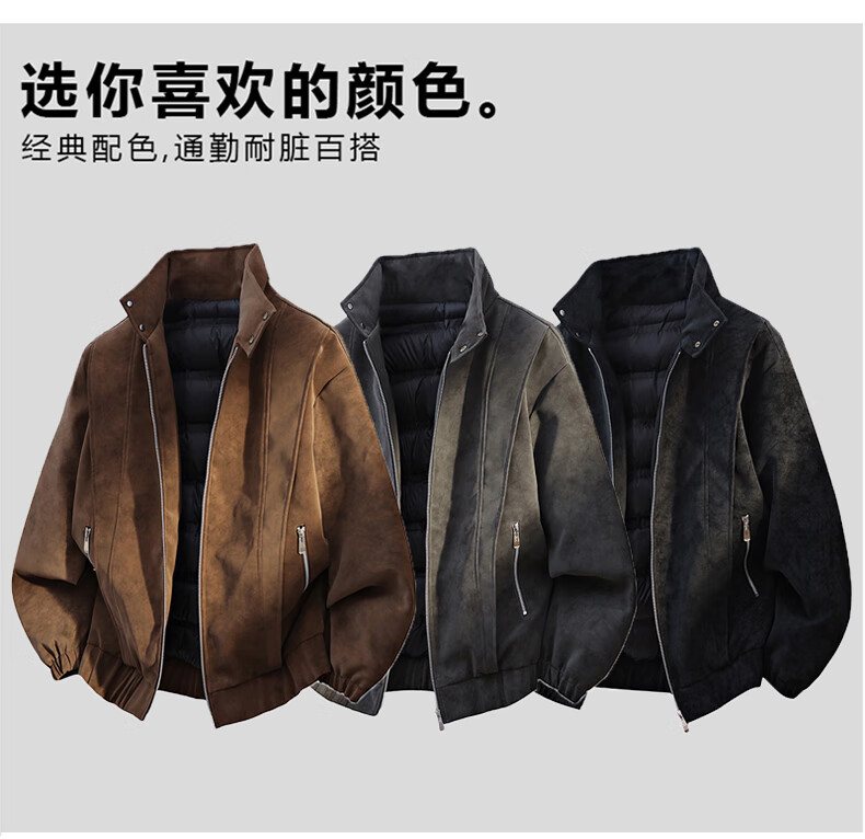 NASADKGM Пуховик мужской 2025 Зимний модный белый утиный пух с воротником-стойкой Кожаная куртка Мужская повседневная универсальная теплая верхняя одежда Мужская темно-серая 2XL