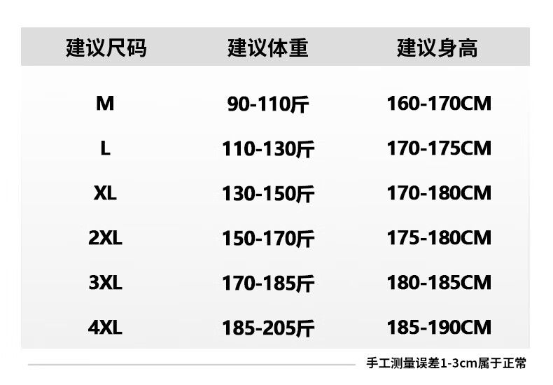 China (cm) 165 / 88-90 170 / 96-98 175 / 108-110 180 / 118-122 185 / 126-130