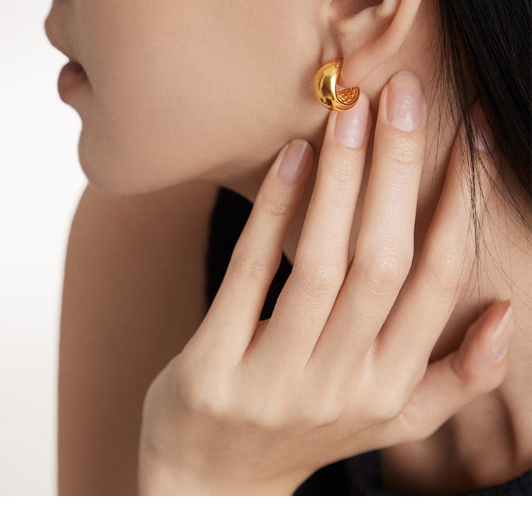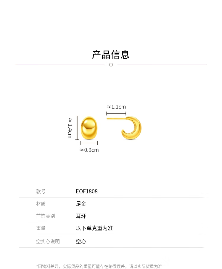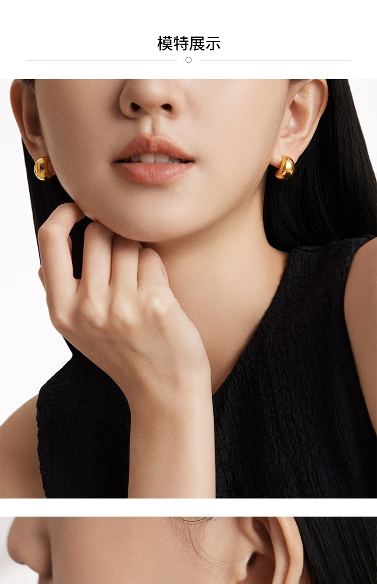 Chow Tai Fook INS style dolphin back pure gold earrings and earrings birthday gift EOF1808, priced at about 5.20g (labor cost 580)