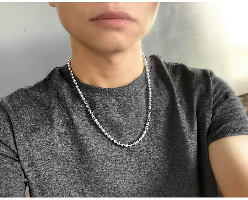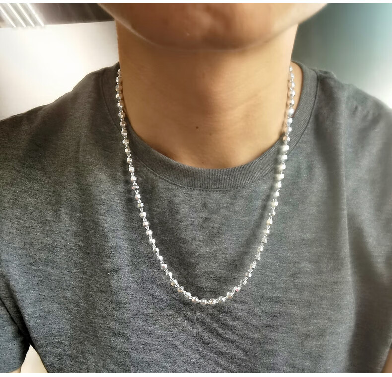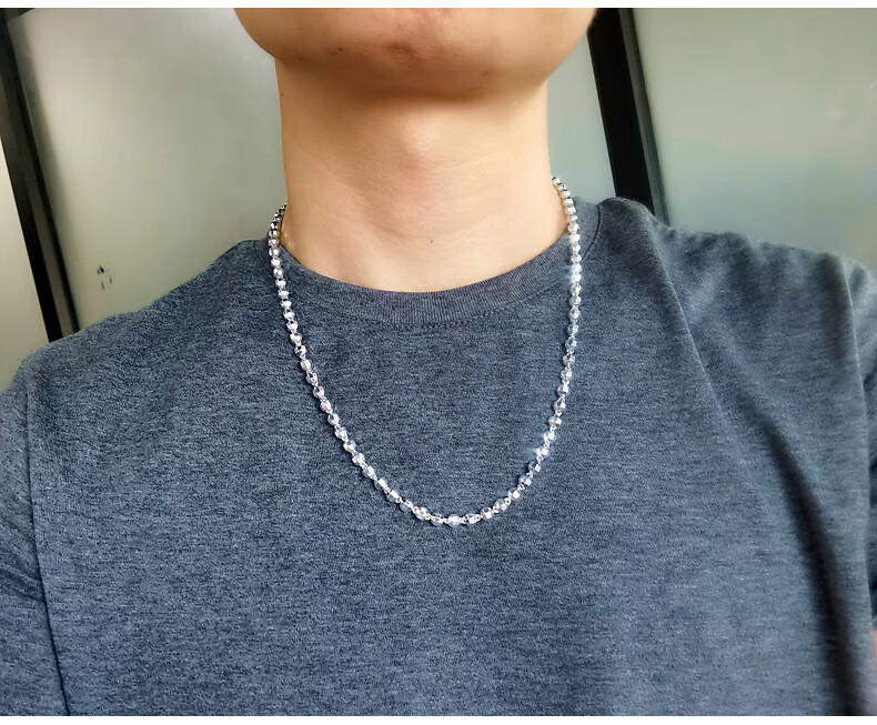 MZMZ platinum necklace men's pt950 platinum clavicle chain personalized hip-hop decoration Valentine's Day birthday gift for boyfriend Light luxury ball chain - width 5mm chain length 55cm (gift box)