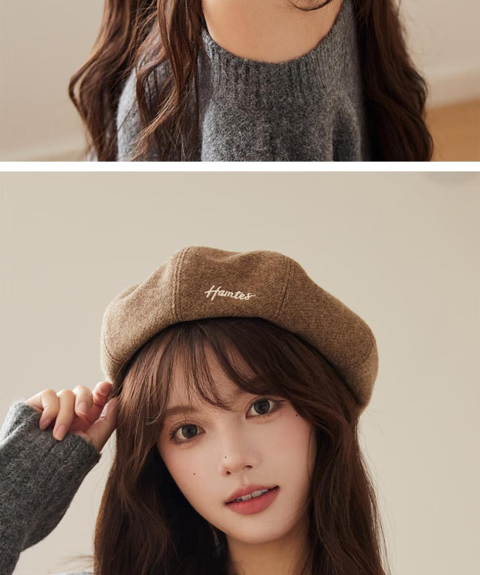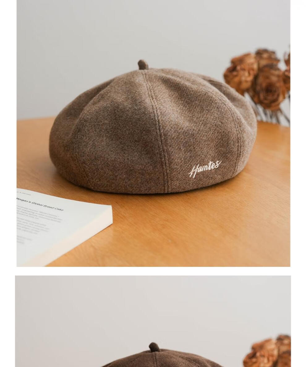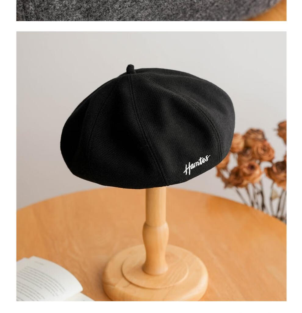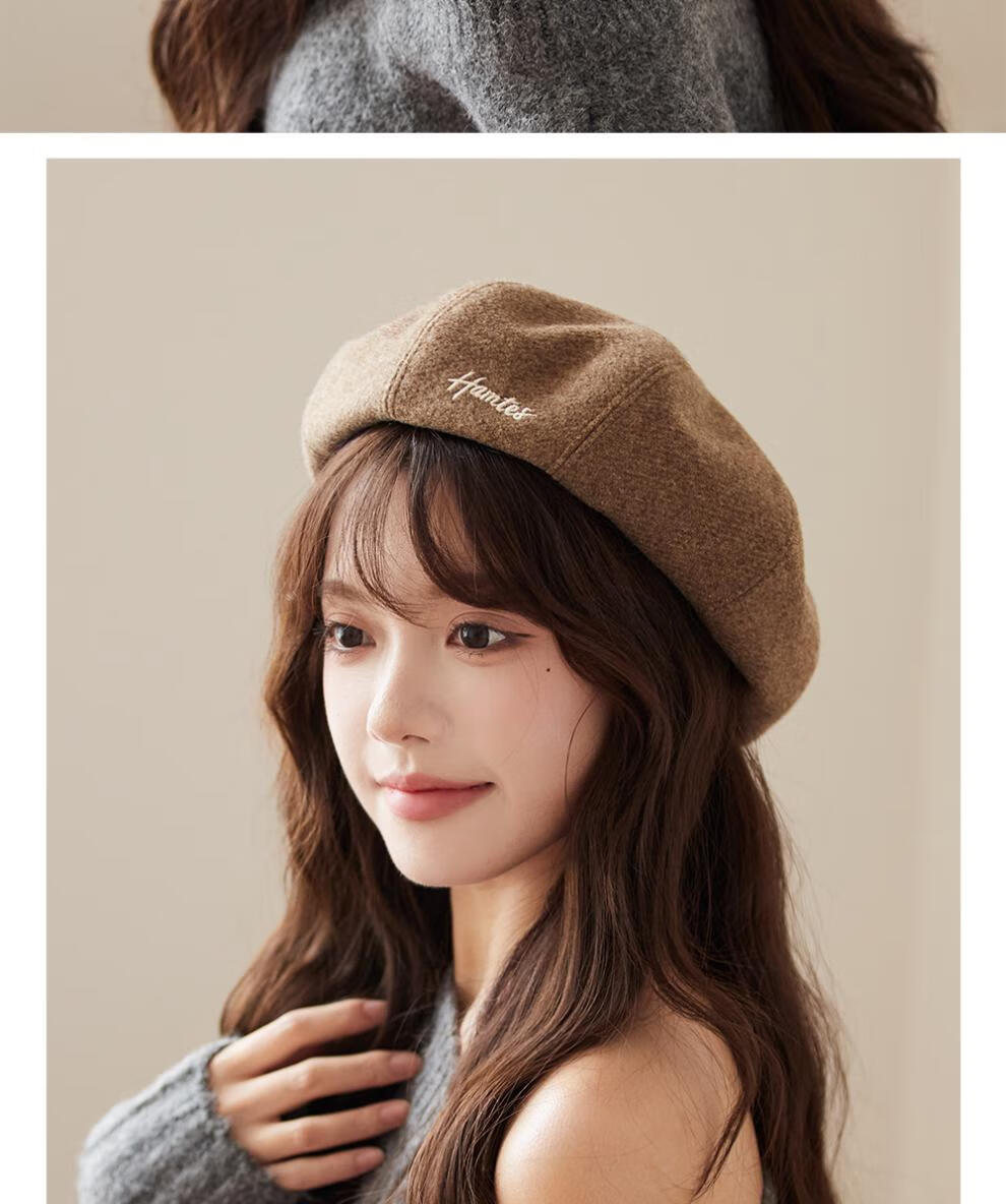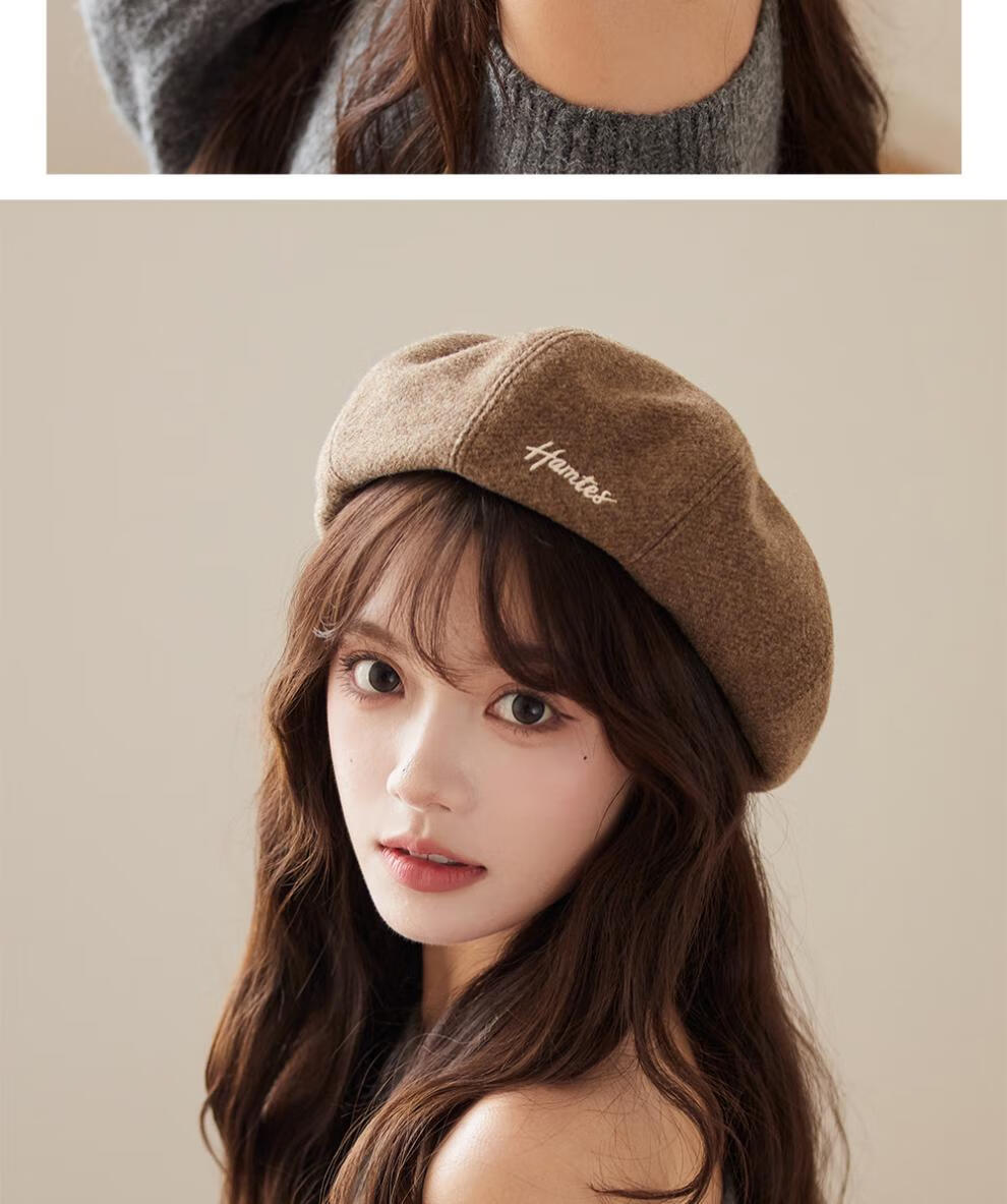 Complete autumn and winter retro woolen beret Korean style letter embroidered pumpkin hat apricot M one size (55-59c) adjustable