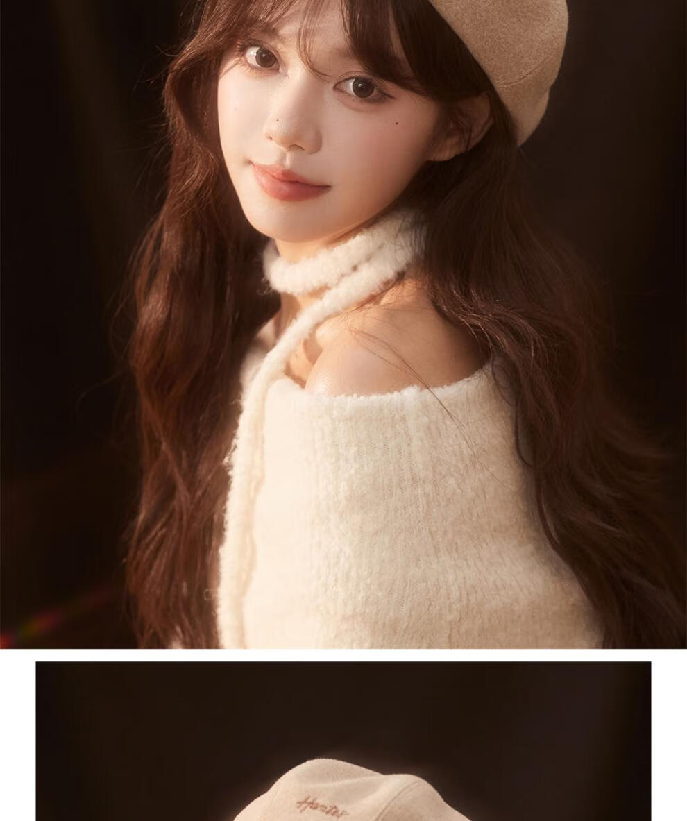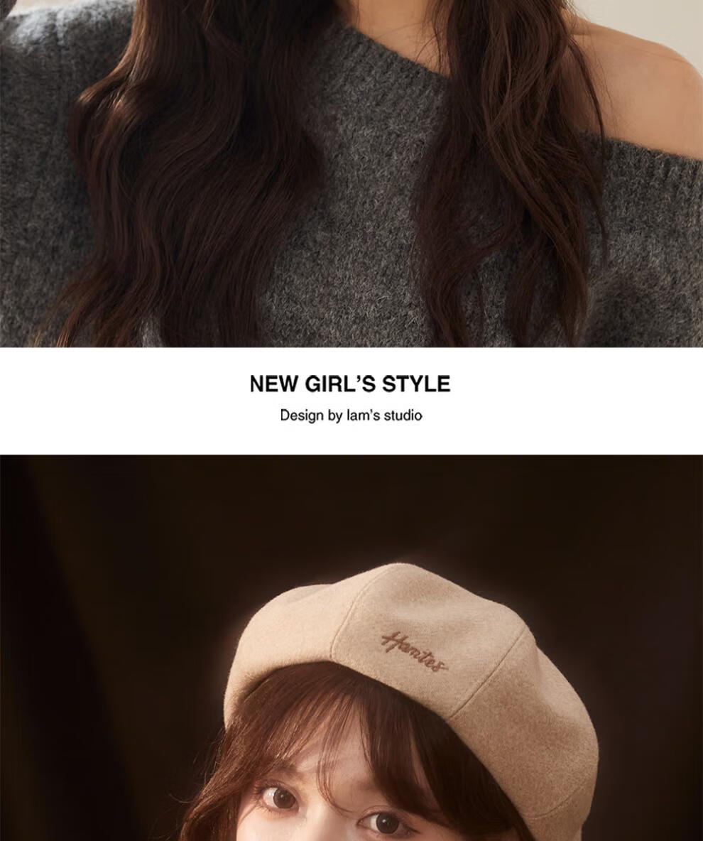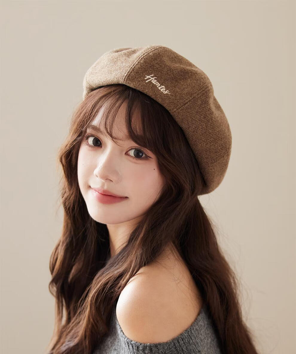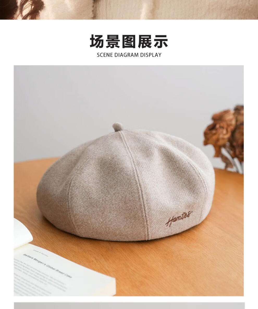 Complete autumn and winter retro woolen beret Korean style letter embroidered pumpkin hat apricot M one size (55-59c) adjustable
