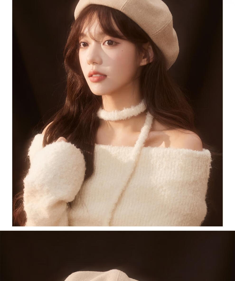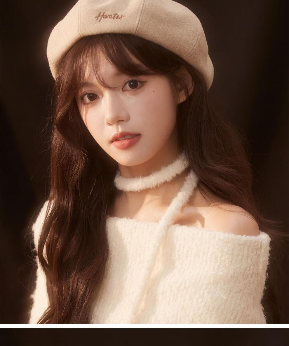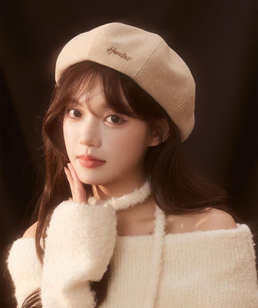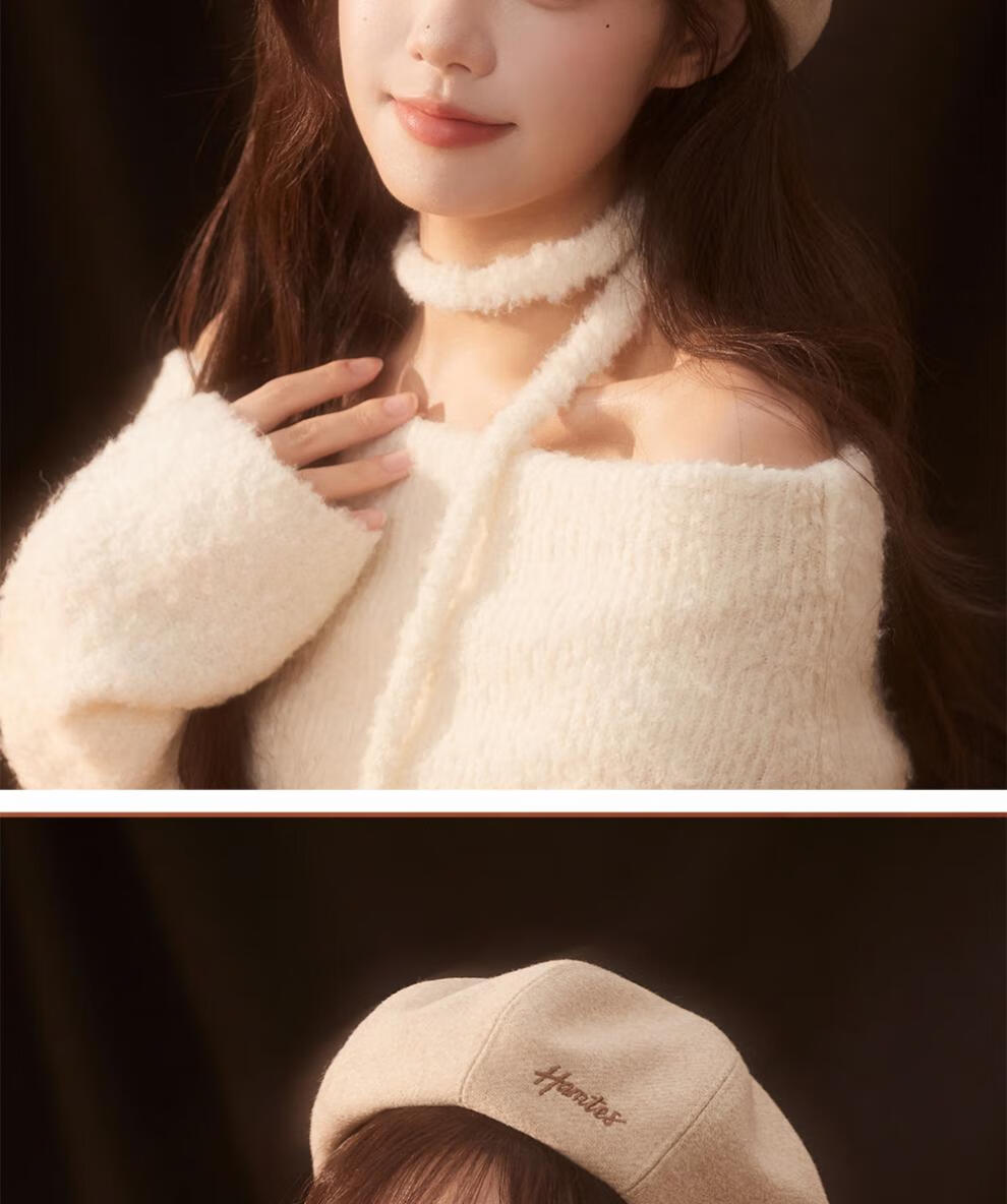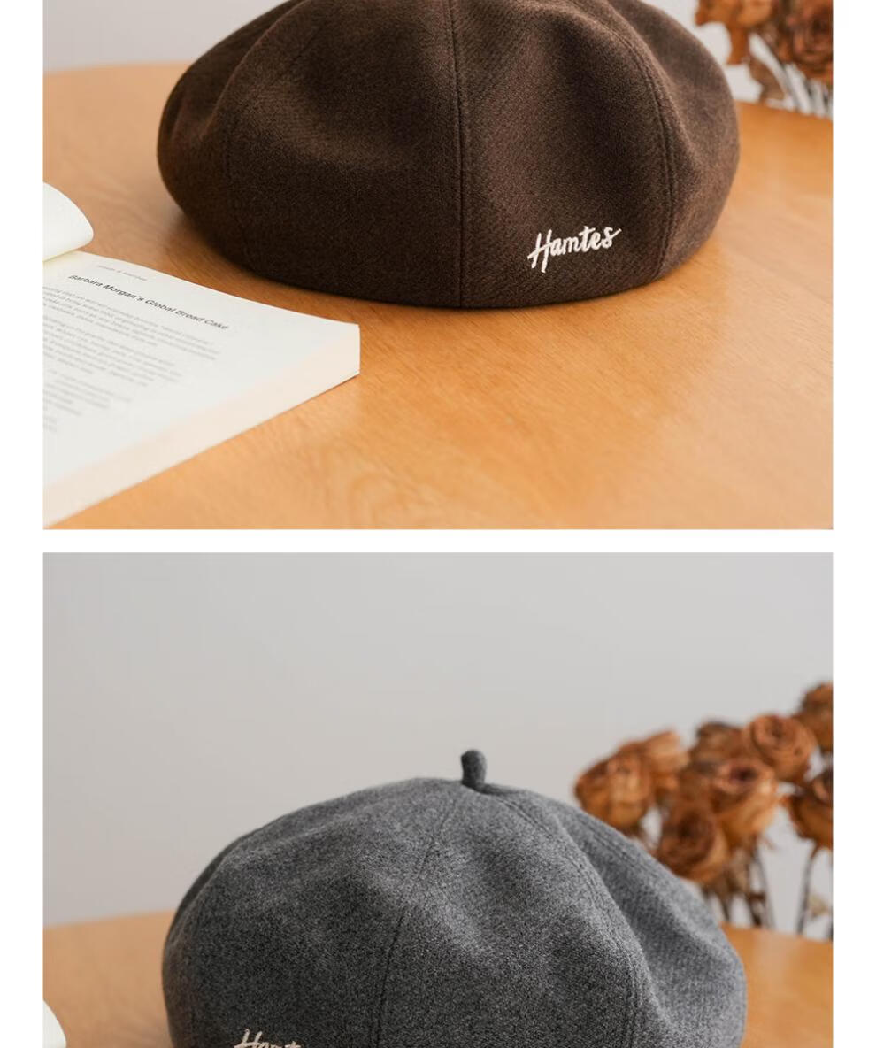 Complete autumn and winter retro woolen beret Korean style letter embroidered pumpkin hat apricot M one size (55-59c) adjustable