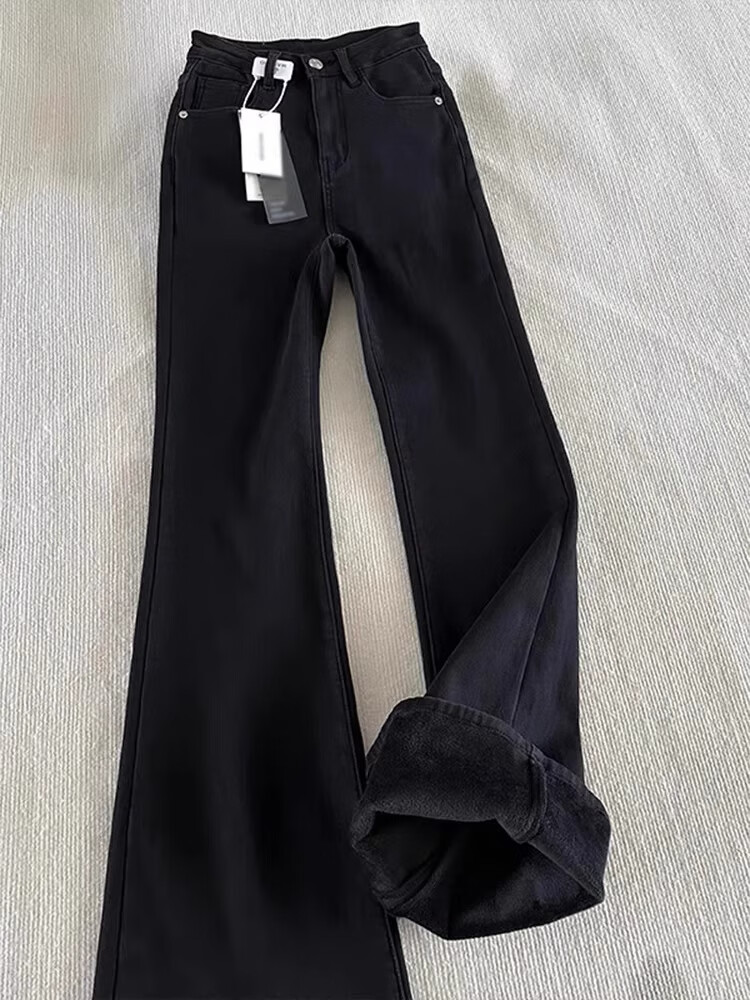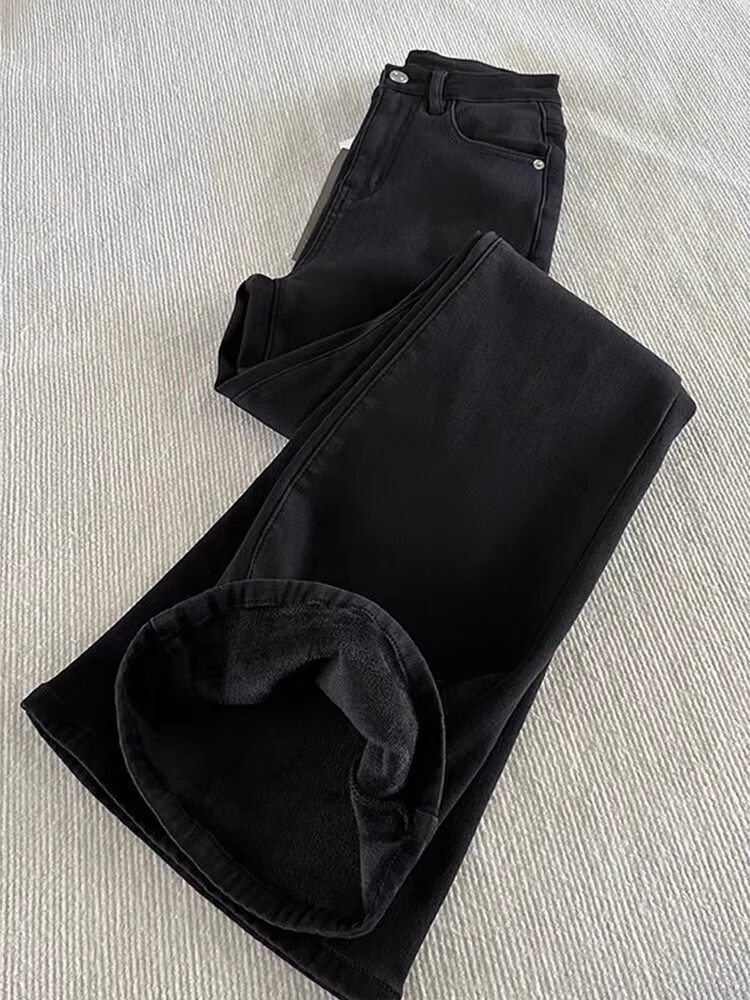 Хлопковый ятаган из листьев ивы плюс бархатные утолщенные джинсы для мужчин осенью и зимой, новый уличный модный бренд, узкая версия, брюки-ботфорты FY9131, черные плюс бархатные, высокого качества XL 130-150Jin Jin равен 0,5 кг