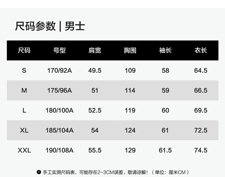 China (cm) 165 / 88-90 170 / 96-98 175 / 108-110 180 / 118-122 185 / 126-130