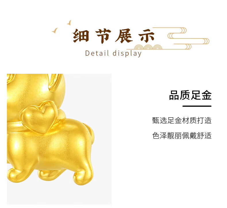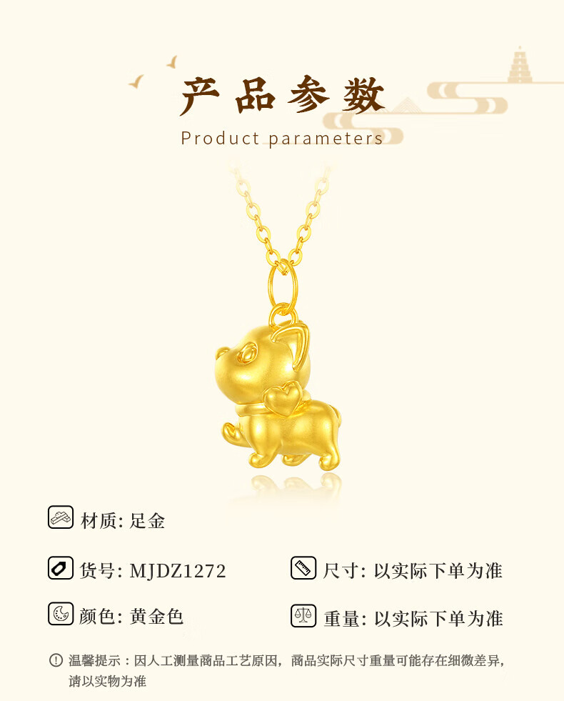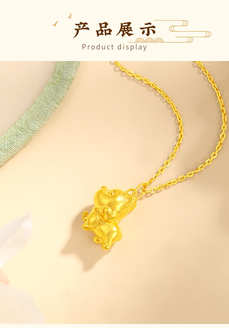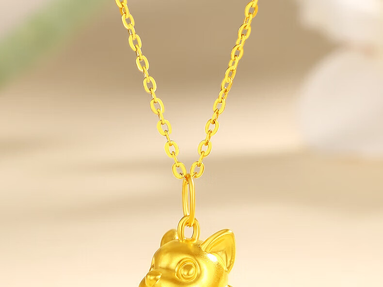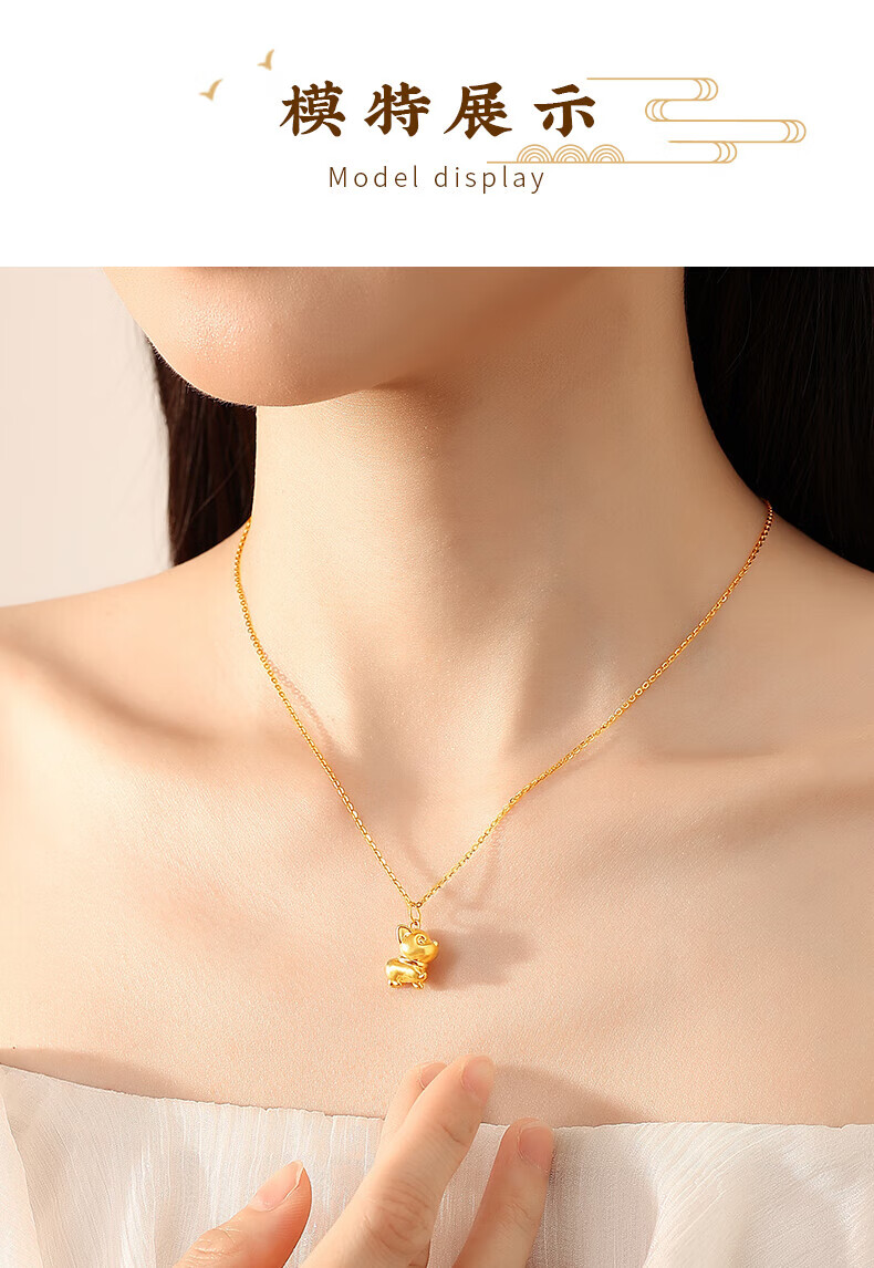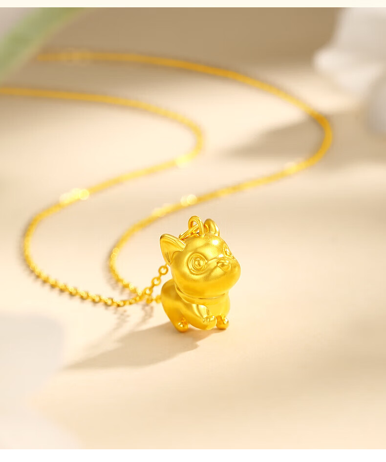 Chinese jewelry puppy gold necklace women's foot gold pendant birthday gift for girlfriend and wife. Pendant * gold weight is about 0.8g. Free silver chain.