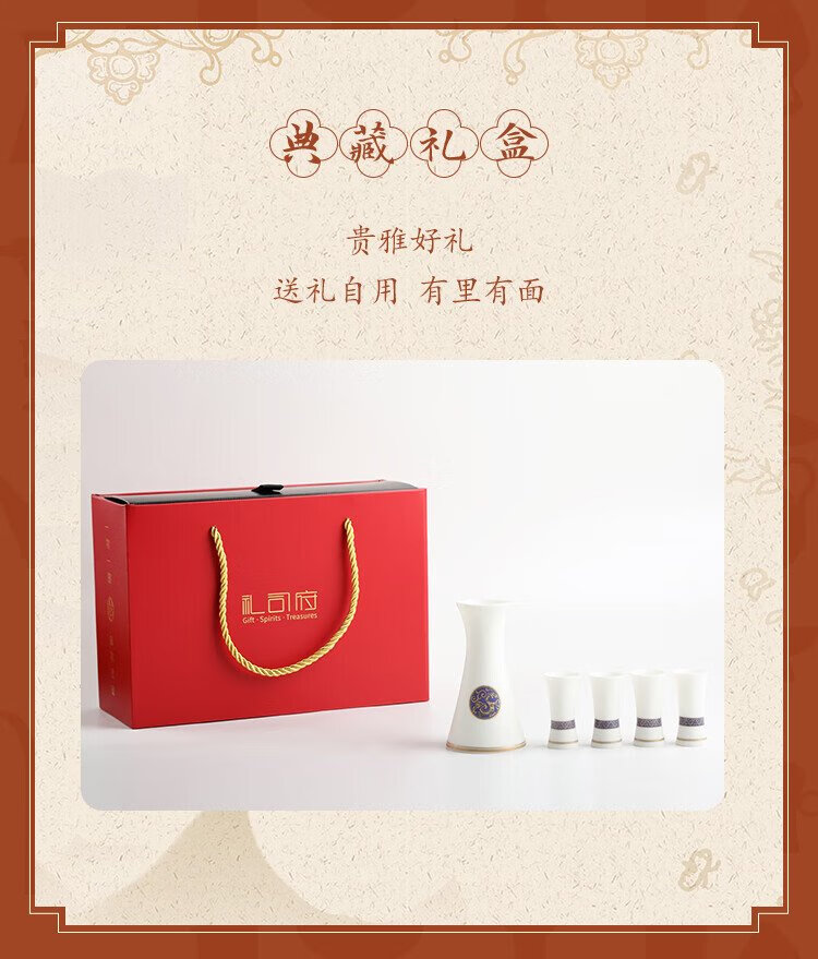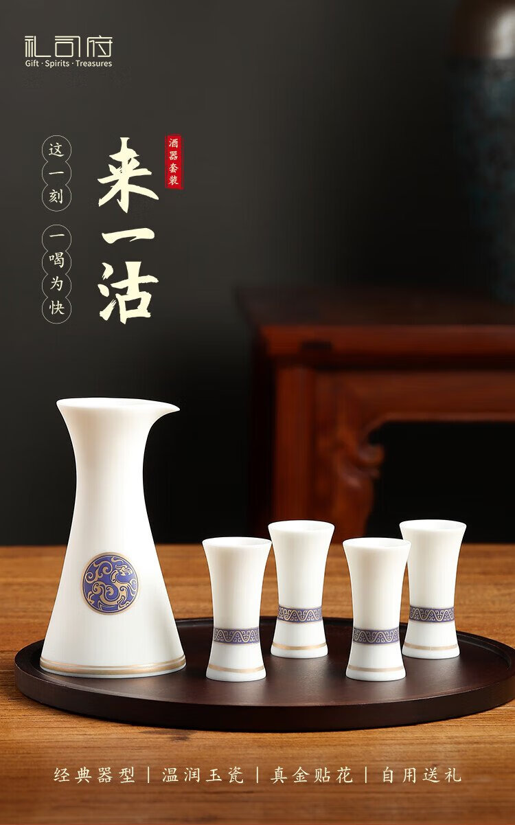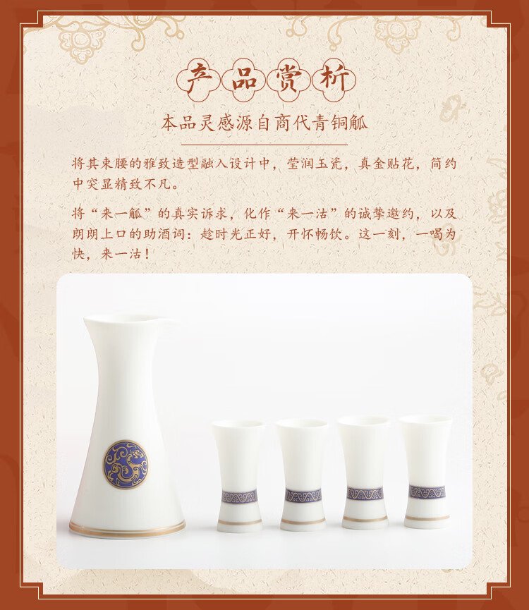 Li Sifu comes with a set of white wine cups, ceramic Chinese-style wine set, wine divider, high-end Luoyang cultural new year gift, two pots and six cups - jade porcelain gift box