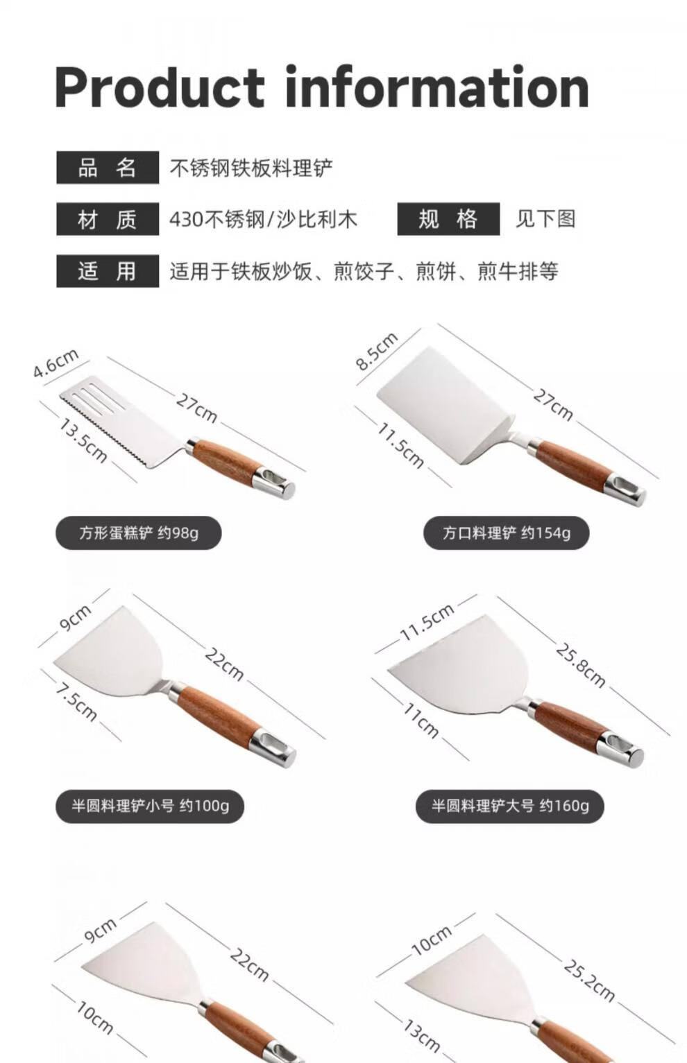 Zwilling German quality stainless steel frying spatula, Tiramisu special spatula, Teppanyaki flat spatula, pancake fruit spatula, semi-circular cooking spatula, large size 11.5cm