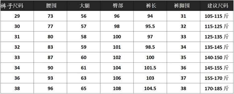 USA(inch) 28-30 30-32 32-34 34-38 38-42