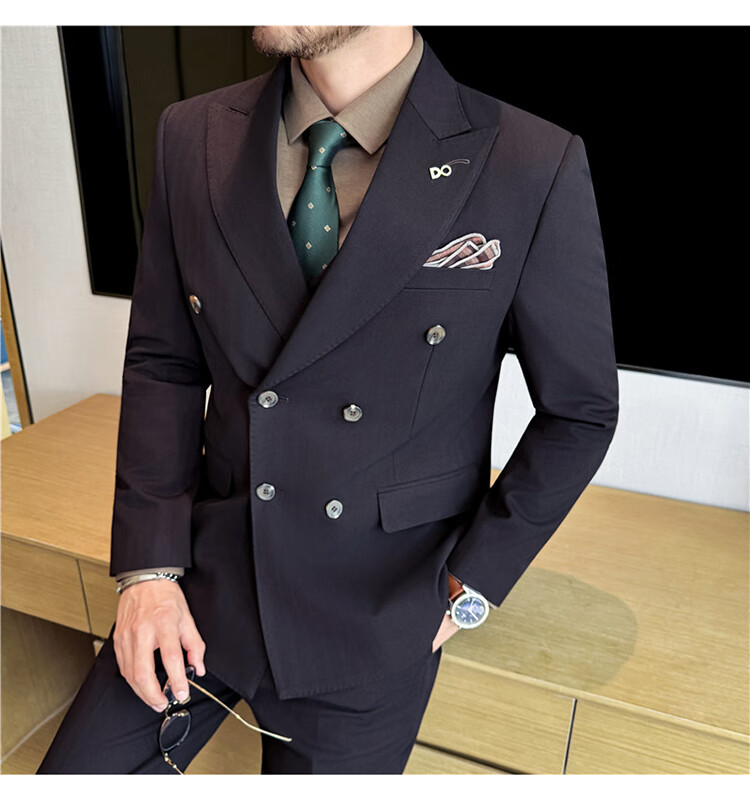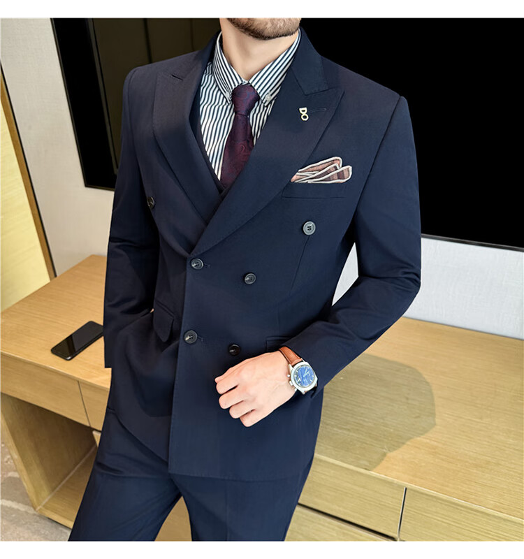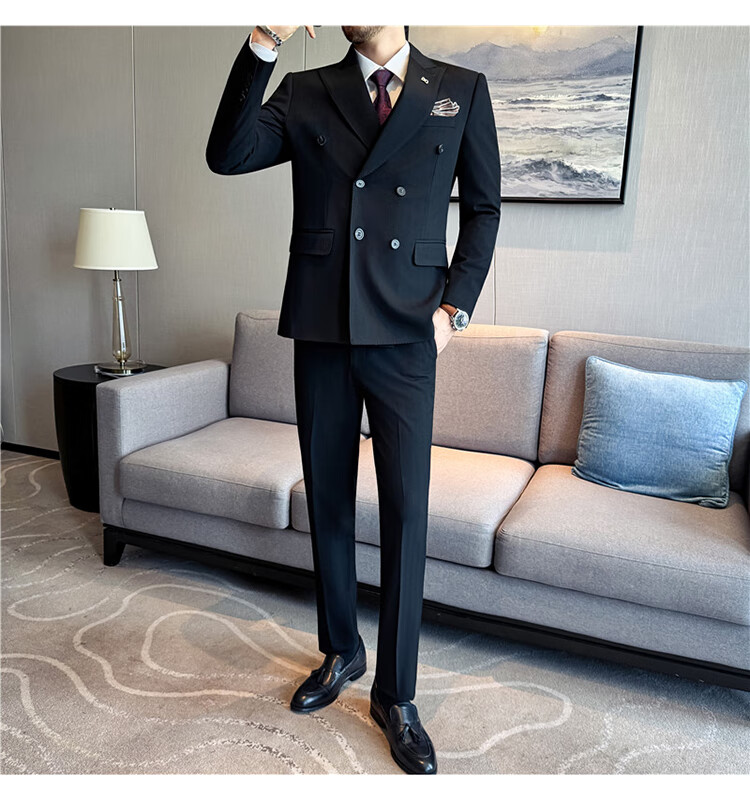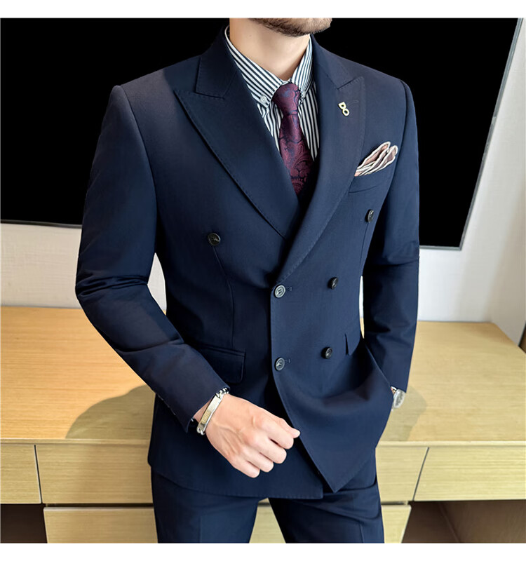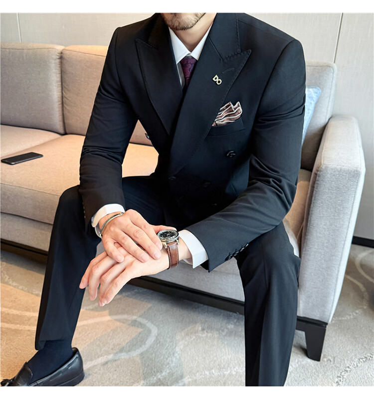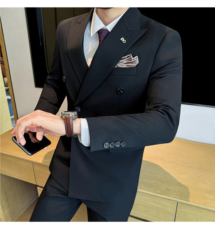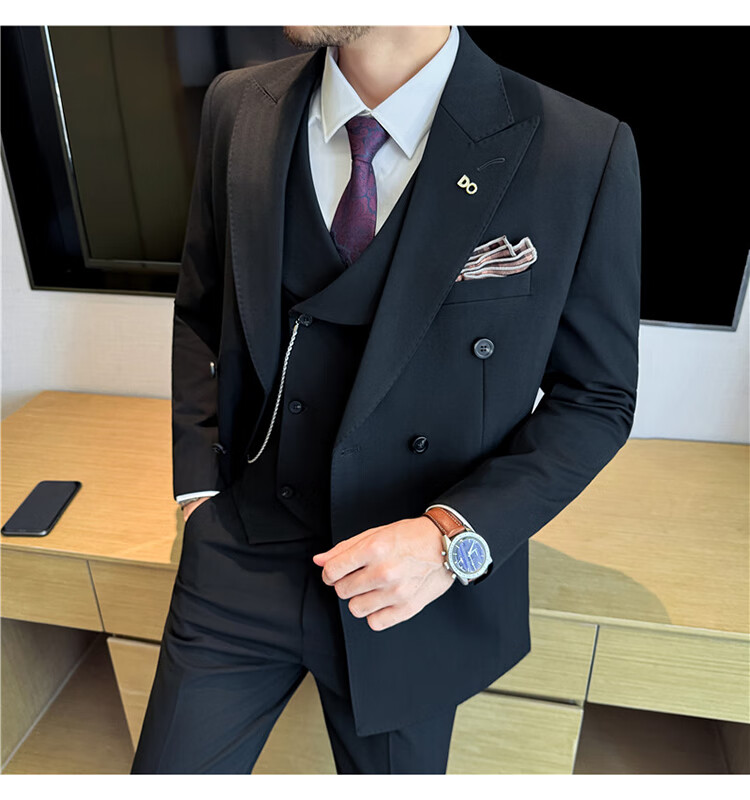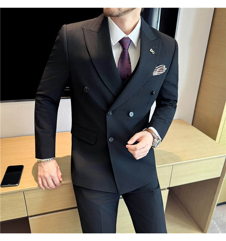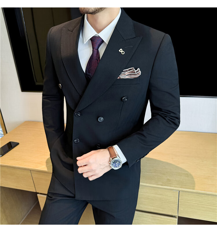 Pierre Cardin beaded lapel collar dark striped double-breasted suit men's suit business formal decoration height quality suit three-piece black (single suit) free tie XL (125-140Jin Jin equals 0.5 kg)
