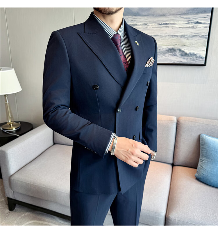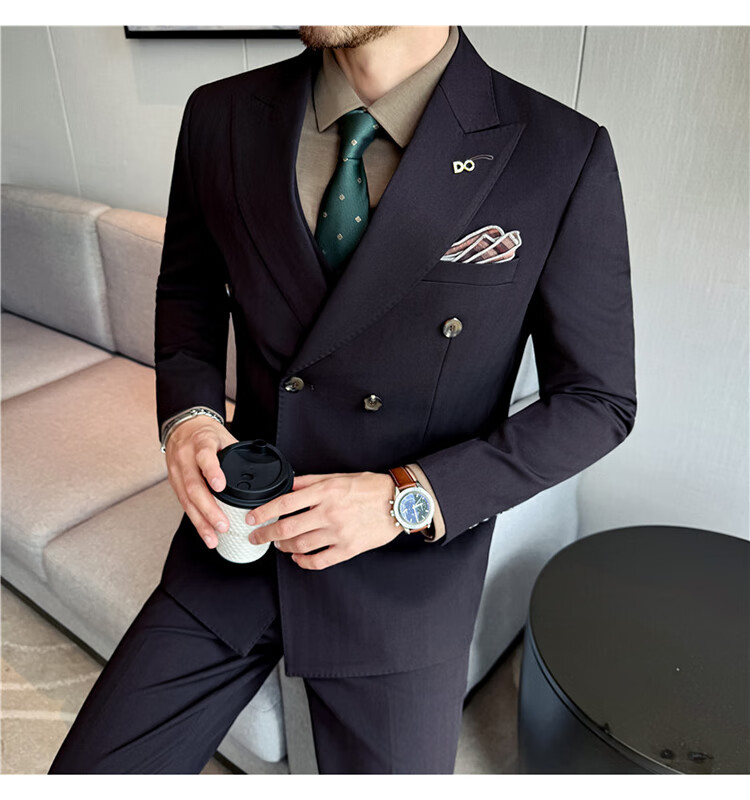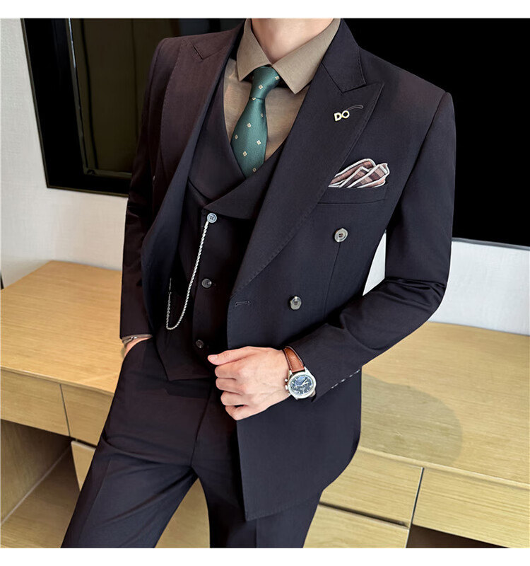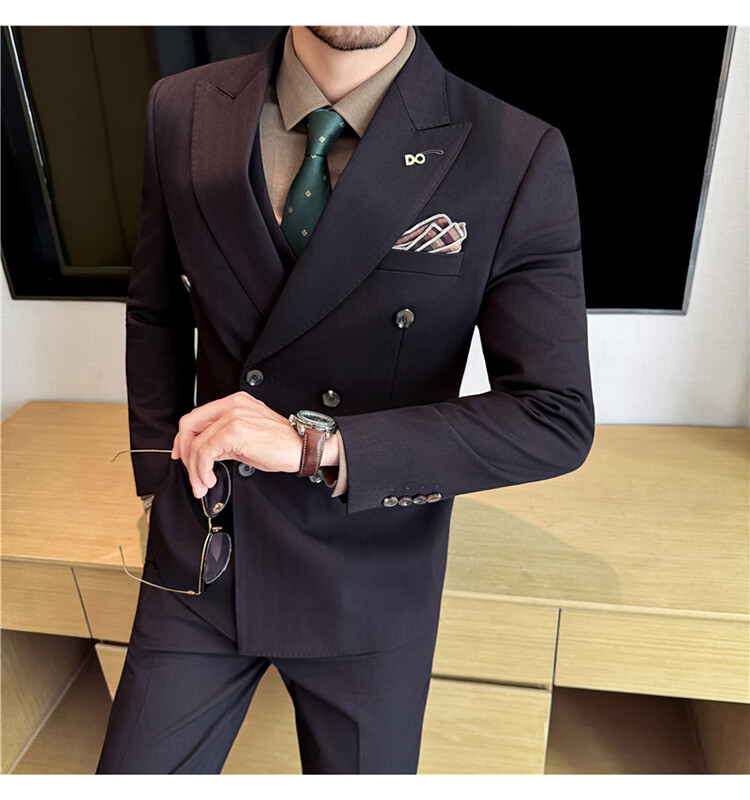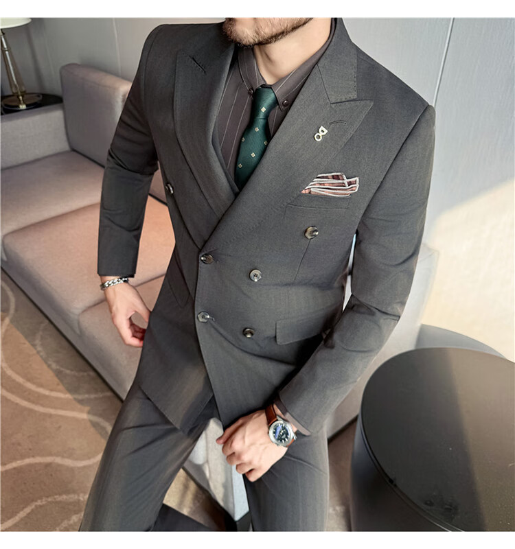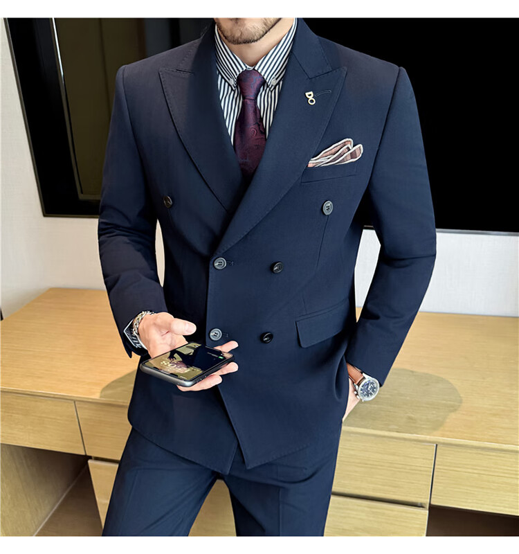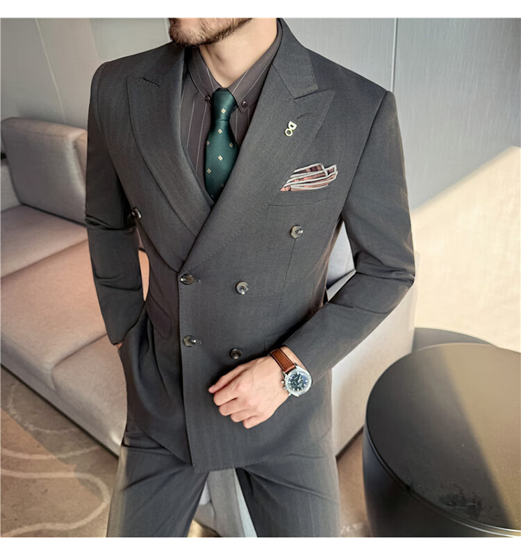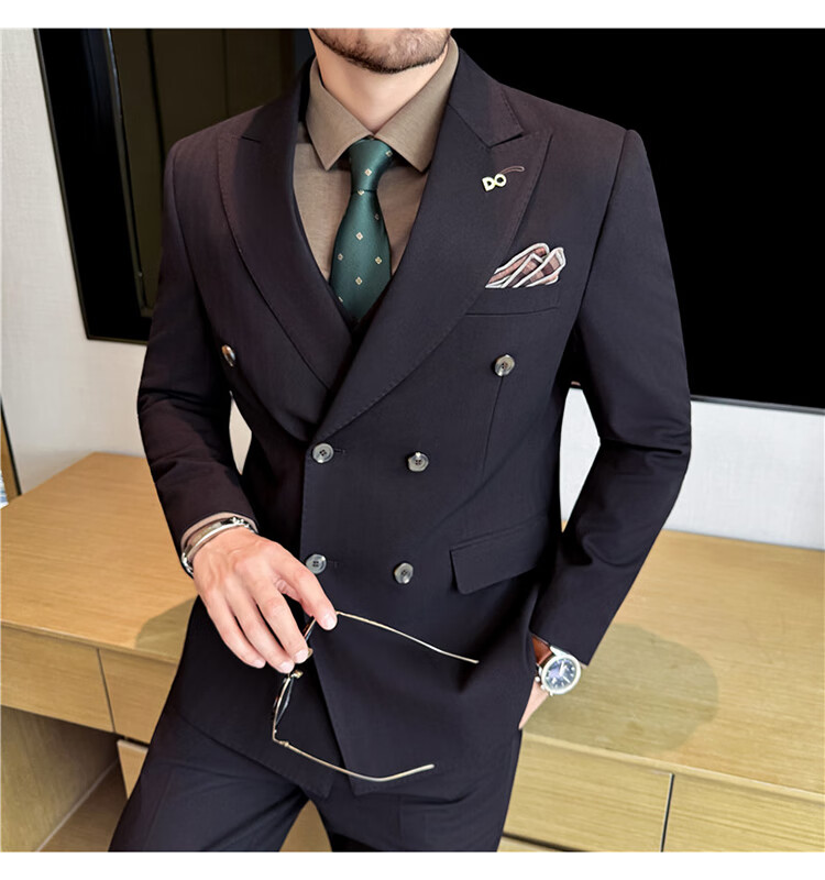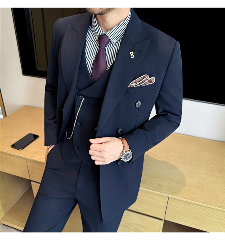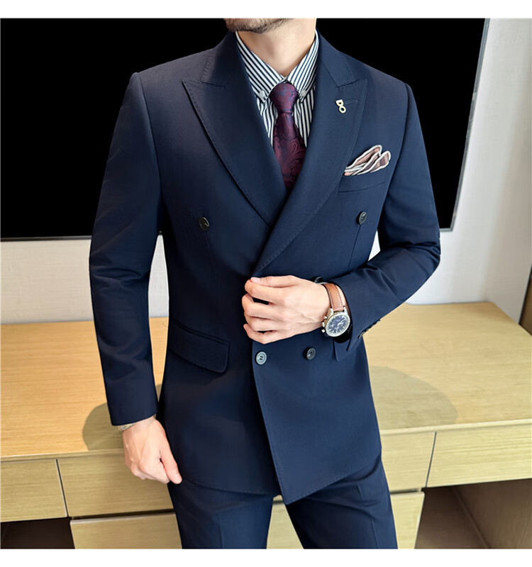 Pierre Cardin beaded lapel collar dark striped double-breasted suit men's suit business formal decoration height quality suit three-piece black (single suit) free tie XL (125-140Jin Jin equals 0.5 kg)