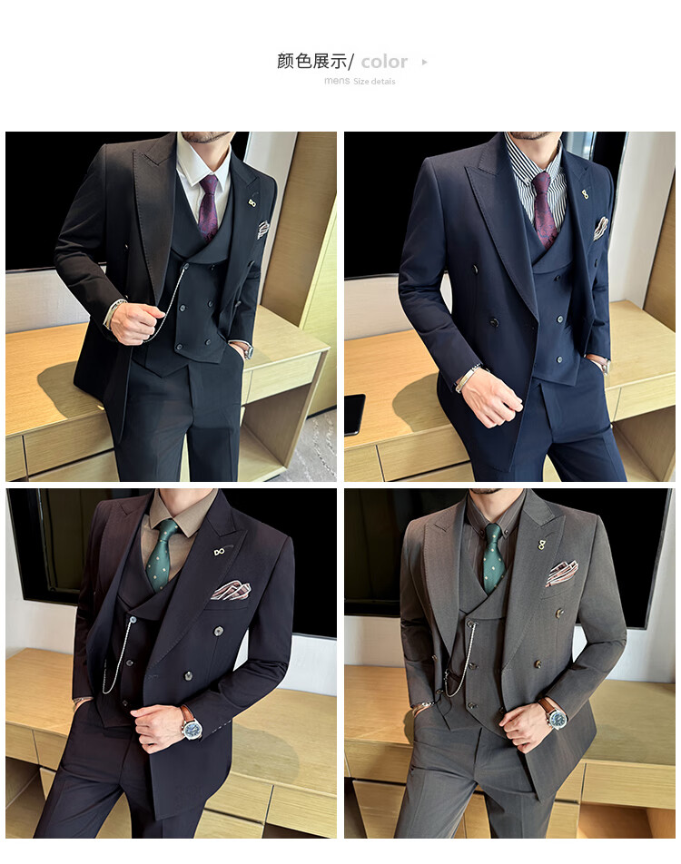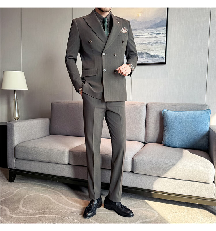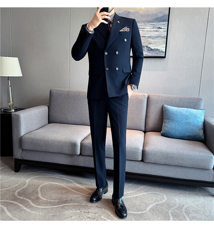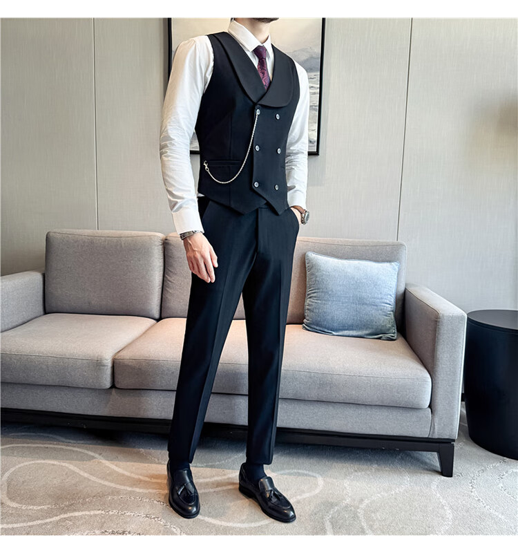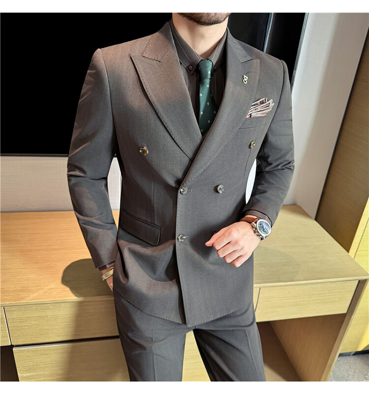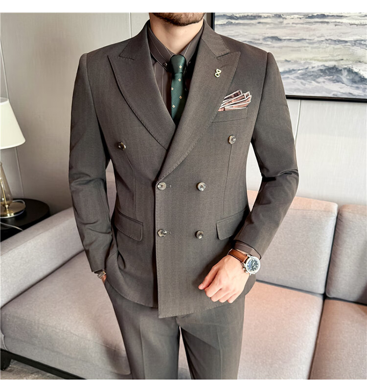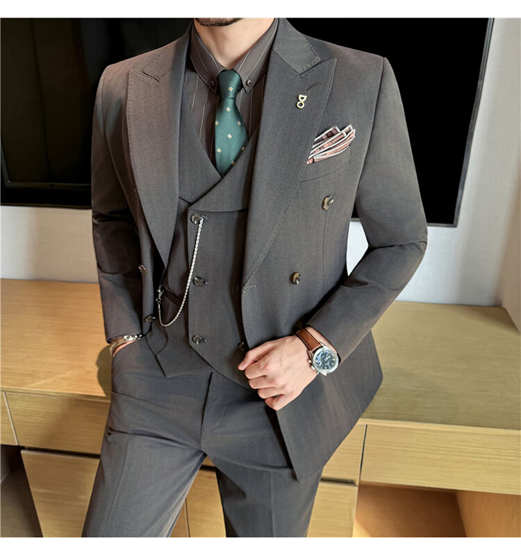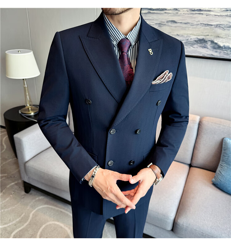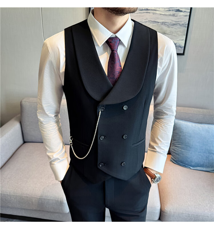 Pierre Cardin beaded lapel collar dark striped double-breasted suit men's suit business formal decoration height quality suit three-piece black (single suit) free tie XL (125-140Jin Jin equals 0.5 kg)