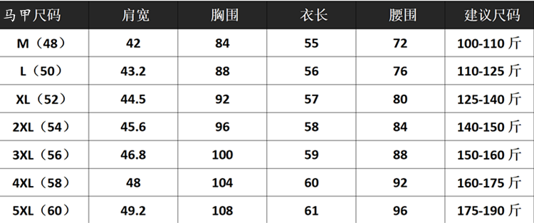 China (cm) 165 / 88-90 170 / 96-98 175 / 108-110 180 / 118-122 185 / 126-130