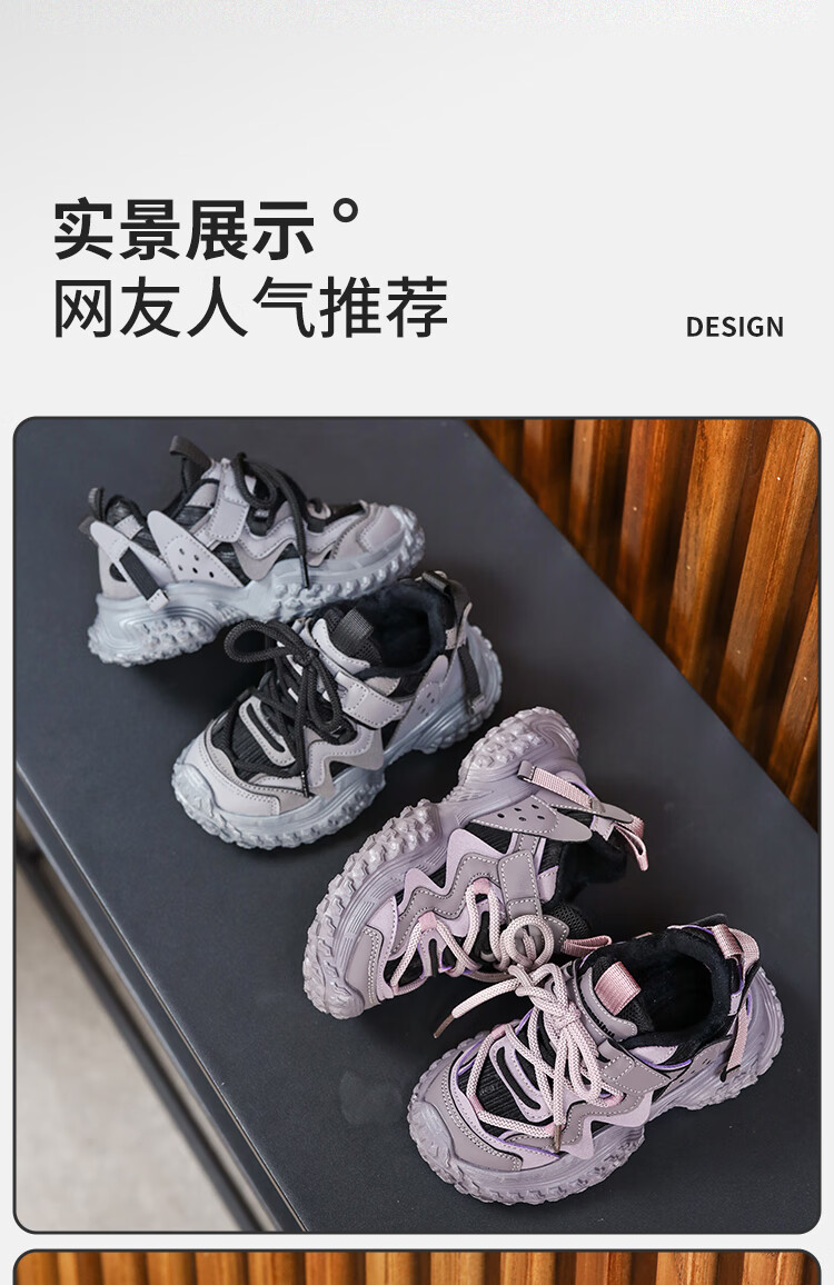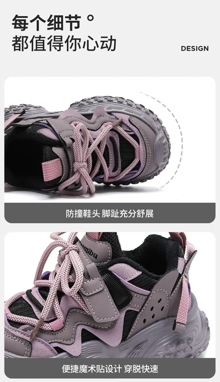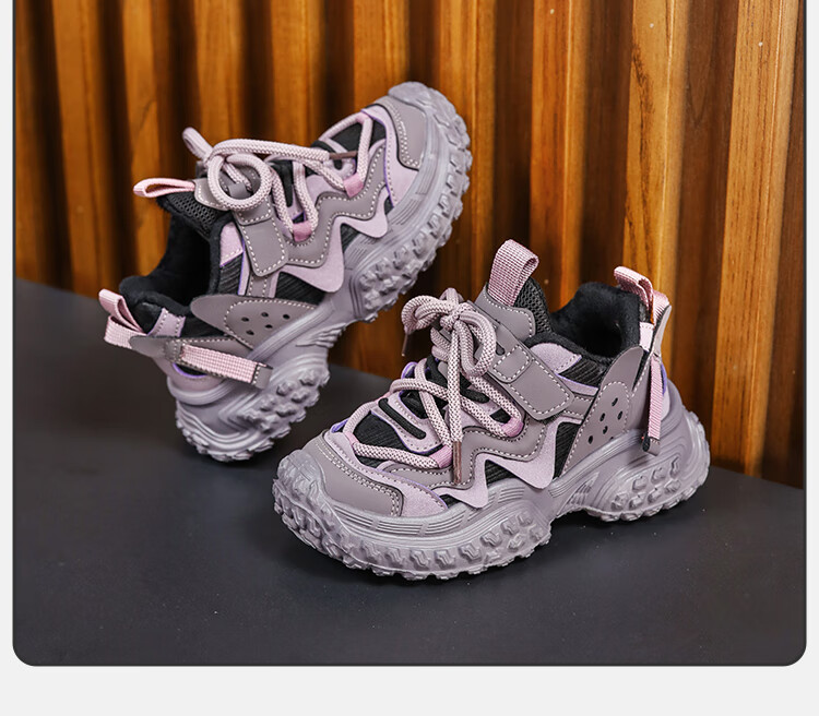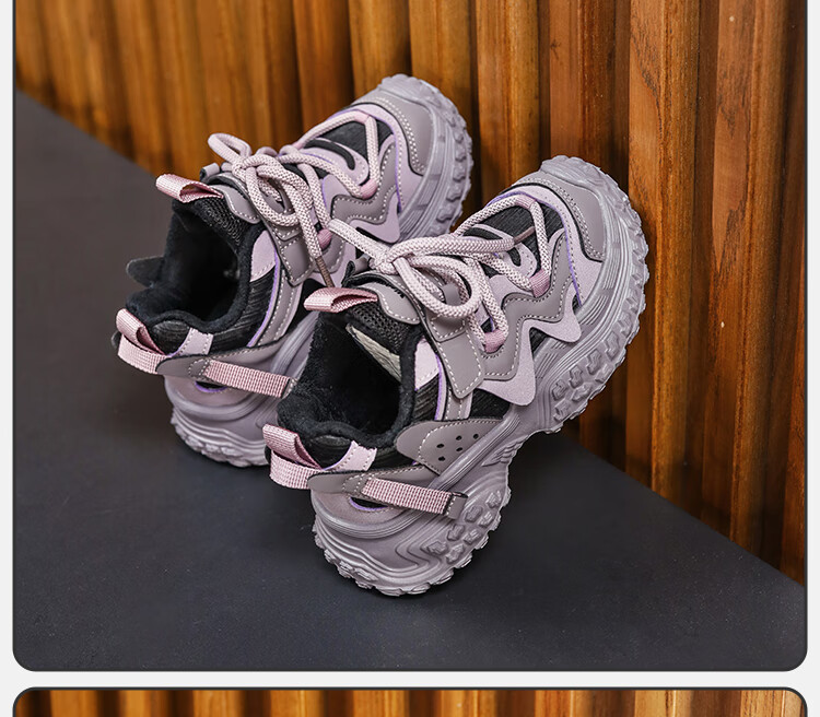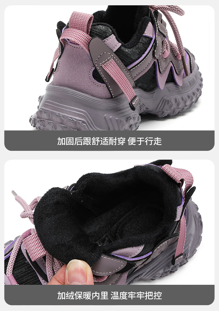 XIAO MI BU Tire Shoes Girls' Shoes 2025 Winter Ermian Fashion New Children's Soft Sole Daddy Shoes Versatile Pink Velvet Size 38