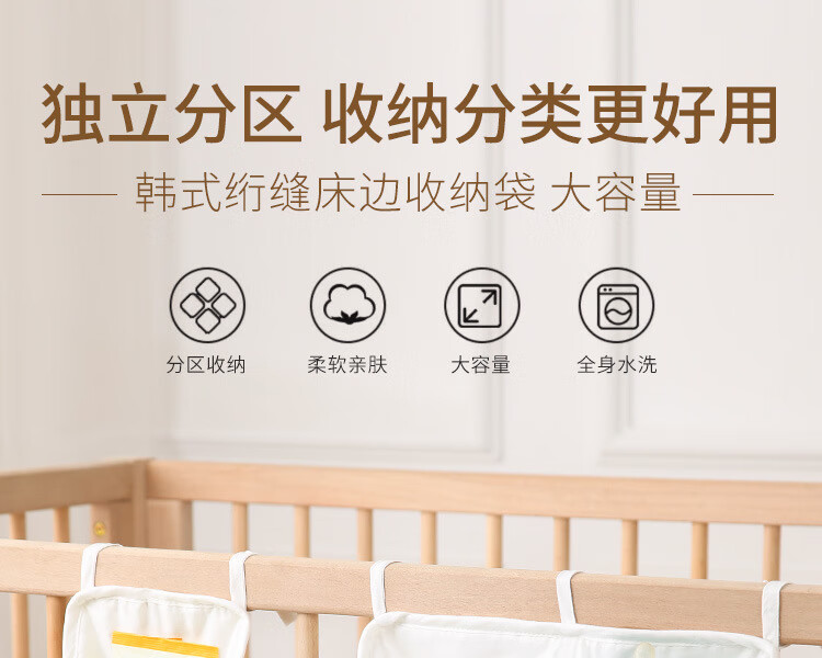 Younawa crib hanging bag storage bag children's bedside bedside baby toy storage bag urine arrangement bag bedside hanging bag one single pocket