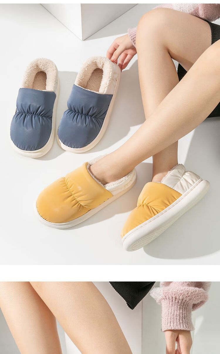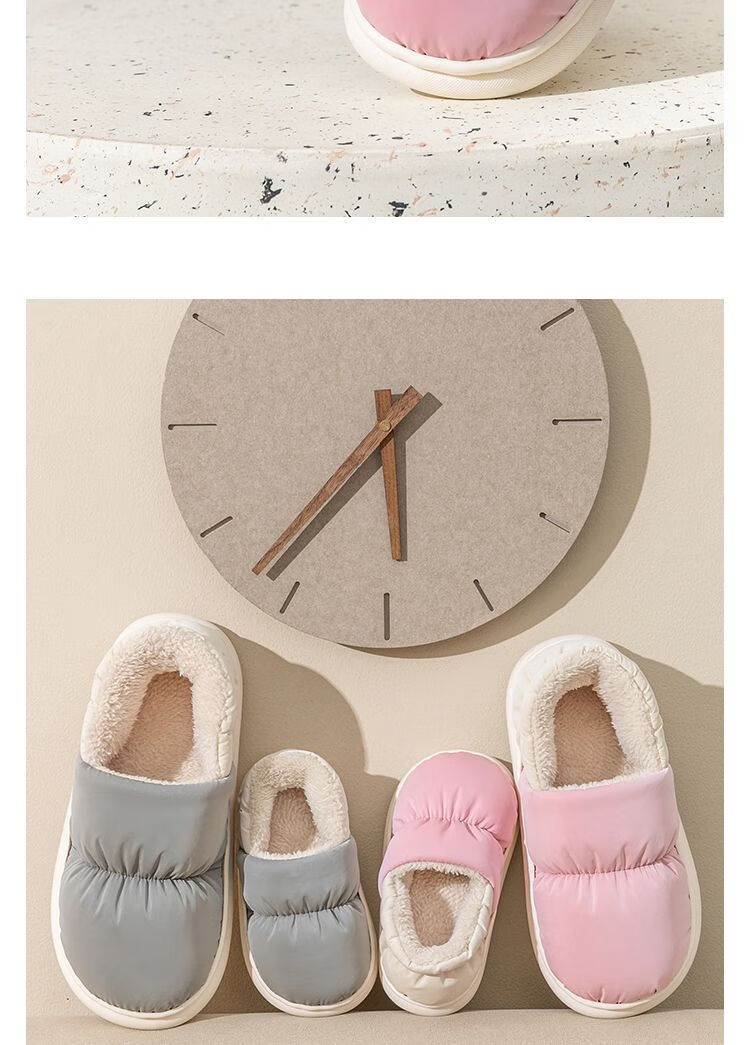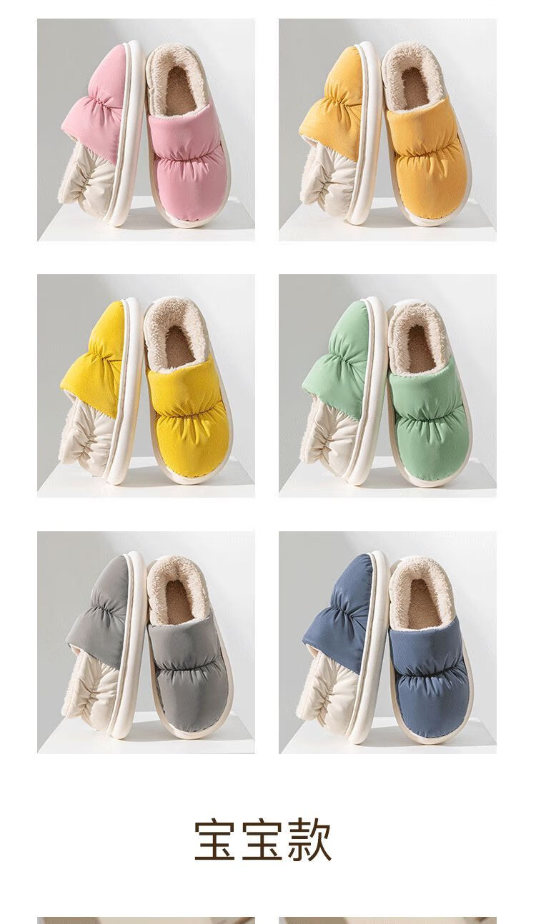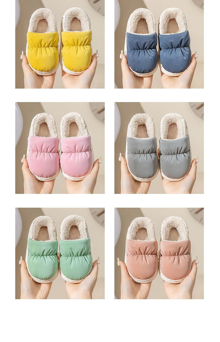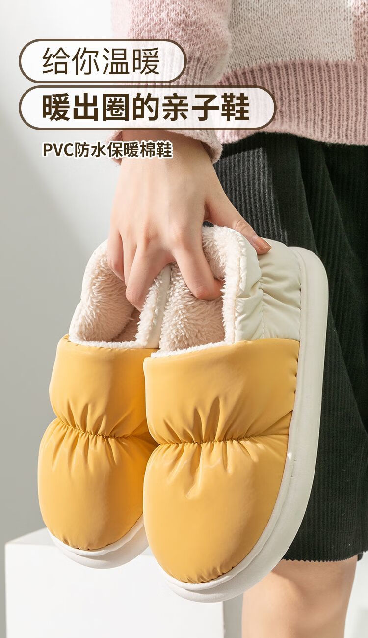Parent-child children's down cloth thermal bag and cotton slippers waterproof winter for girls and children indoor home for boys and girls, Navy blue 34-35, inner length 21CM