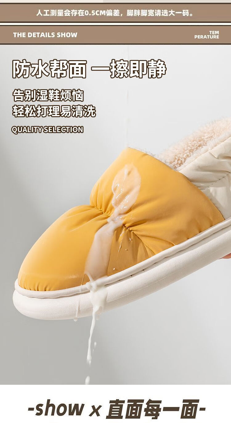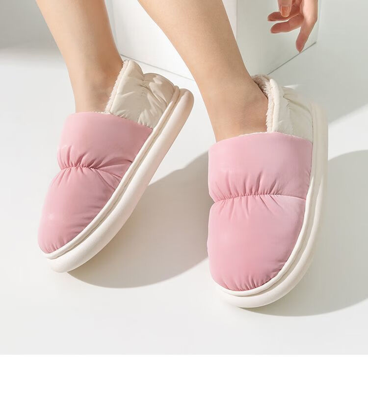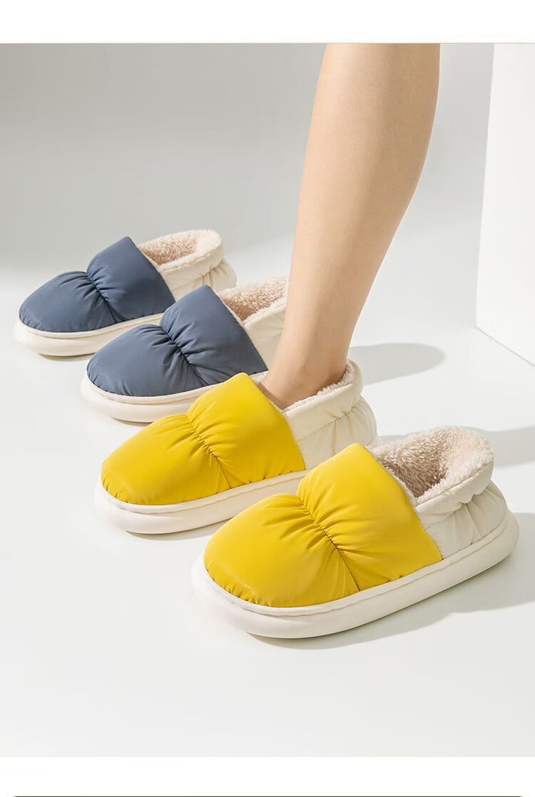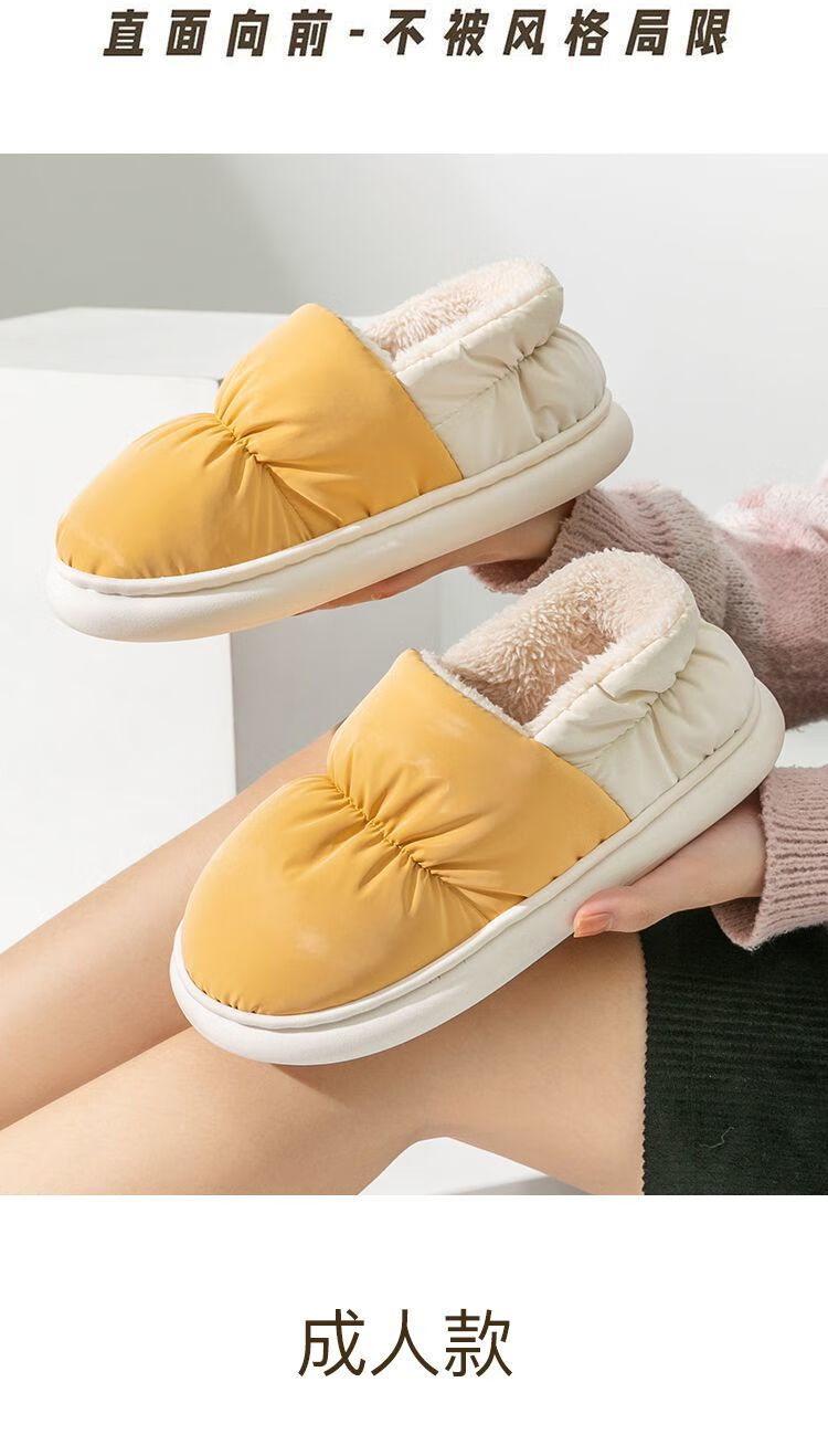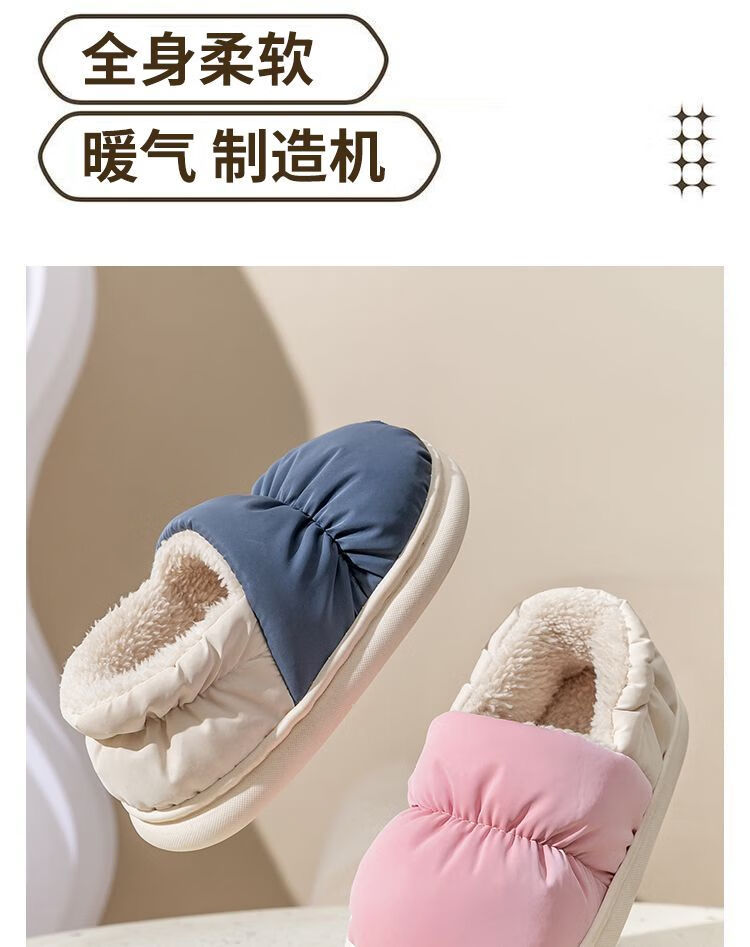 Parent-child children's down cloth thermal bag and cotton slippers waterproof winter for girls and children indoor home for boys and girls, Navy blue 34-35, inner length 21CM