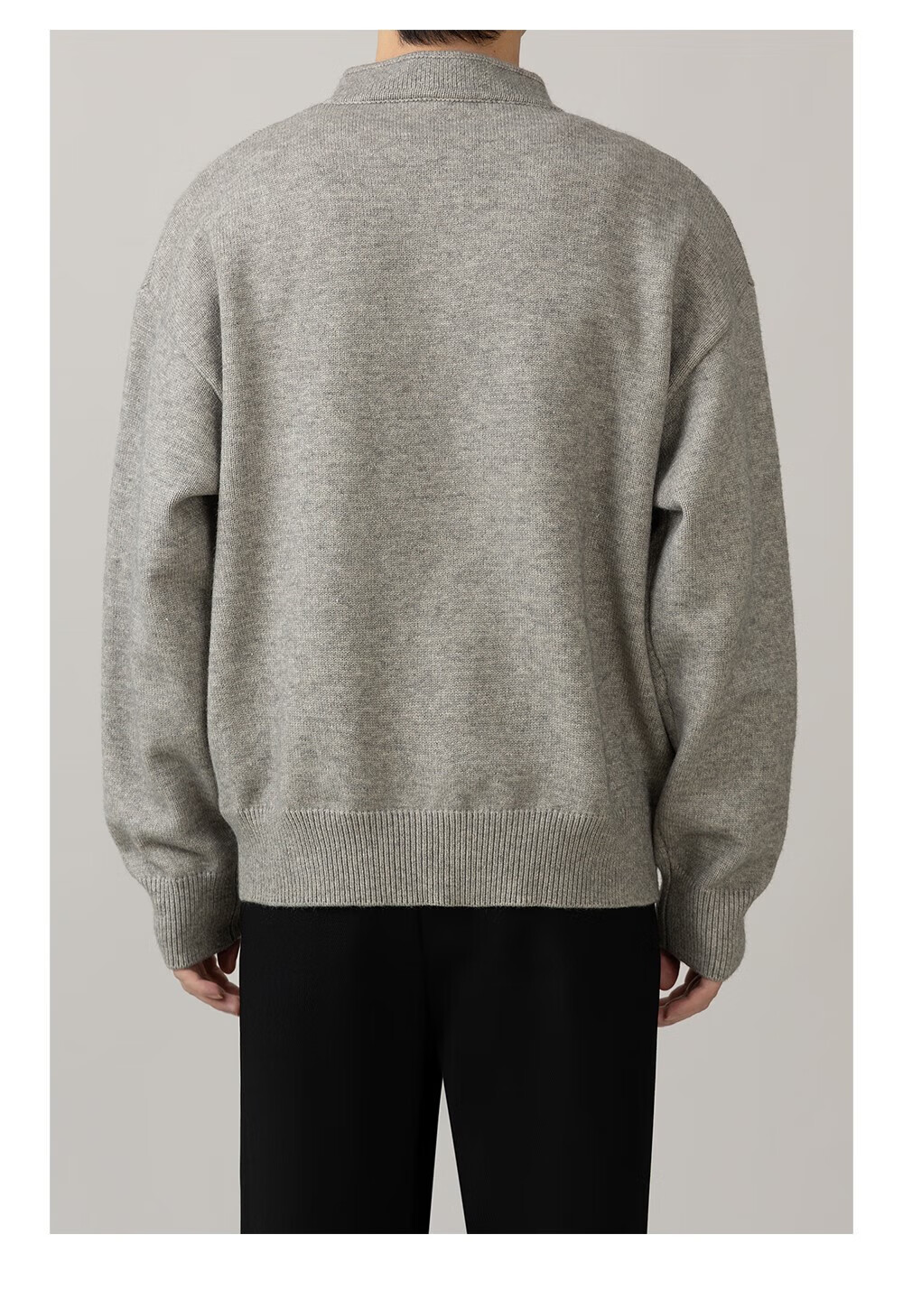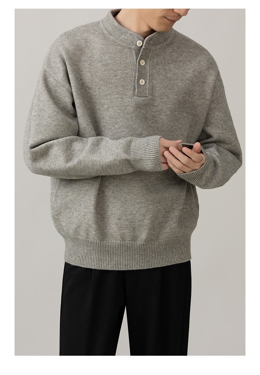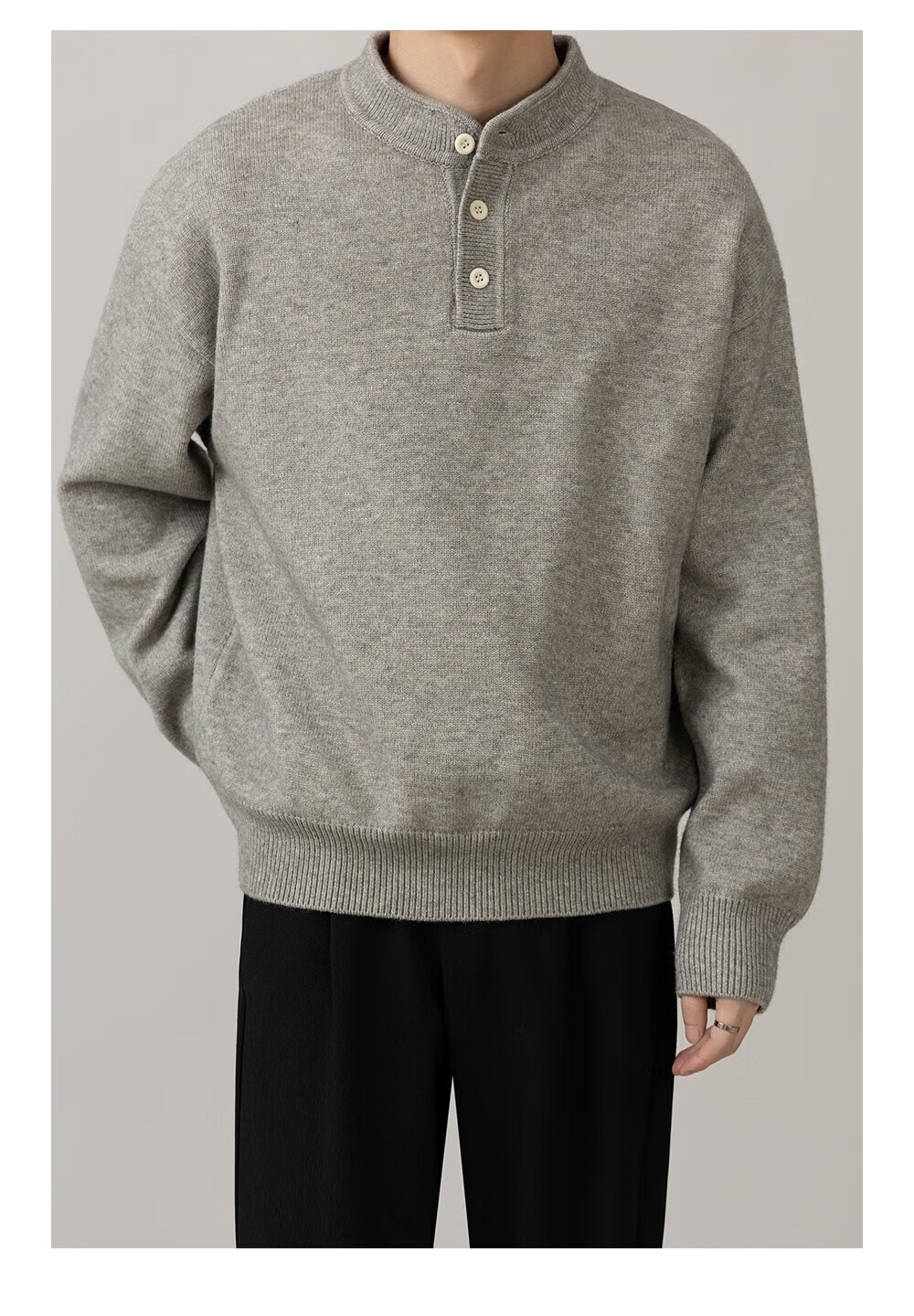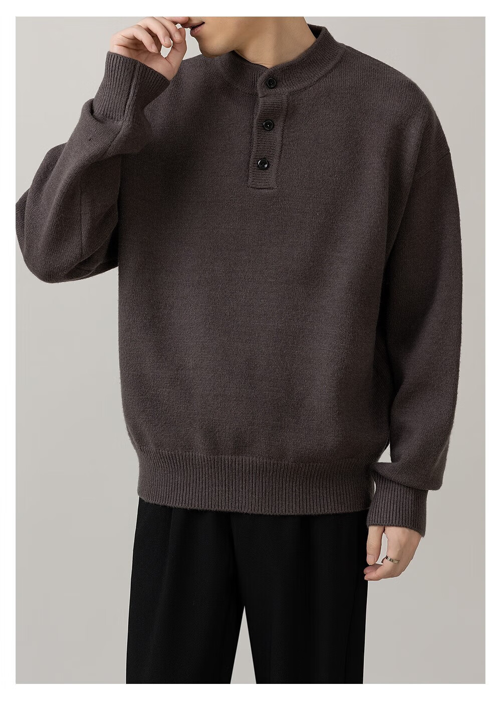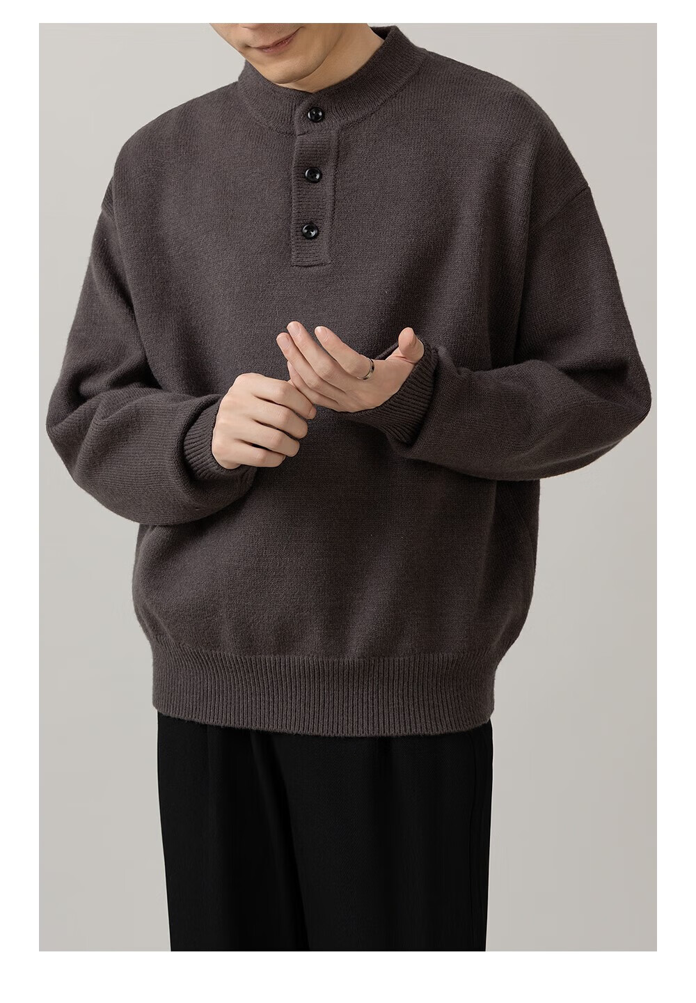 Jiangong Henry collar half-cardigan simple sweater men's casual commuting sweater 2025 autumn and winter new men's pullover inner wear dark gray S