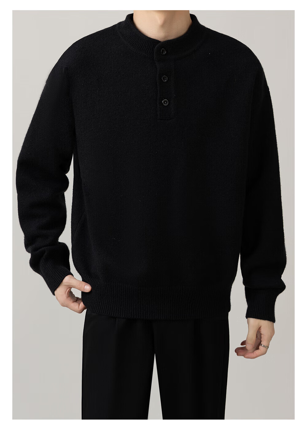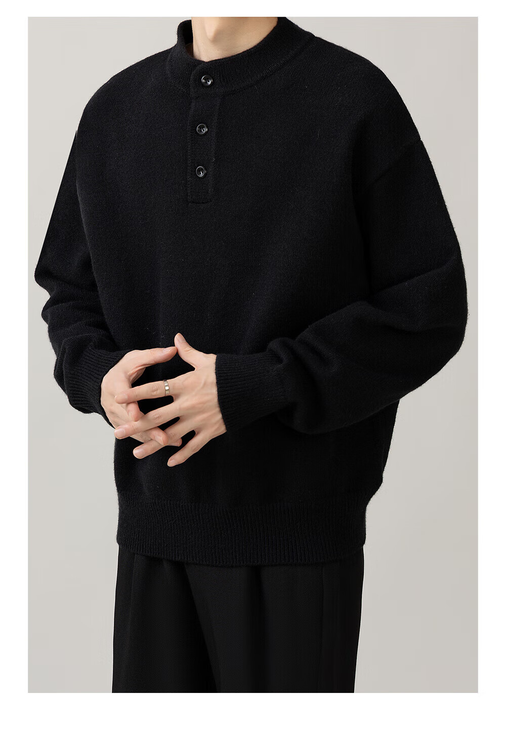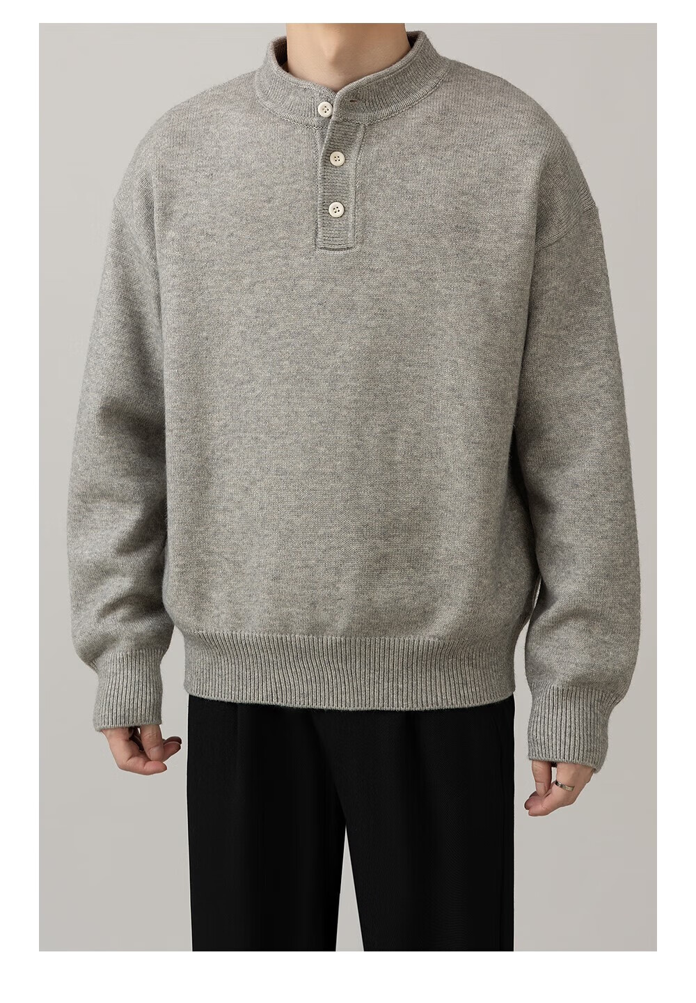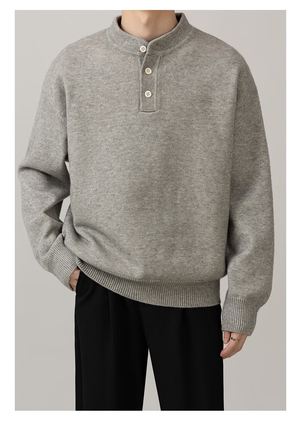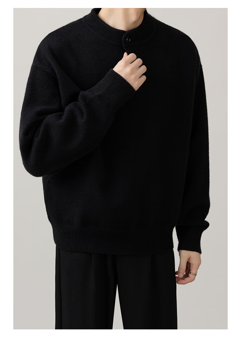 Jiangong Henry collar half-cardigan simple sweater men's casual commuting sweater 2025 autumn and winter new men's pullover inner wear dark gray S
