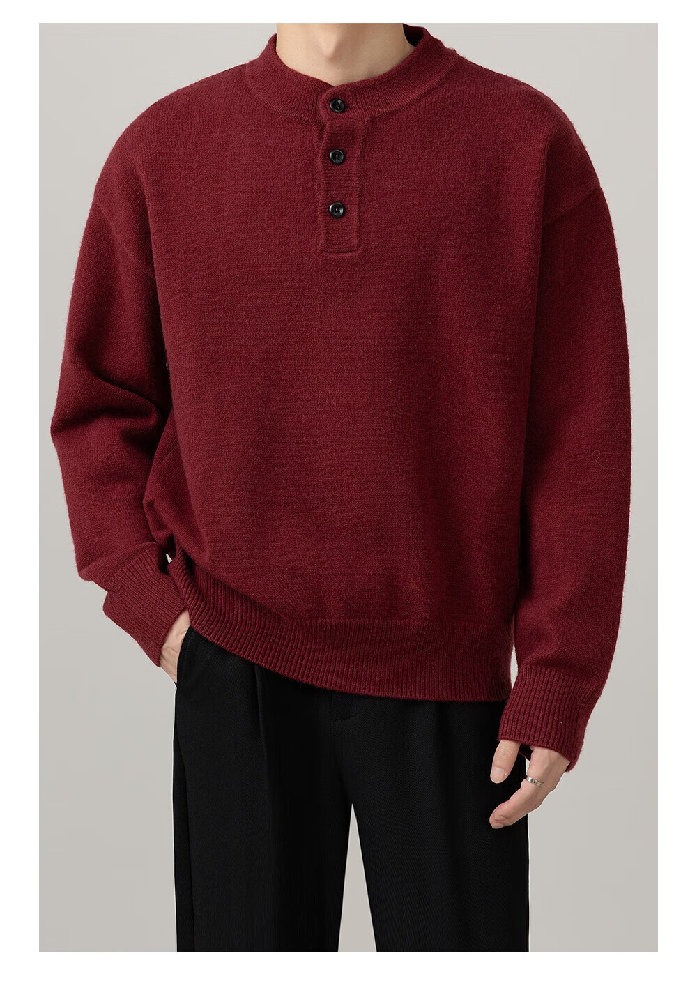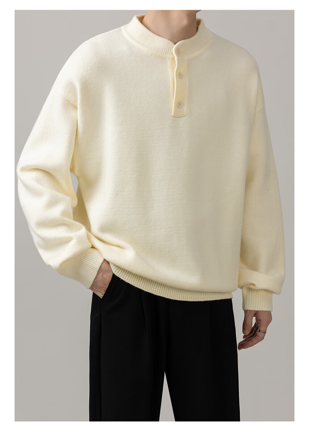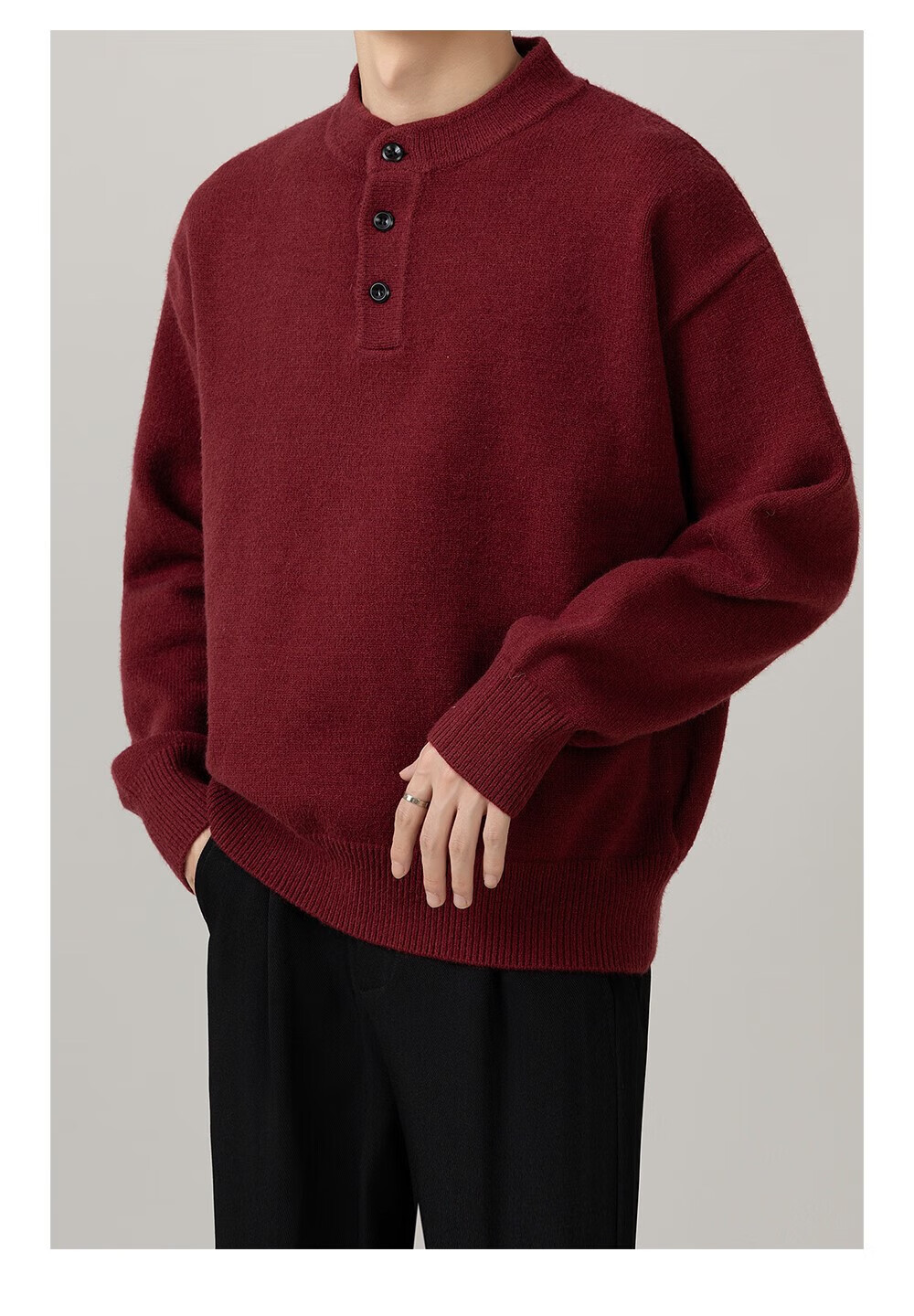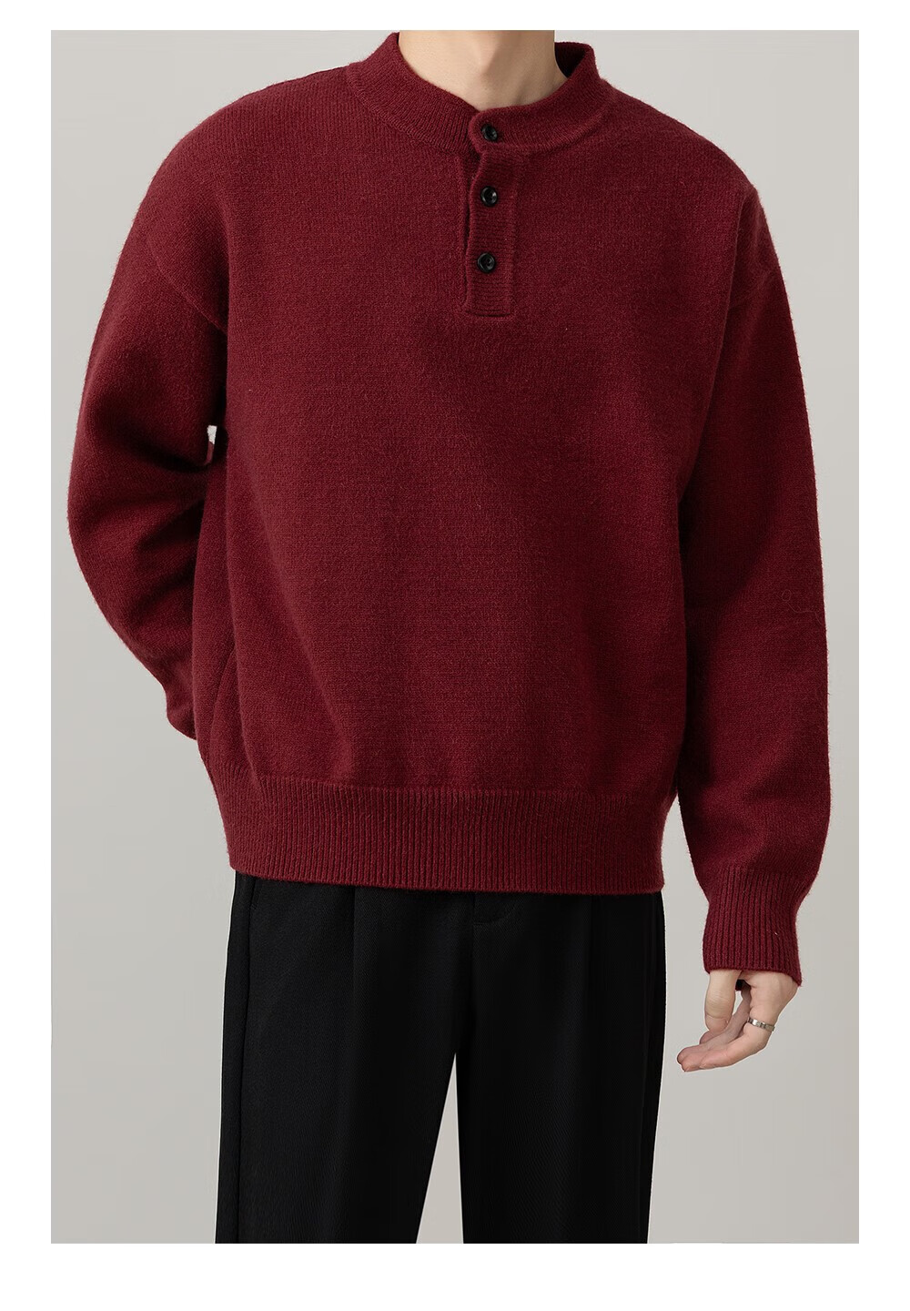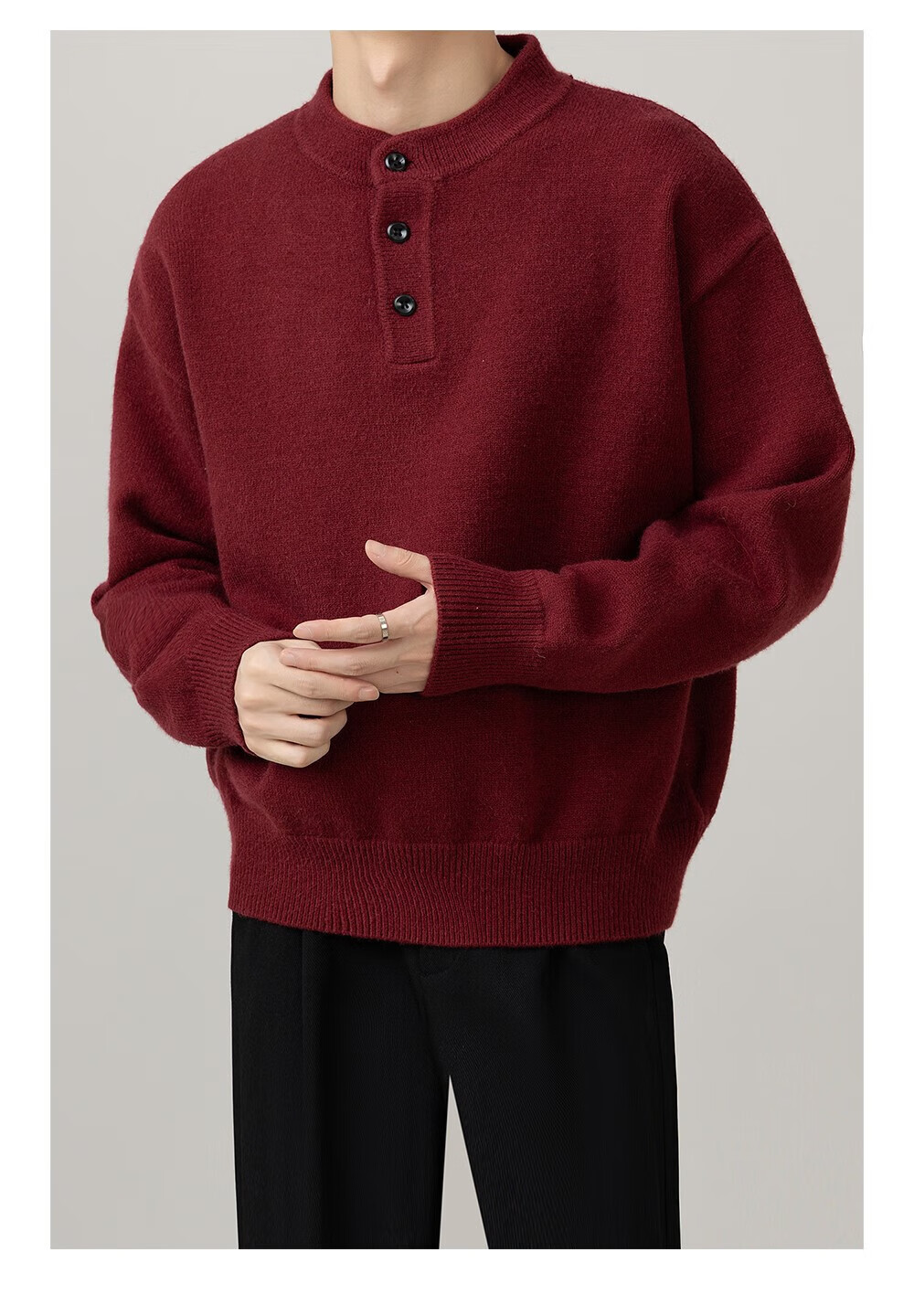 Jiangong Henry collar half-cardigan simple sweater men's casual commuting sweater 2025 autumn and winter new men's pullover inner wear dark gray S