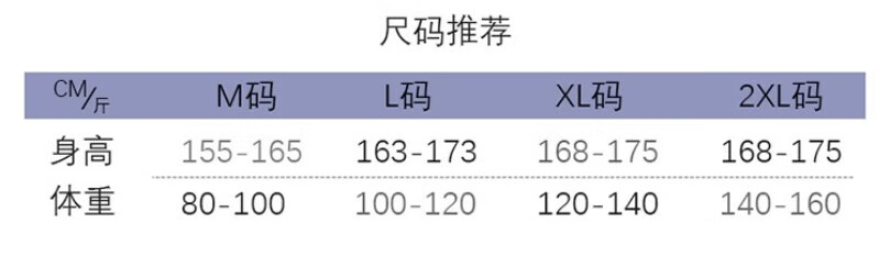 China (cm) 160-165/84-86 165-170 / 88-90 167-172 / 92-96 168-173 / 98-102 170-176 / 106-110