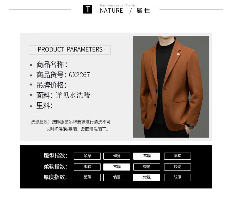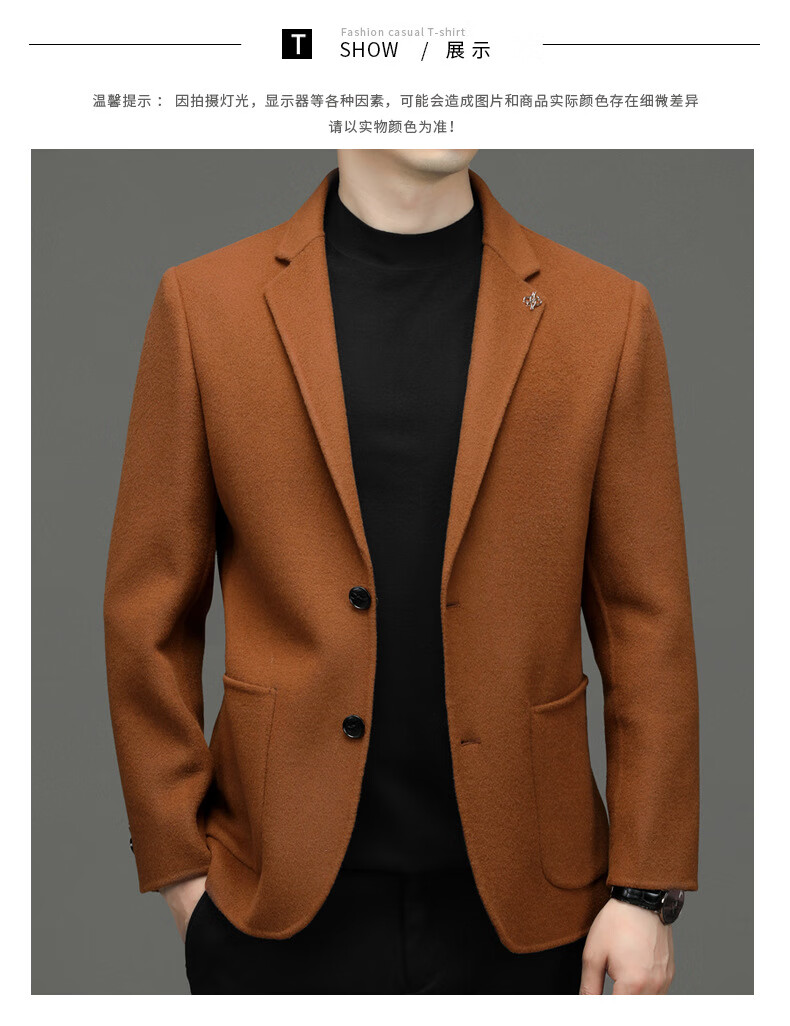 EMZ Ordos Wool Suit Autumn and Winter New Men's Korean Slim All-match Suit Casual Wool Trendy Jacket Orange XL 180