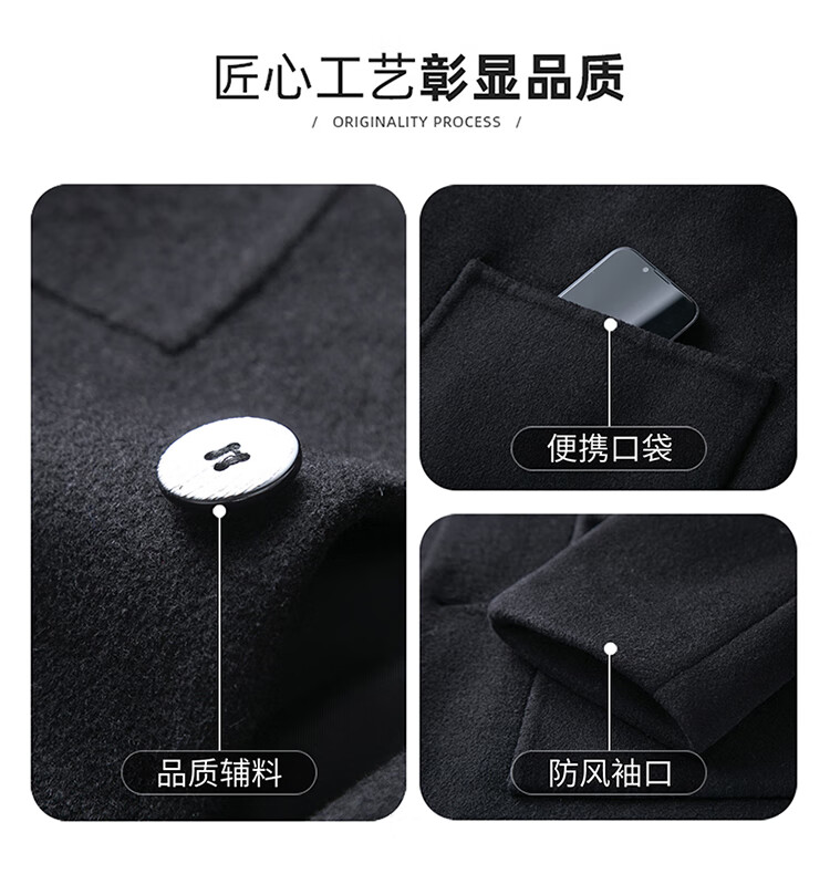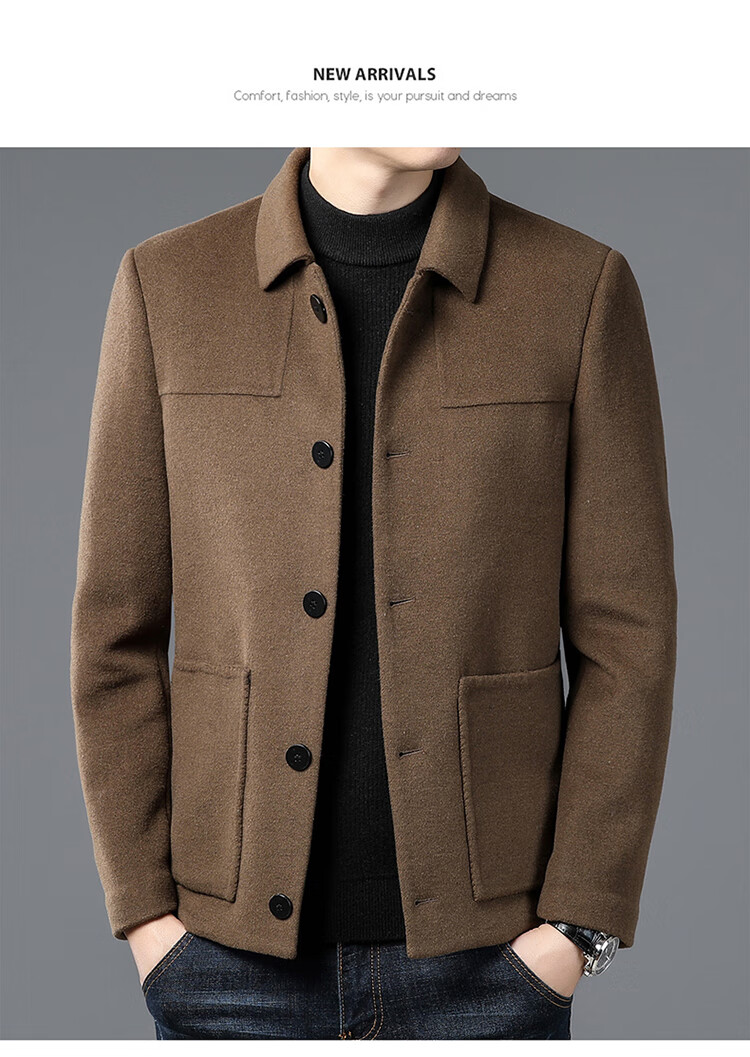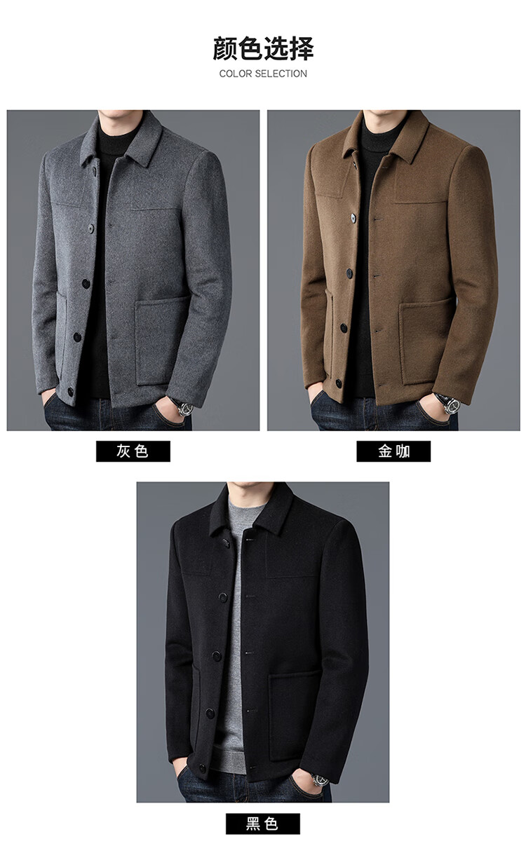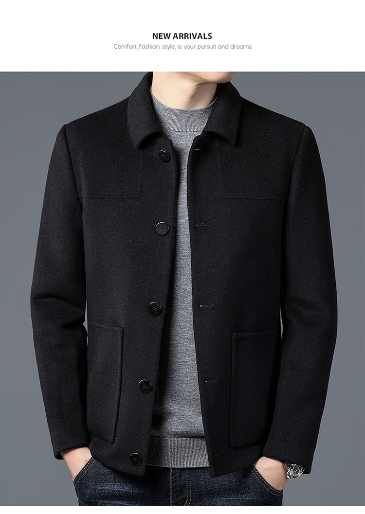 AX Armani 2025 Double-sided Cashmere Coat Men's Middle-aged Autumn and Winter Short Lapel Jacket Wool Wool Casual Jacket L92188 Black XL 180 (Suitable for weight 130-150Jin Jin equals 0.5 kg)