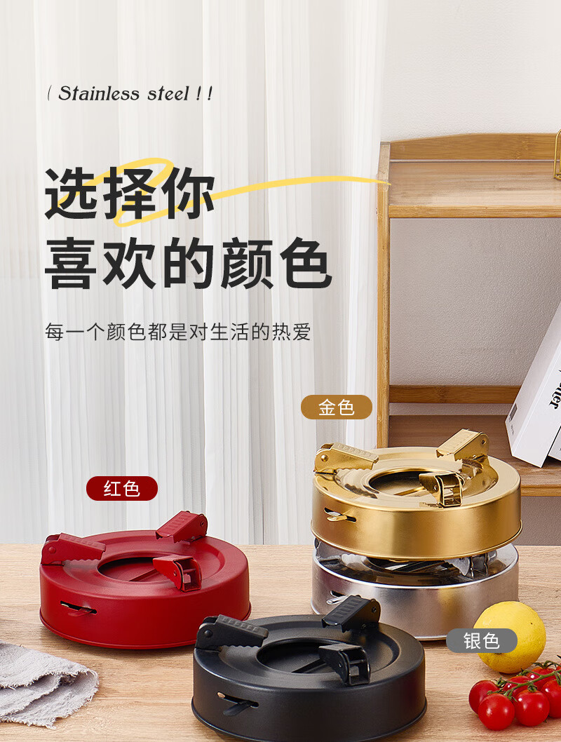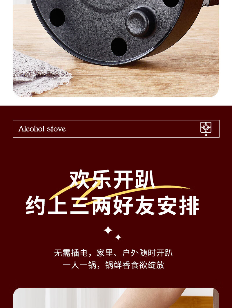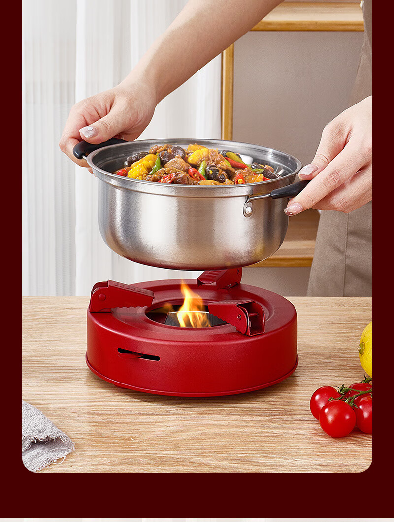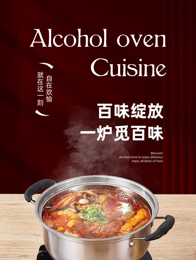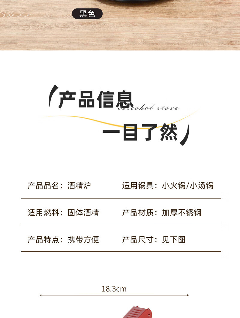 Stainless steel alcohol stove small hot pot household small pot thickened flat bottom household outdoor portable dry pot pot black 18.3cm