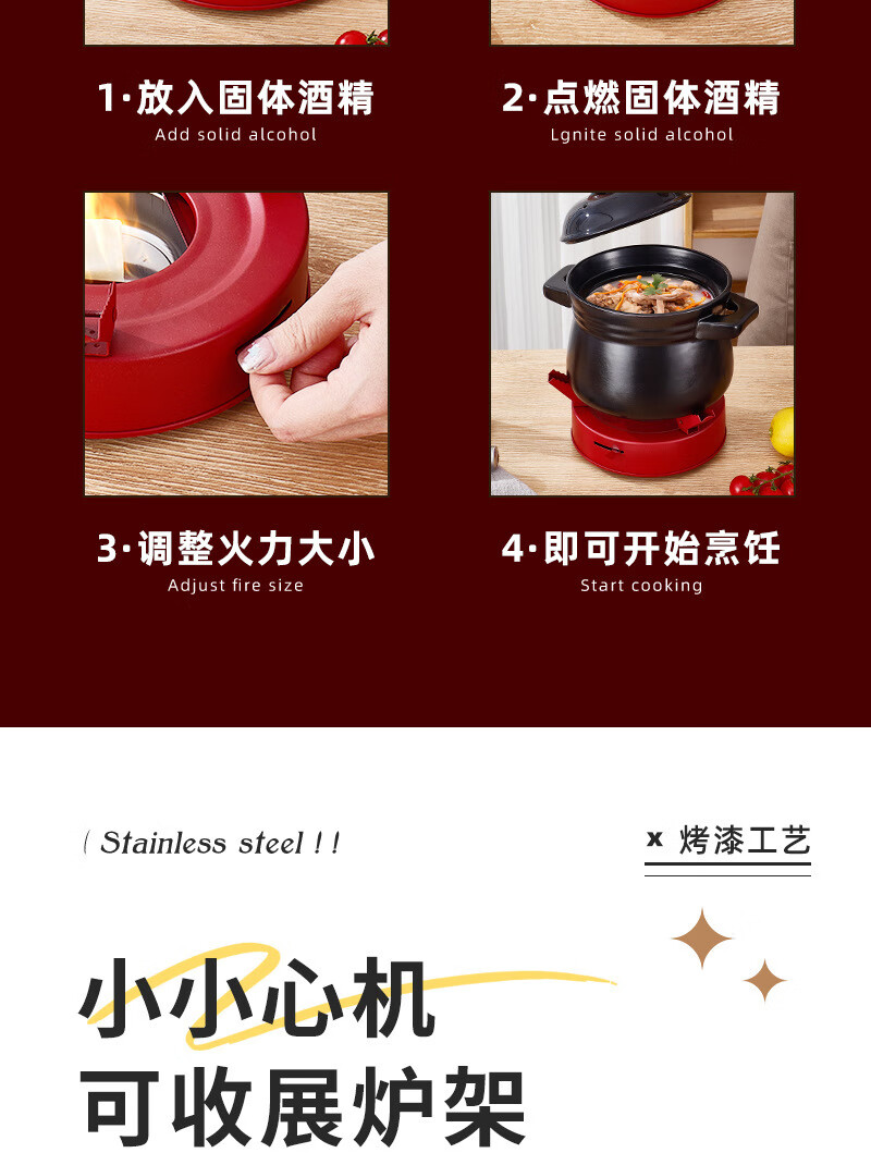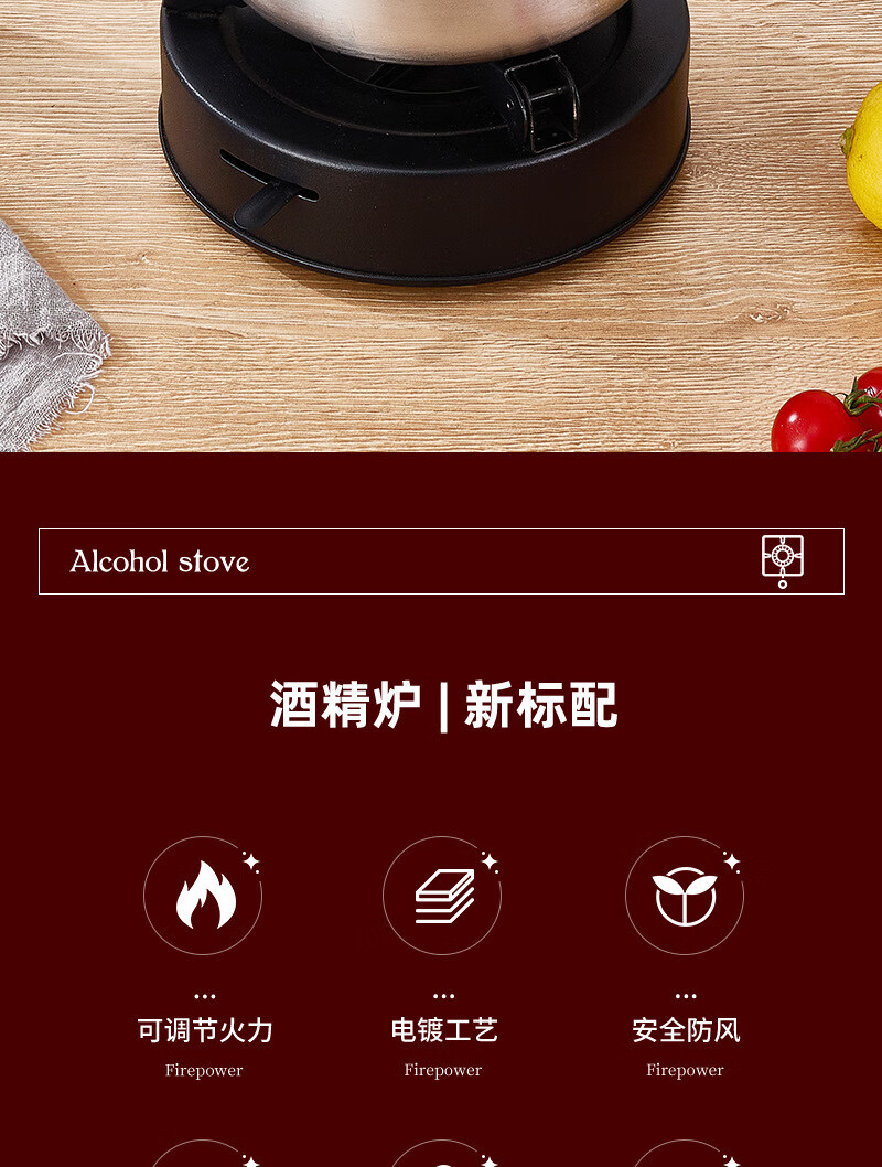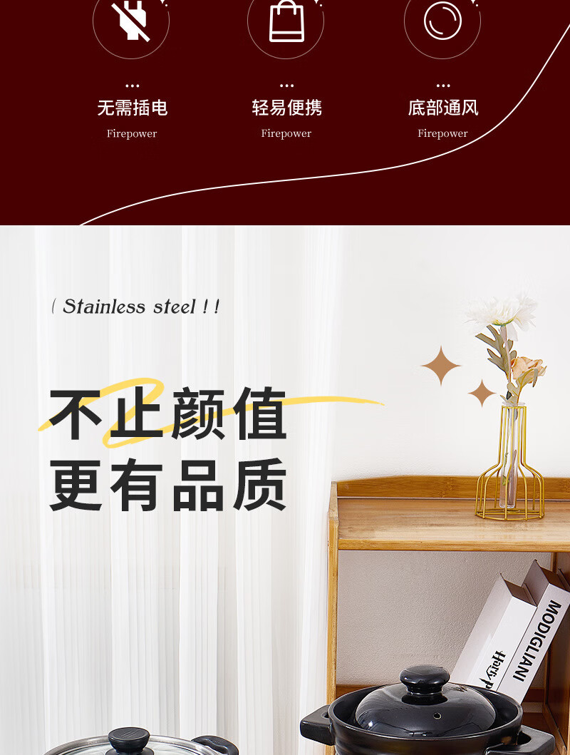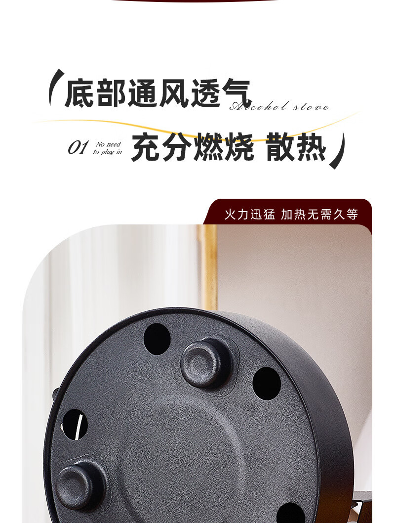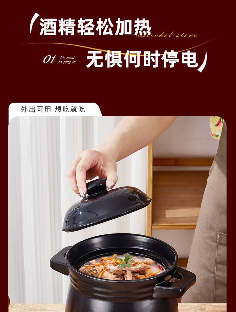 Stainless steel alcohol stove small hot pot household small pot thickened flat bottom household outdoor portable dry pot pot black 18.3cm