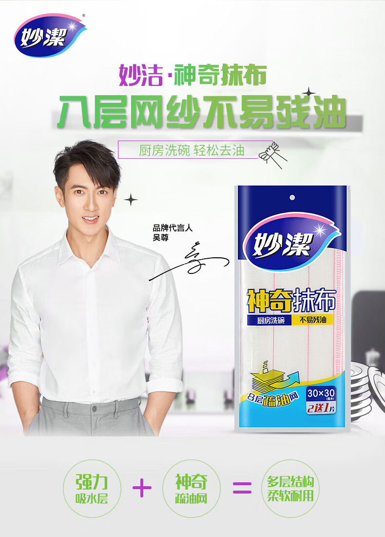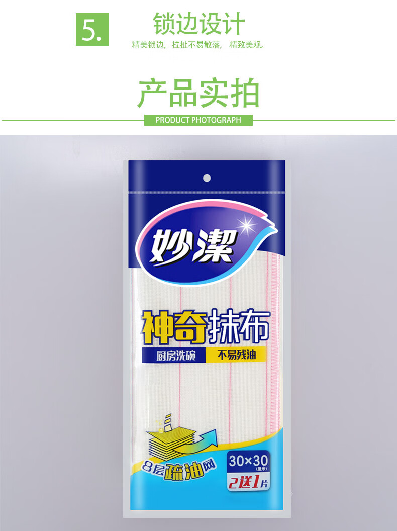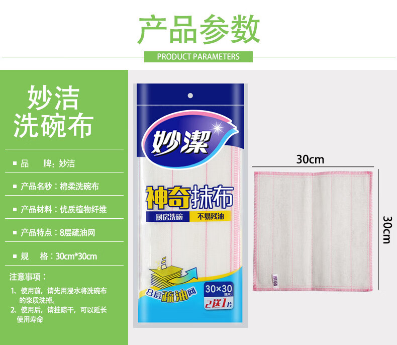 Miaojie dishwashing cloth, multifunctional oil-removing rag, household kitchen absorbent cleaning cloth, decontamination and dust removal housework scouring pad, wood pulp cotton scouring pad, 1 pack*5 pieces