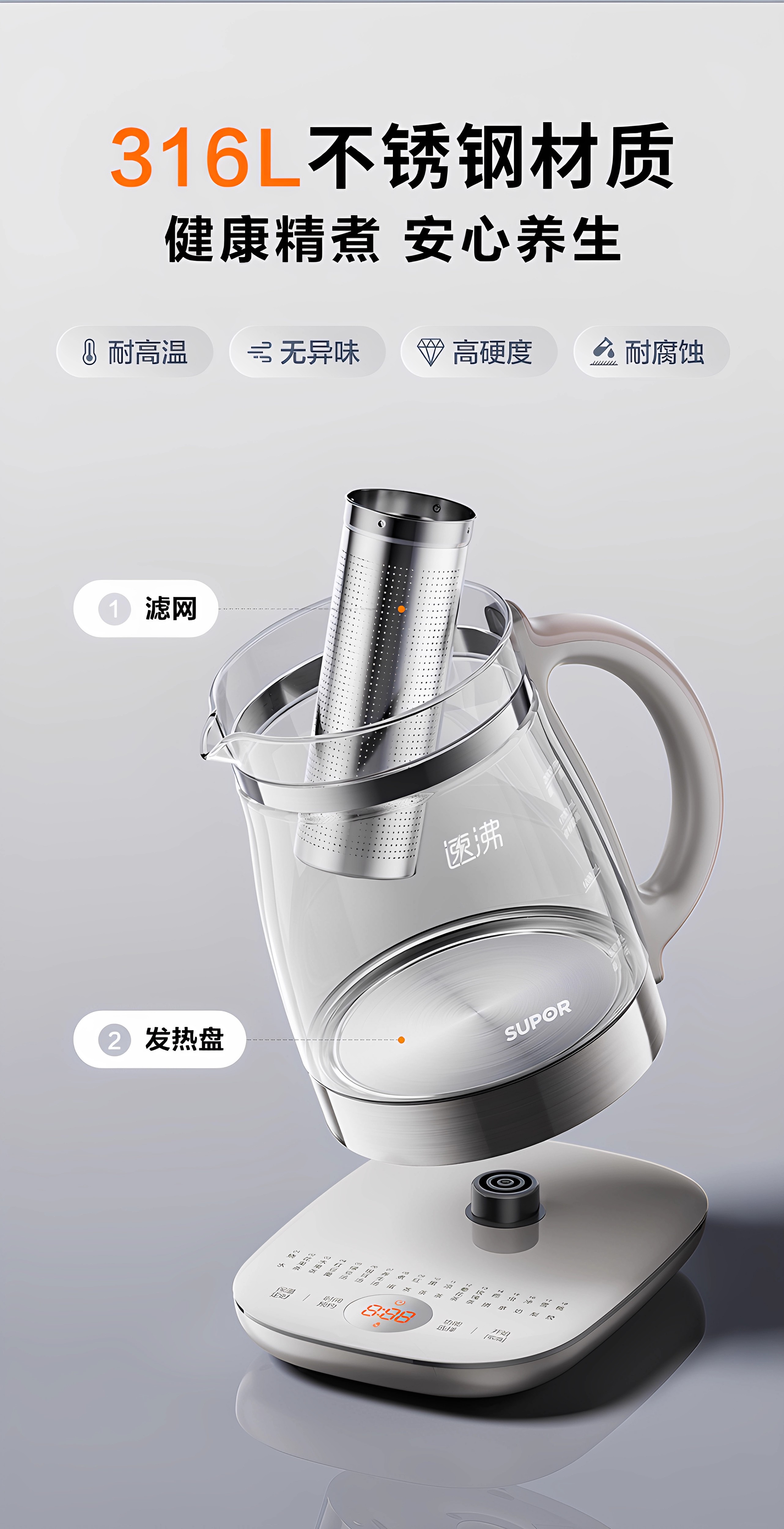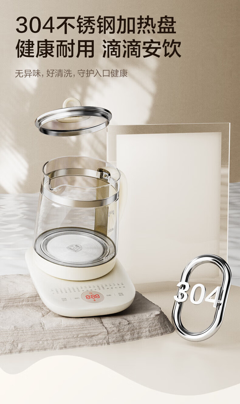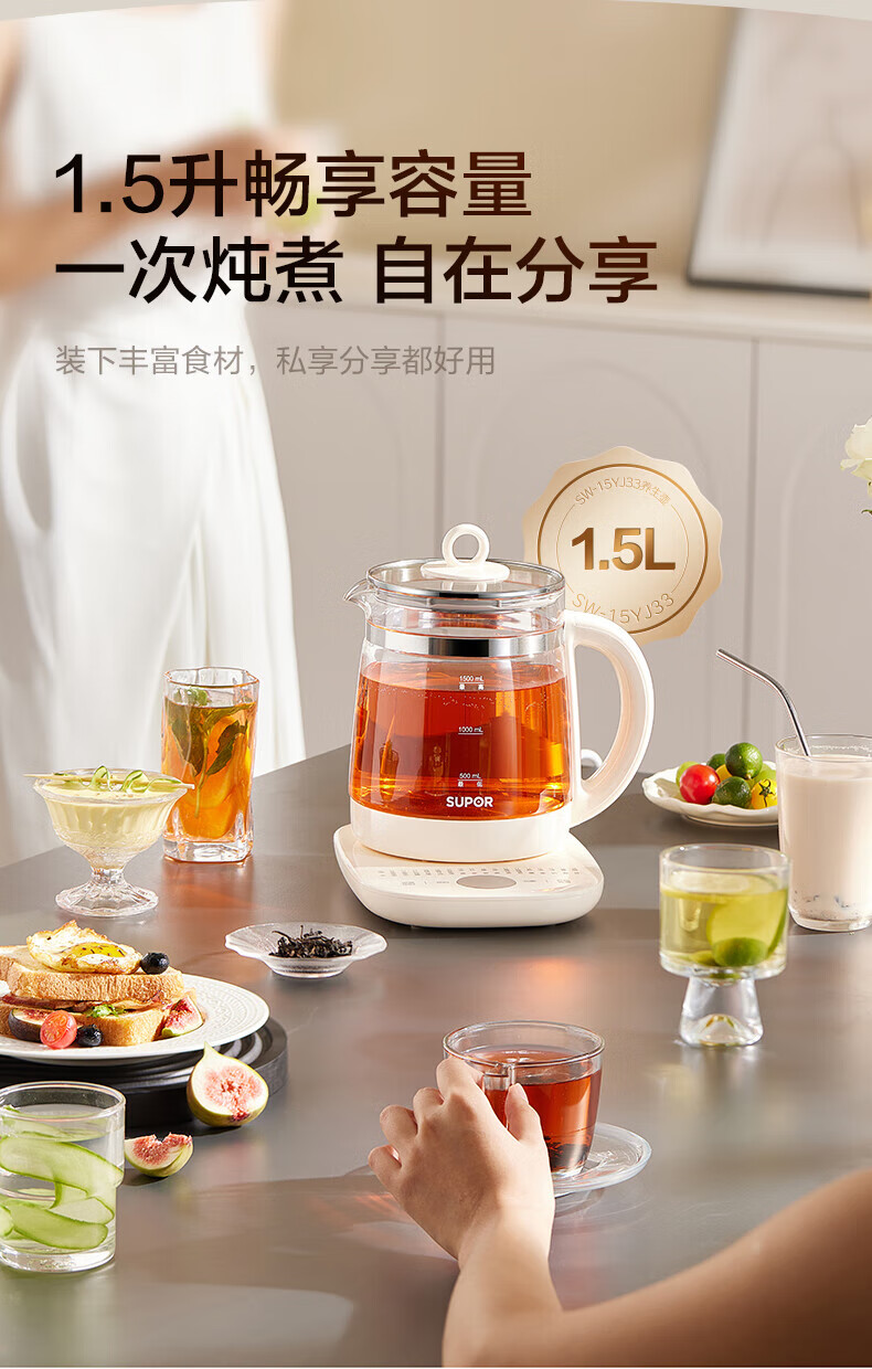 SUPOR health pot multifunctional health pot flower teapot kettle electric kettle tea maker 304 stainless steel SW-15YJ33-B health pot 1.5L