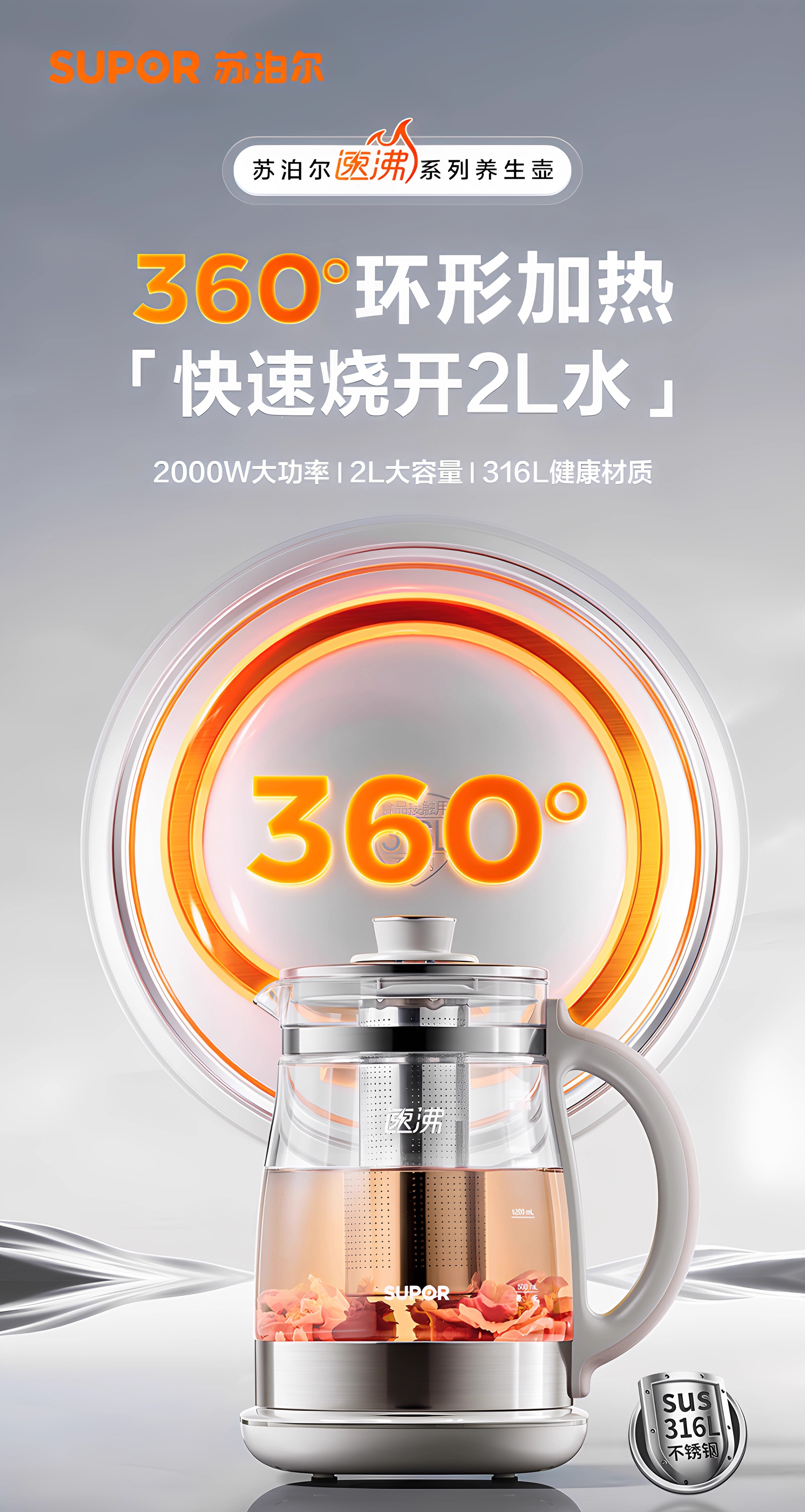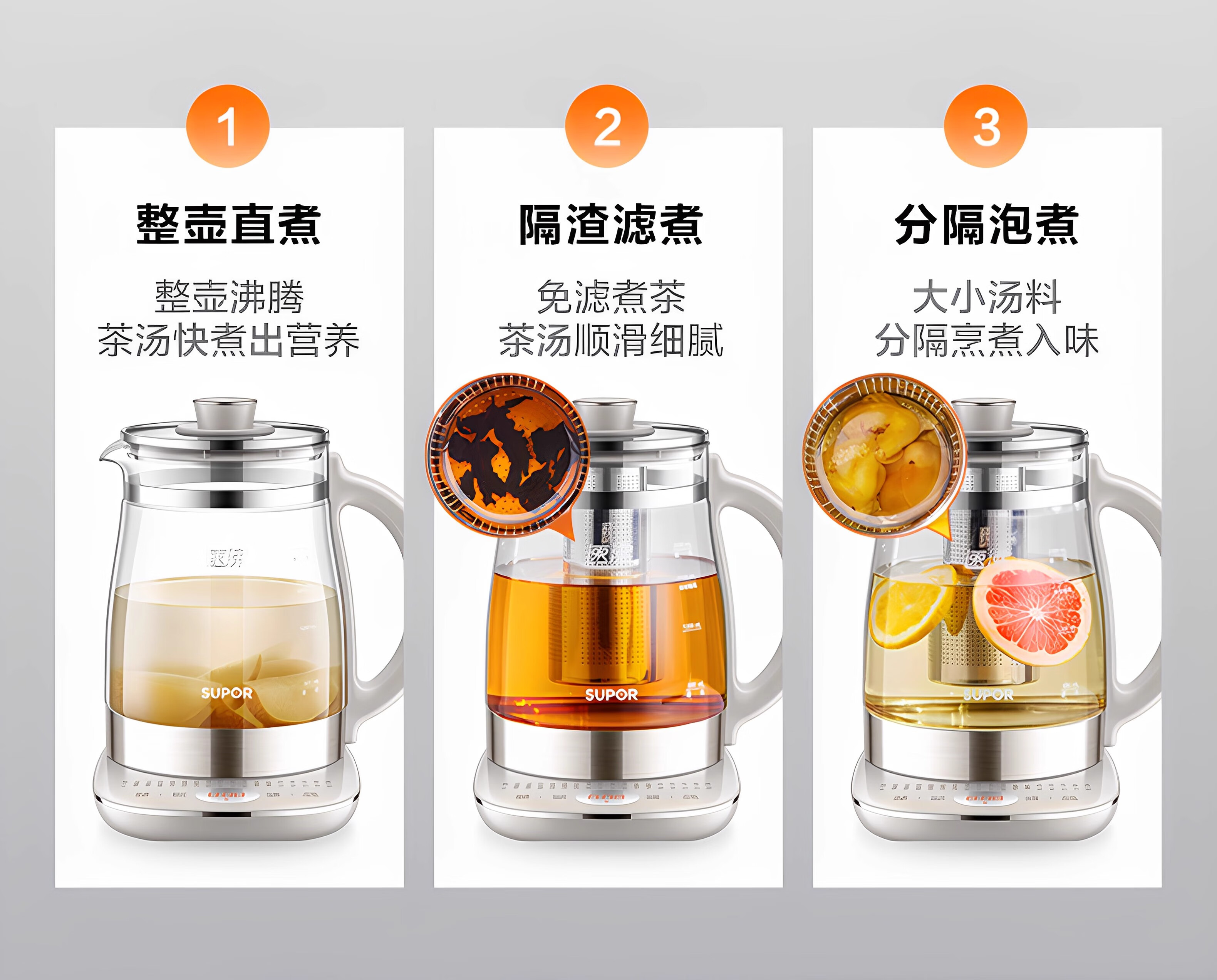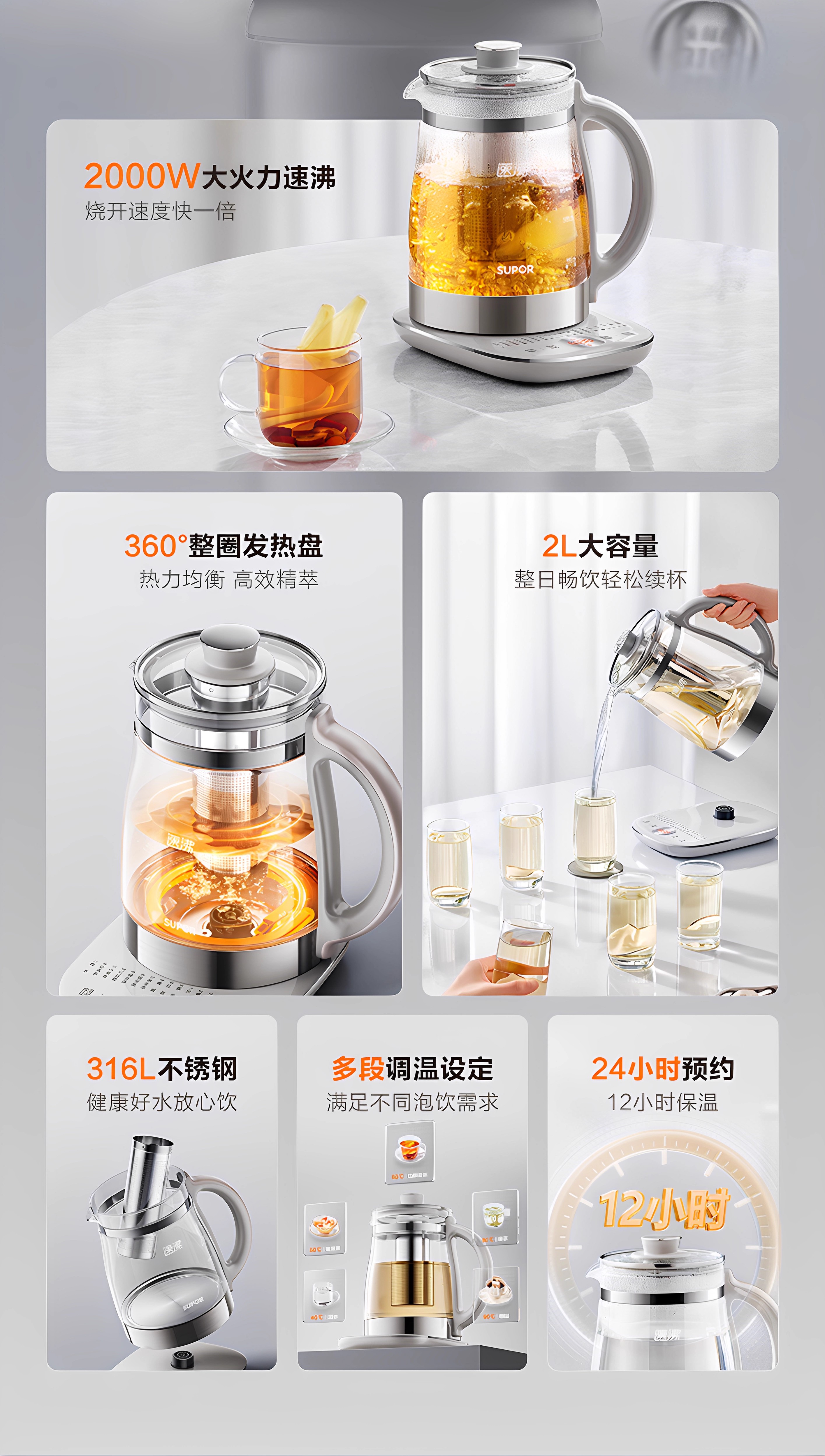 SUPOR health pot multifunctional health pot flower teapot kettle electric kettle tea maker 304 stainless steel SW-15YJ33-B health pot 1.5L
