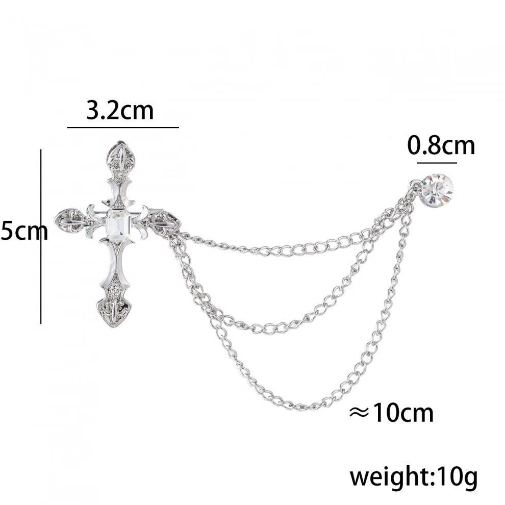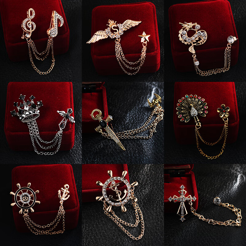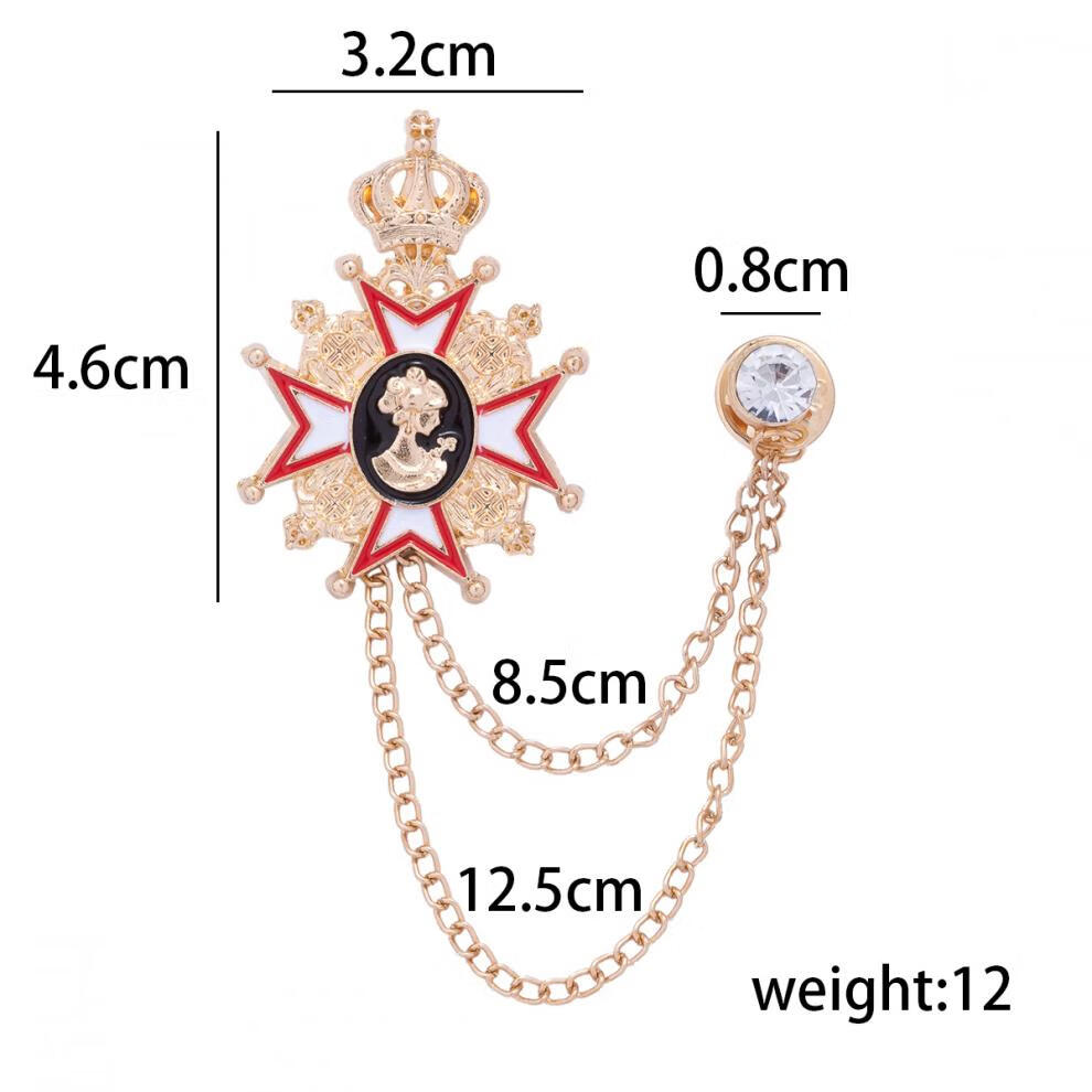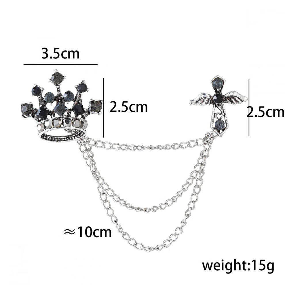Fat Donglai's same brooch for men, Korean version, trendy retro college style, navy style, crown, cross, wings, alloy emblem for women, retro silver skull shield